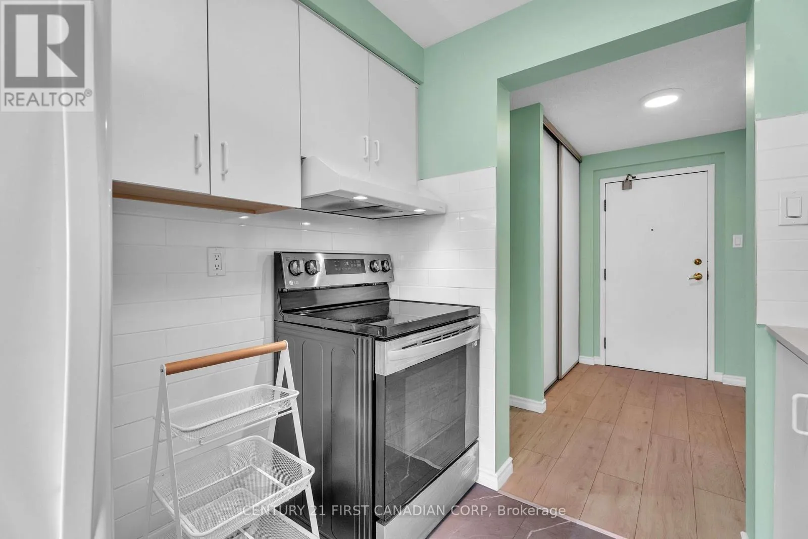 Oxford St W to Proudfoot Lane Great location in sought after North London! Close to all amenities like COSTCO, T&T Supermarket, direct bus routes to WTO, different taste restaurants, Gym and trails. This unit features spacious living room, one large bedroom with big windows which allows sufficient sunshine to come in! Recently renovated--- new laminate flooring(Carpet FREE), new HVAC unit, new appliances, ceiling waterproof. This unit also includes convenient in-suite laundry, central air heat pump and heating, one exclusive parking spot plus ample visitor parking. Well maintained. All ready for move-in (id:27476)