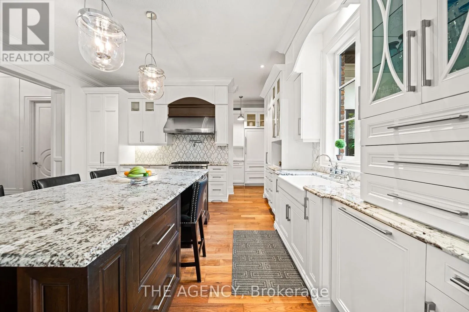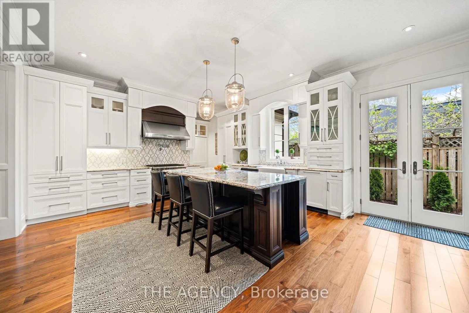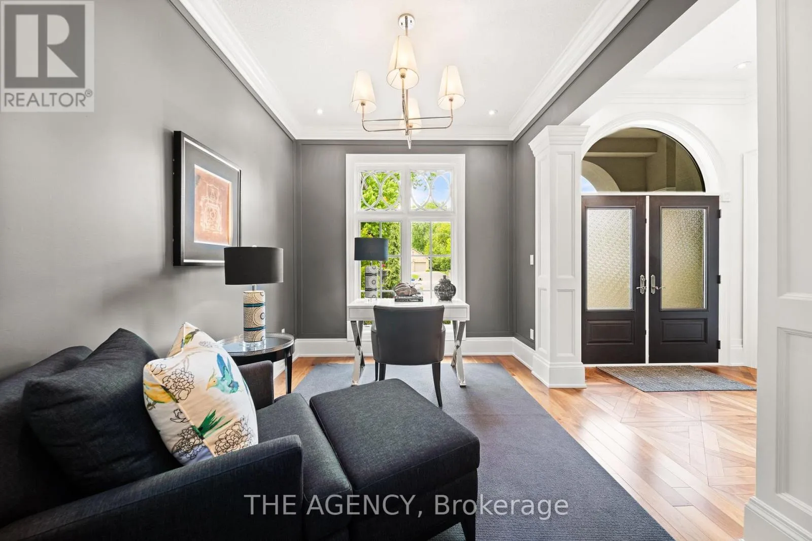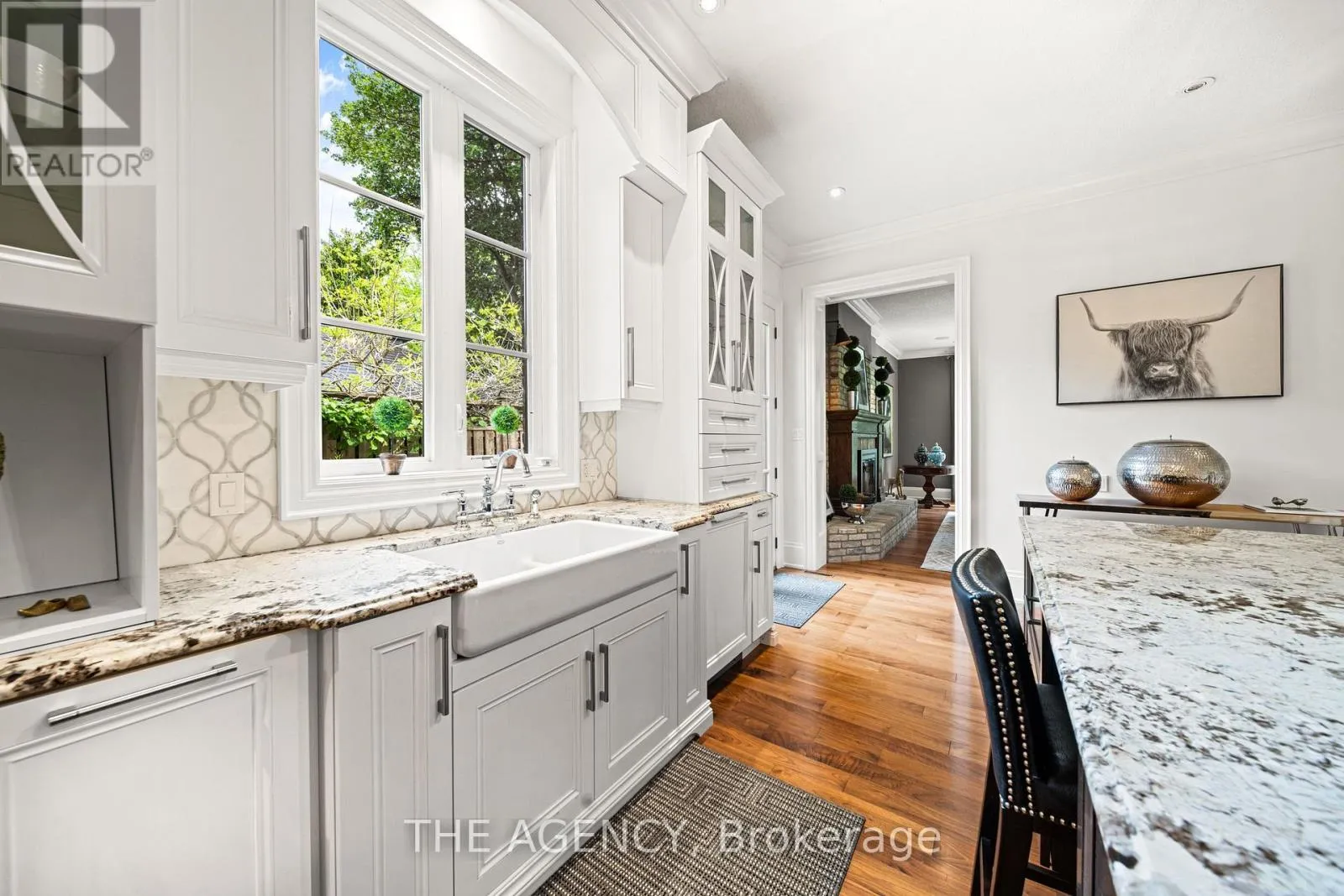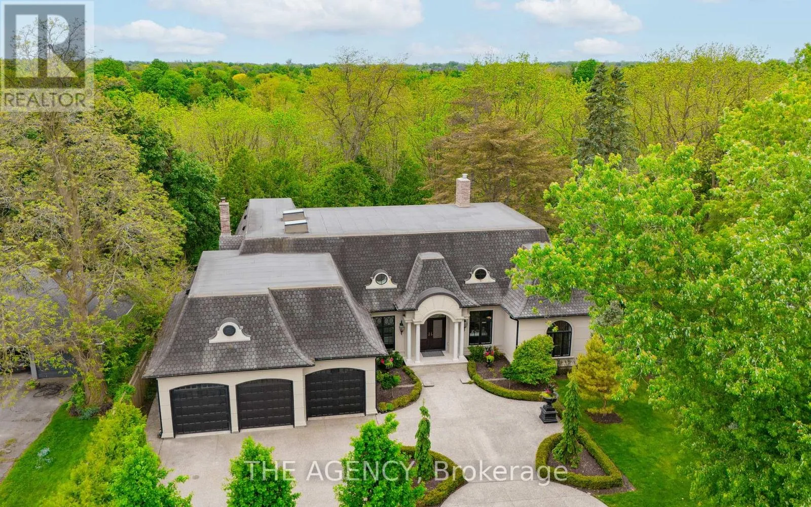 Cross Streets: Ryersie Road. ** Directions: Windermere Road to Ryersie Road to Gloucester Road. Welcome to this extraordinary bungaloft, nestled on a private, wooded lot and offering the perfect balance of luxury, function, and architectural detail. The main level impresses with 12-foot ceilings, walnut flooring and high-end finishes throughout. Tray ceilings in the formal dining room, coffered ceilings in key living spaces, and solid core doors enhance the sense of quality and scale. Expansive transom windows and high baseboards add architectural charm and natural light throughout. The main floor principal bedroom offers a serene retreat with tray ceilings, garden doors leading to the rear yard, and a stunning ensuite featuring marble tile with inlay, a freestanding tub, a glass-enclosed shower, dual vanities, and a spacious walk-in closet with custom built-ins and dual access. The family room is warmed by a wood-burning fireplace, while the separate living room offers a cozy natural gas fireplace. Two separate mudrooms-one off the front foyer and one off the garage-add everyday practicality to the homes thoughtful layout. The kitchen features premium Wolf appliances, a farmhouse sink, pot filler, and a large island with seating. The adjacent servery includes a fridge, wall oven, microwave, and a secondary sink-ideal for hosting. Upstairs, the loft provides a versatile living area, two generously sized bedrooms, and a beautifully finished main bath with a double vanity, freestanding tub, glass shower, and elegant tile inlay flooring. The lower level adds versatility with two additional bedrooms and rough-in. A walk-up to the triple car garage enhances convenience and supports multi-generational living. Outside, enjoy a private, two-tiered backyard oasis with a covered rear porch, perfect for relaxing or entertaining. The expansive driveway offers parking for up to eight vehicles, in addition to the spacious triple car garage with built-in storage, completing this exceptional property. (id:27476)