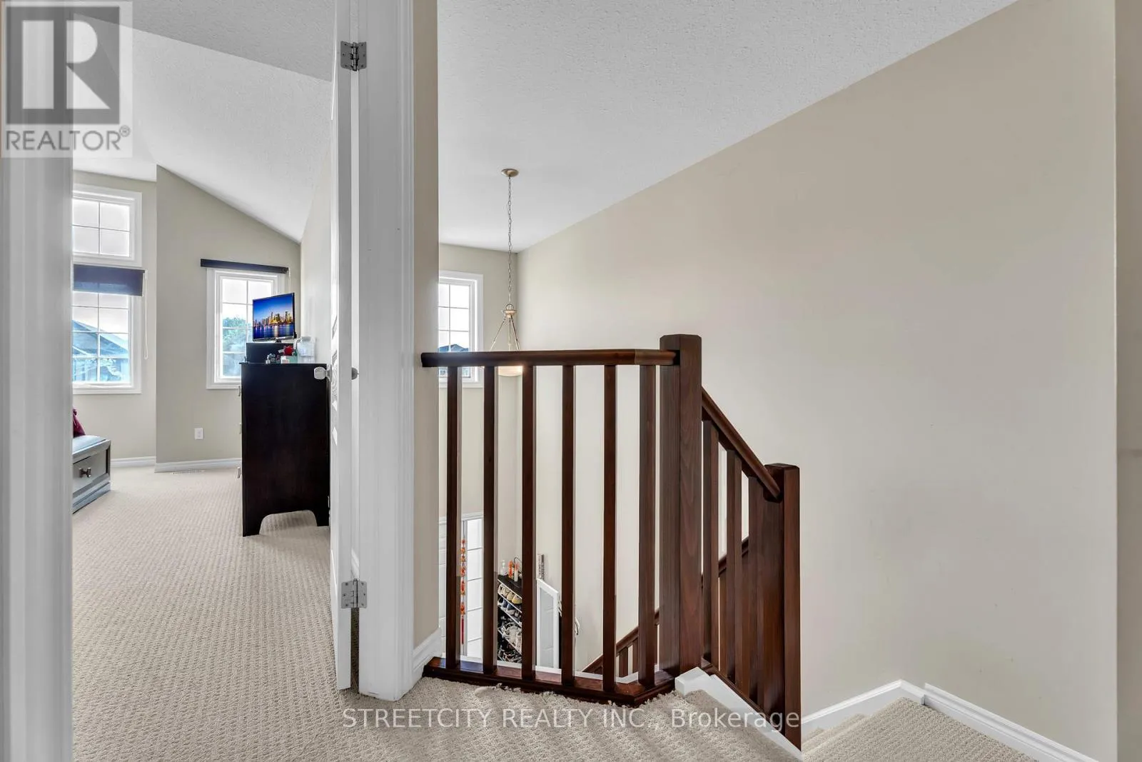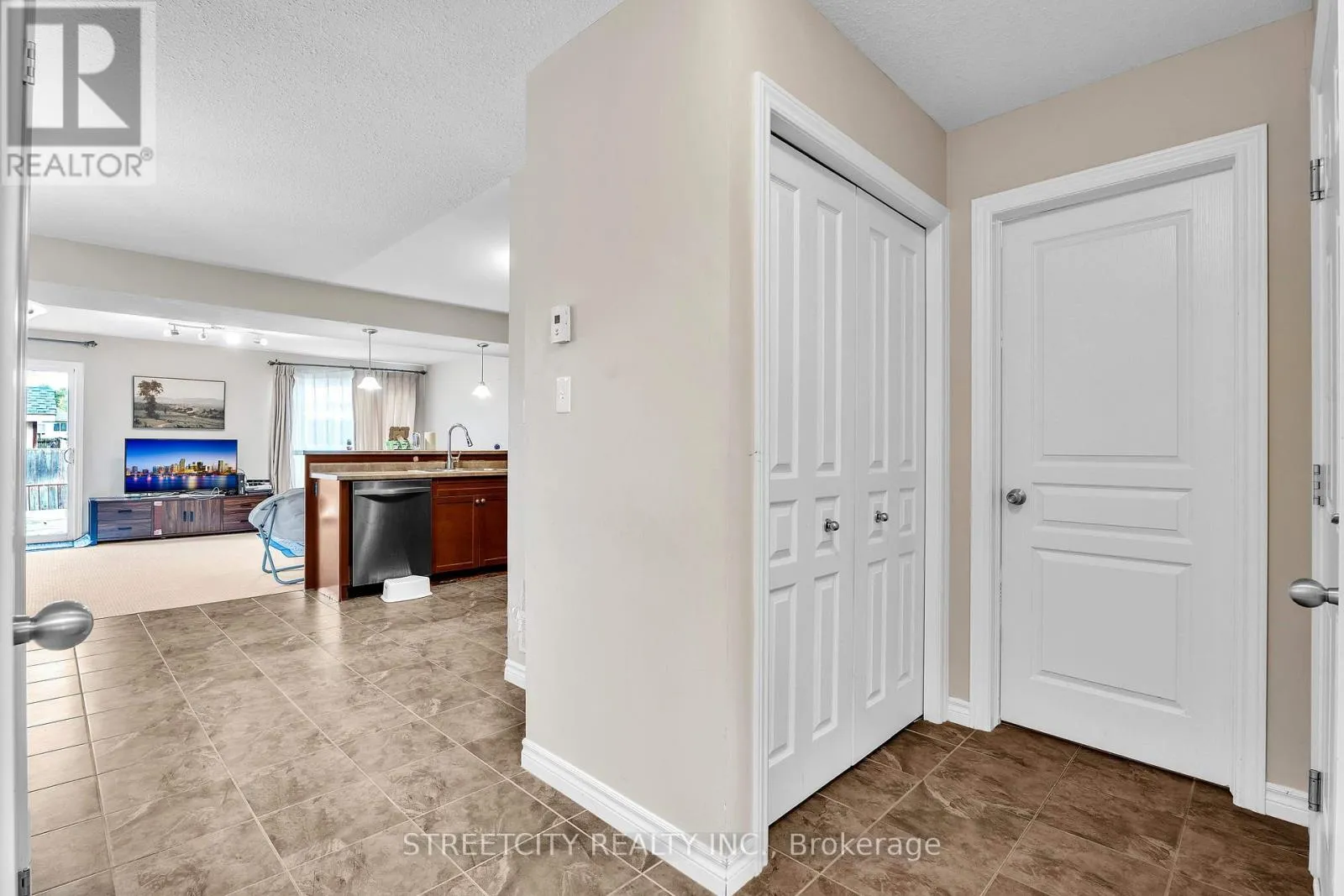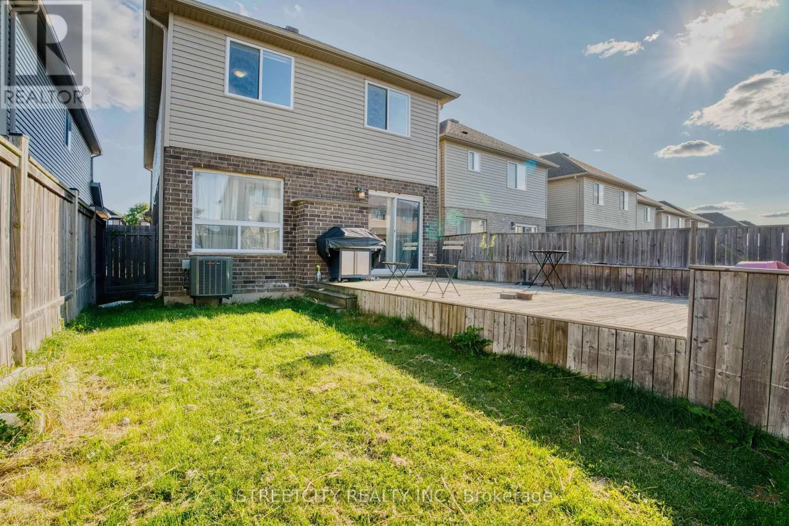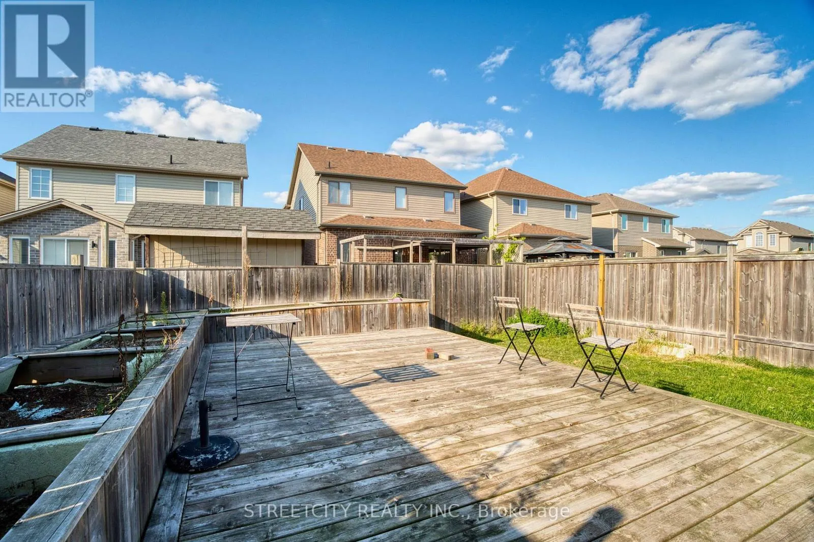 Cross Streets: Lawson RD. ** Directions: From Wonderland Rd N, head west to Lawson Rd, then south to Sandbar St. Beautifully maintained Sutherland model by Kenmore Homes offering 1,892 sq. ft. in the heart of North London. Prime location close to COSTCO, T&T Supermarket, Western University, restaurants, and all amenities. Features include a soaring ceiling foyer, spacious kitchen with maple cabinetry, stainless steel appliances, and breakfast bar, open dining and living area with rough-in fireplace and patio doors to a sun deck with raised planters. Ceramic tile flooring throughout foyer and wet areas. The upper level offers a primary bedroom with vaulted ceiling and 5-piece ensuite with separate shower and tub, plus walk-in closets in all bedrooms and a second-floor laundry room. Enjoy peace of mind with recent upgrades including central A/C (2025) and washer(2025). (id:27476)