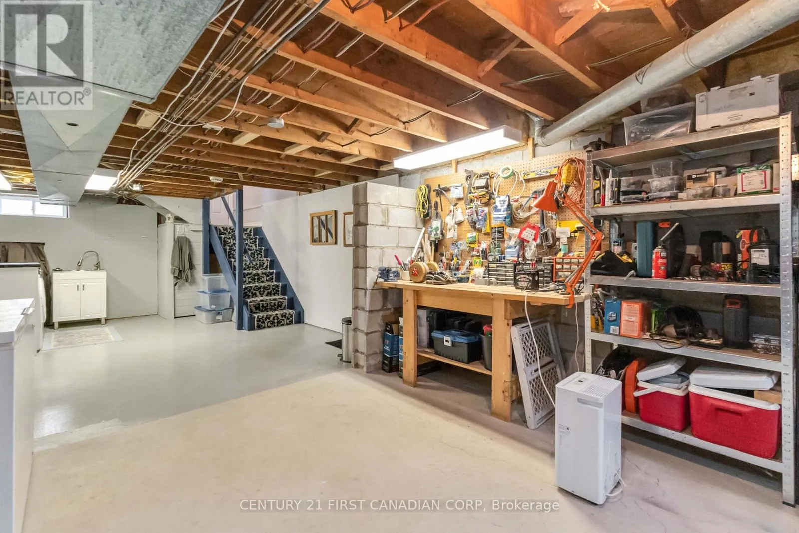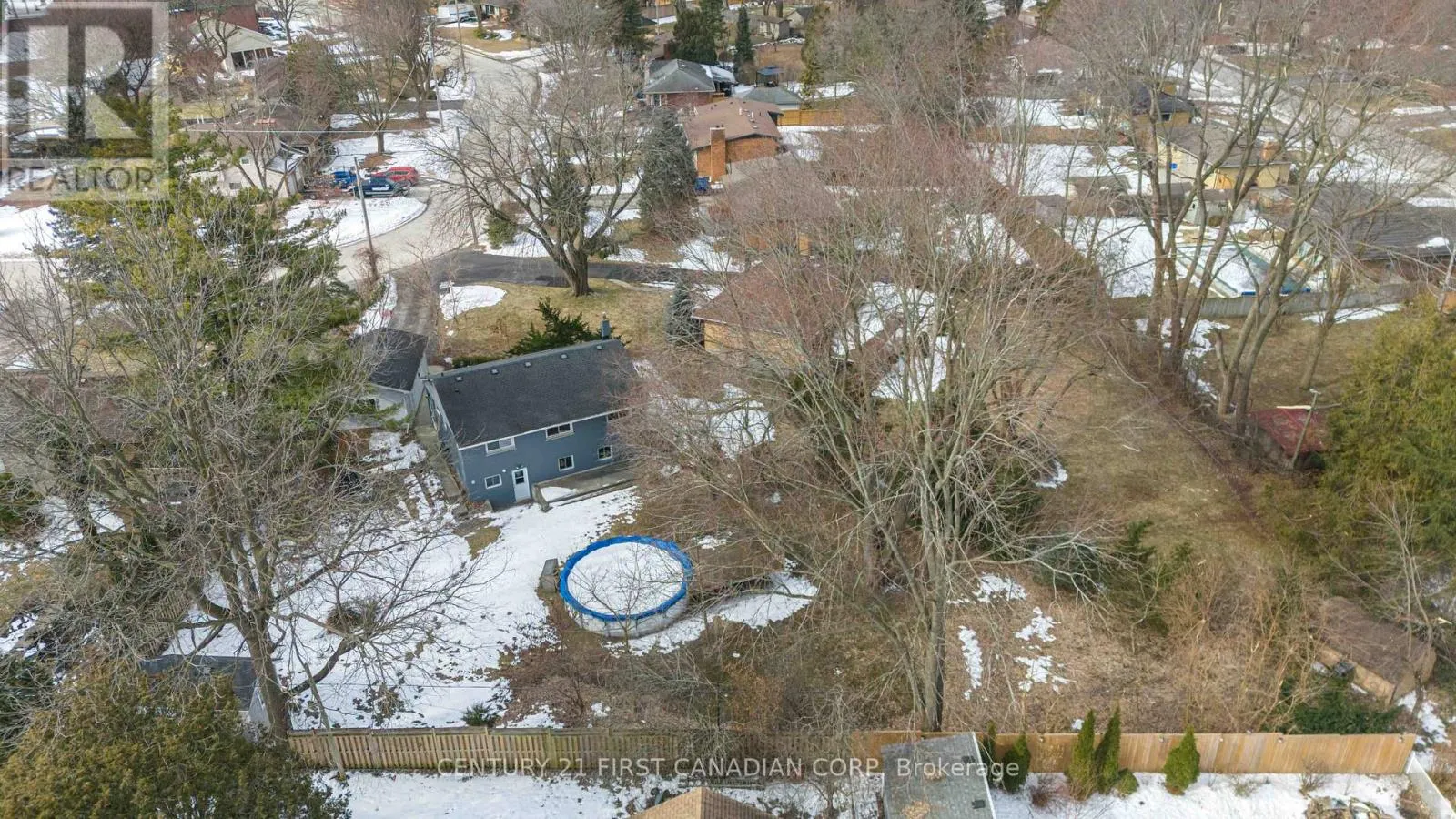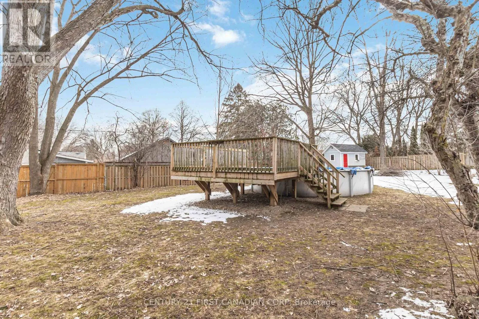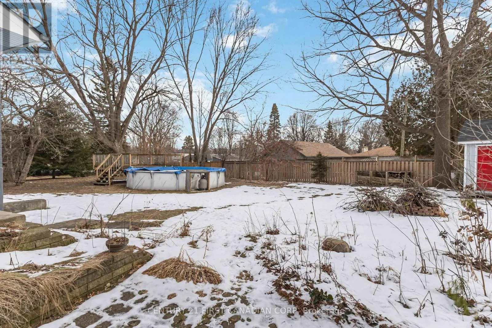 Cross Streets: Deer Park Circle. ** Directions: West on Oxford St W, left on Juniper St. (which turns into Deer Park Circle), Left on Biscay Rd. House will be on the left. Welcome to Oakridge Acres! This well-maintained 3-bedroom, 2-bathroom bungalow sits on an impressive lot just shy of 1/3 acre, surrounded by mature trees in one of London's most desirable west-end neighbourhoods. The main floor features engineered hardwood throughout the principal living spaces, an updated kitchen (2016), and a bright front bay window replaced in 2020 that fills the home with natural light. The main bathroom was renovated in 2020.The finished lower level offers a spacious rec room with oversized windows that bring in plenty of natural light, laminate flooring, and a renovated bathroom (2018), creating excellent additional living and entertaining space. Step outside to enjoy the private, well-kept backyard featuring a 21-ft above-ground pool (2016) with a wood deck, mature trees, and a large shed for extra storage. The detached 24' x 18' garage (built in 2015) features fibreglass shingles and its own hydro panel, making it ideal for a workshop, hobbies, or additional storage. Additional updates include roof shingles (2013) and furnace improvements including a replacement heat exchanger and conductor. A fantastic opportunity to own a spacious property in sought-after Oakridge Acres, close to great schools, parks, and west London amenities. (id:27476)