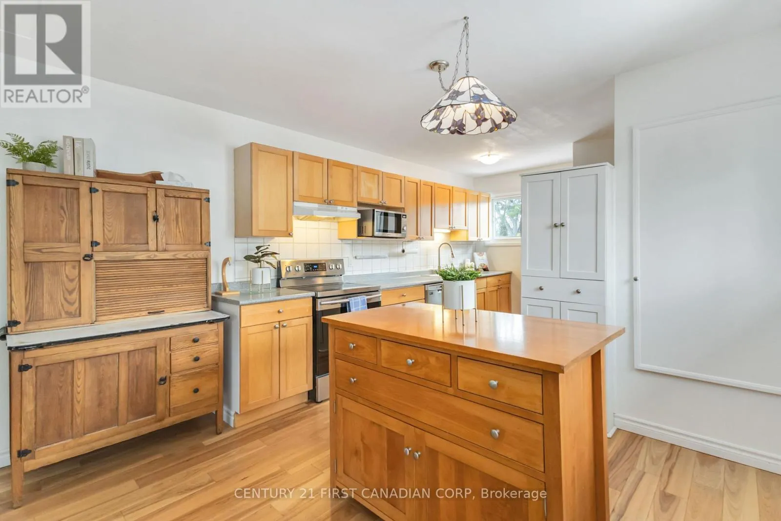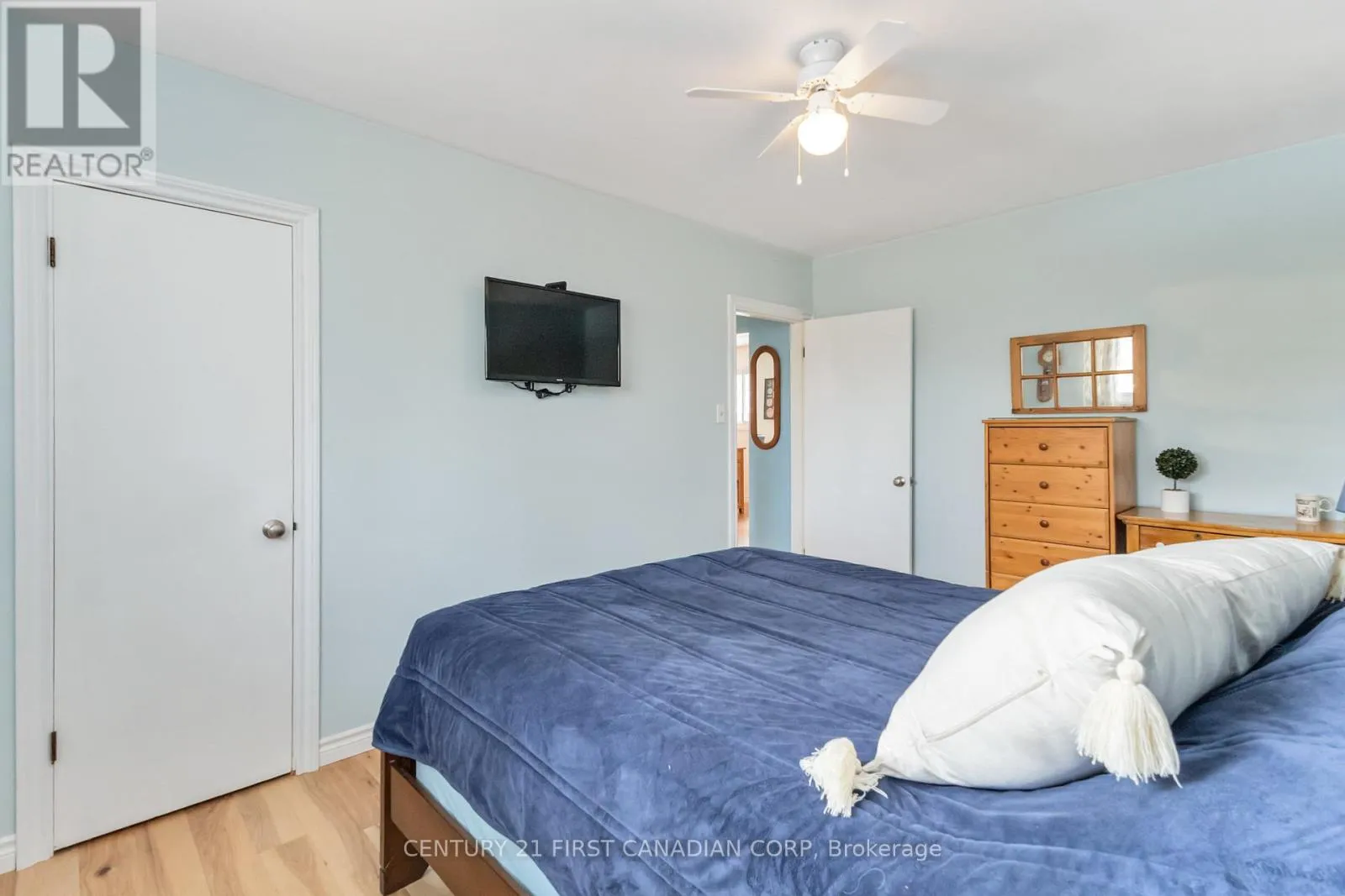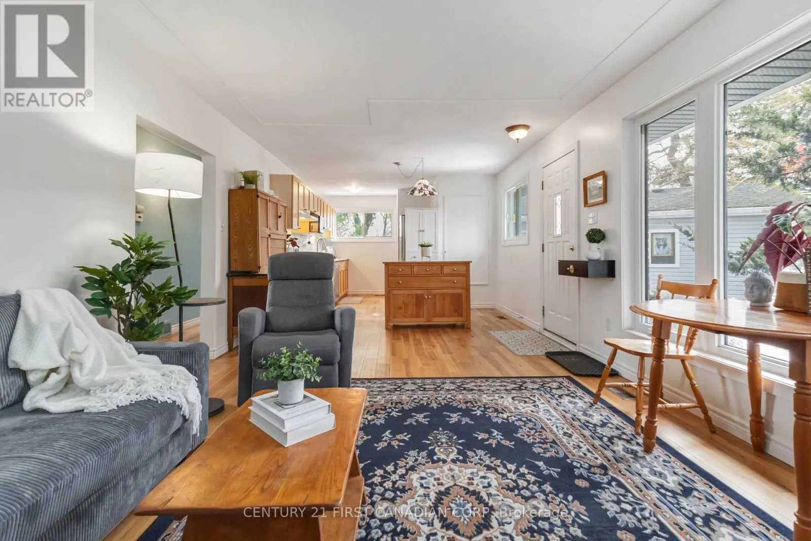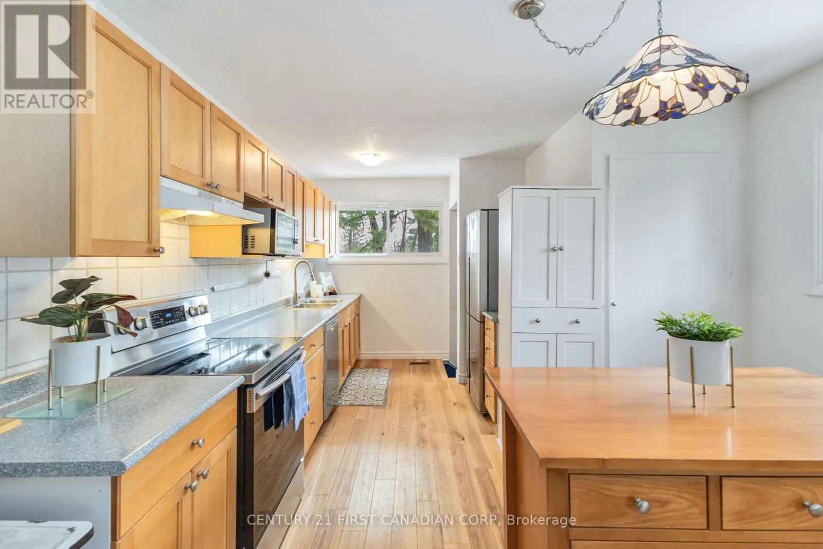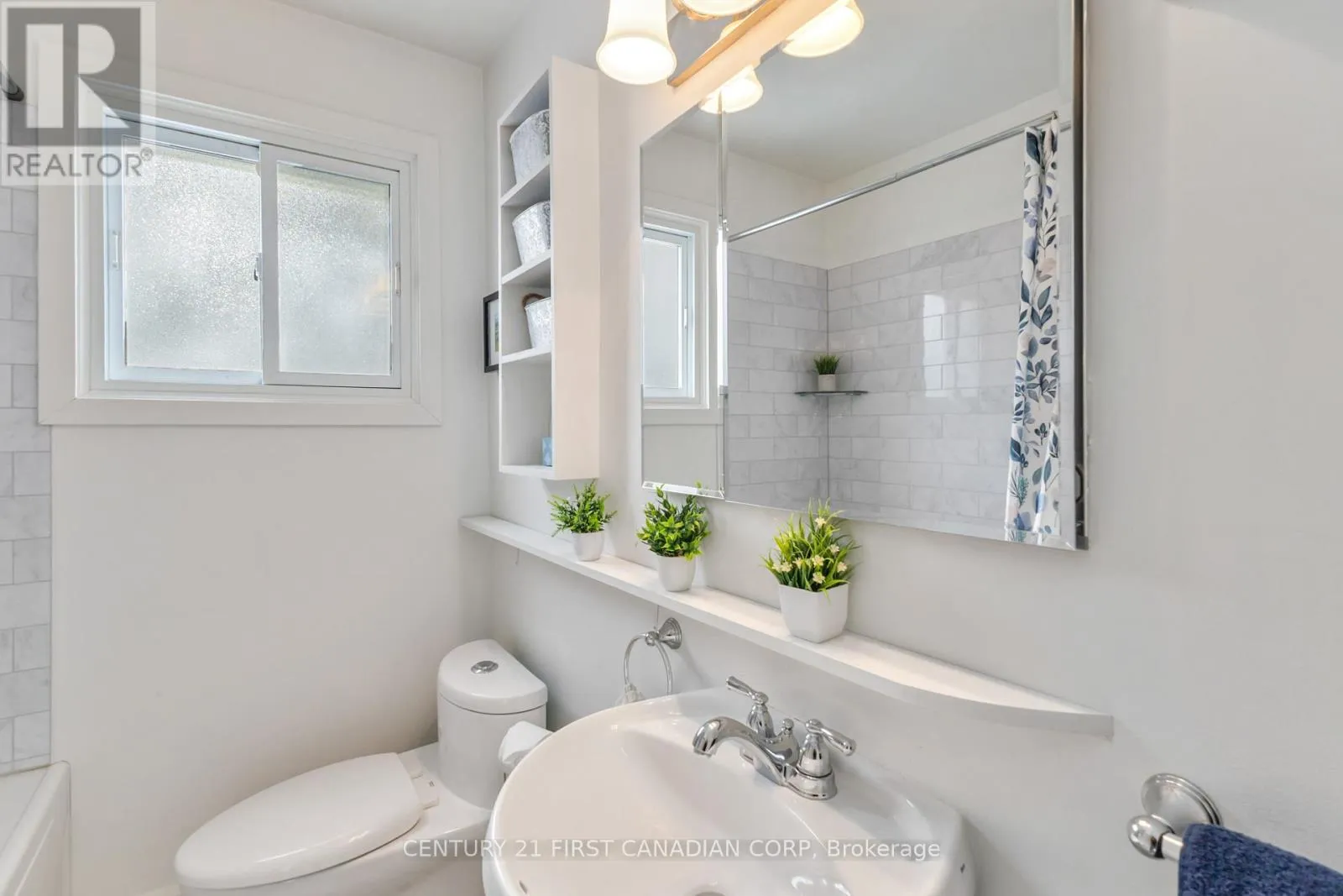 Cross Streets: Deer Park Circle. ** Directions: West on Oxford St W, left on Juniper St. (which turns into Deer Park Circle), Left on Biscay Rd. House will be on the left. Welcome to Oakridge Acres! This well-maintained 3-bedroom, 2-bathroom bungalow sits on an impressive lot just shy of 1/3 acre, surrounded by mature trees in one of London's most desirable west-end neighbourhoods. The main floor features engineered hardwood throughout the principal living spaces, an updated kitchen (2016), and a bright front bay window replaced in 2020 that fills the home with natural light. The main bathroom was renovated in 2020.The finished lower level offers a spacious rec room with oversized windows that bring in plenty of natural light, laminate flooring, and a renovated bathroom (2018), creating excellent additional living and entertaining space. Step outside to enjoy the private, well-kept backyard featuring a 21-ft above-ground pool (2016) with a wood deck, mature trees, and a large shed for extra storage. The detached 24' x 18' garage (built in 2015) features fibreglass shingles and its own hydro panel, making it ideal for a workshop, hobbies, or additional storage. Additional updates include roof shingles (2013) and furnace improvements including a replacement heat exchanger and conductor. A fantastic opportunity to own a spacious property in sought-after Oakridge Acres, close to great schools, parks, and west London amenities. (id:27476)