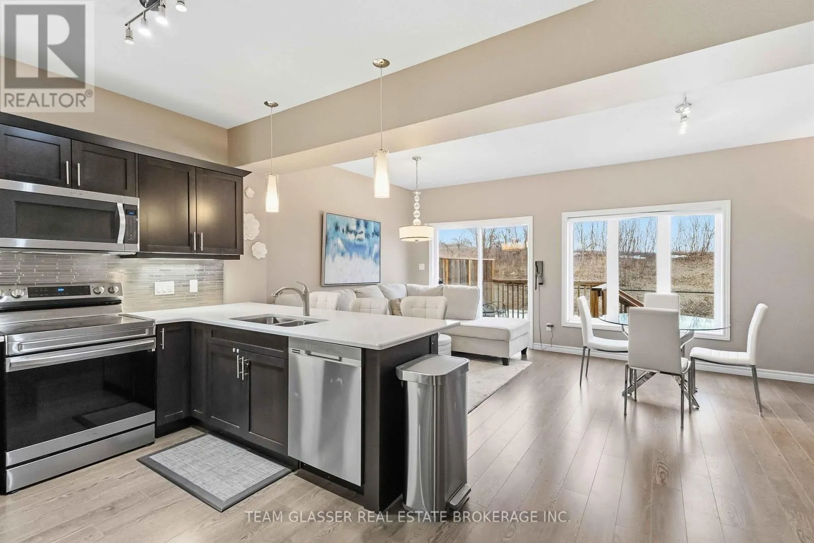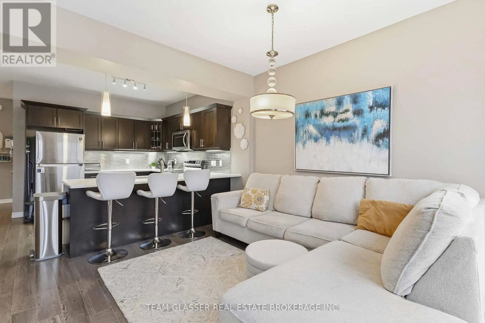 Cross Streets: Fanshawe Park/Highbury. ** Directions: Off Fanshawe Park Road. Beautifully finished former model home now available! This impressive two-storey unit features soaring ceilings, durable laminate flooring throughout the main level, and ceramic tile in all bathrooms for a clean, modern finish. The upgraded Cardinal Kitchen is designed with both style and function in mind, showcasing granite countertops, rich cabinetry, stainless steel appliances, and a peninsula with breakfast bar seating that opens seamlessly to the dining and living areas - ideal for entertaining or casual family meals. The fully finished lower-level recreation room adds valuable extra living space, perfect for a media room, play area, or home gym. Upstairs, the spacious primary bedroom offers a private retreat complete with its own ensuite and a generous walk-in closet. A versatile upper-level loft provides the perfect setting for a home office, study space, or homework station. Enjoy exceptional privacy with no rear neighbours - this home backs directly onto green space. Ideally located with easy access to Highway 401, parks, shopping, scenic river pathways for walking and cycling, and a brand-new public school just down the street. (id:27476)