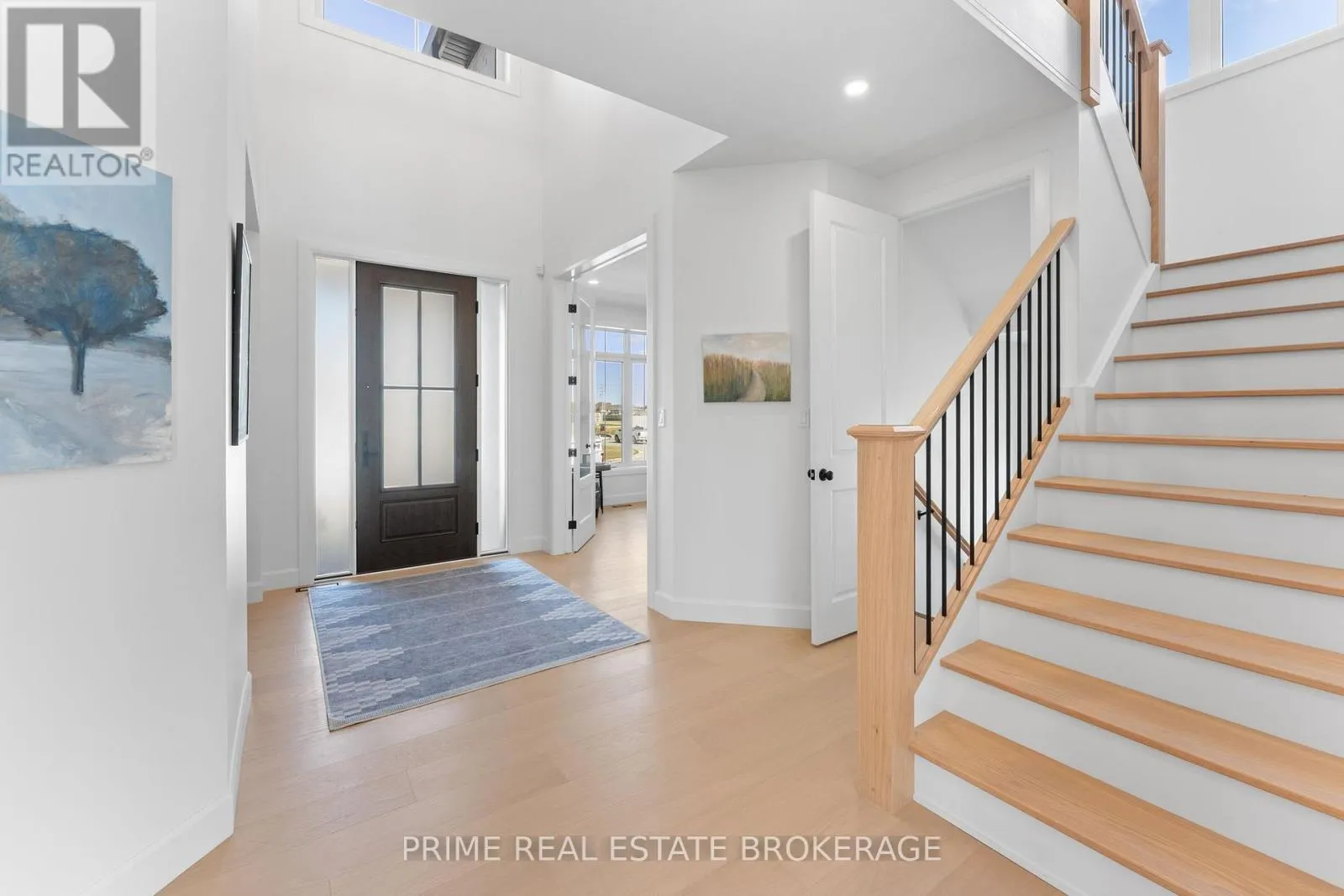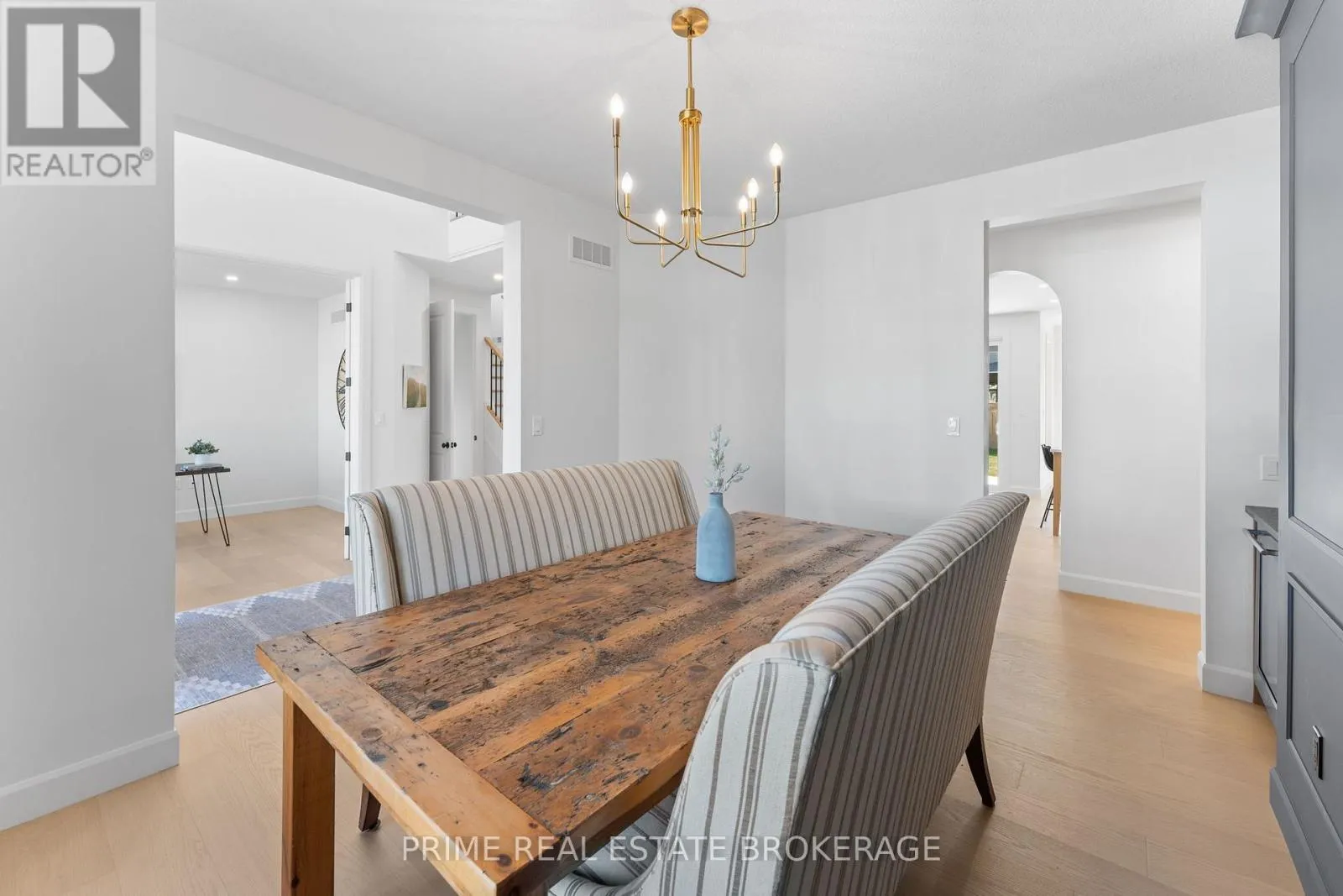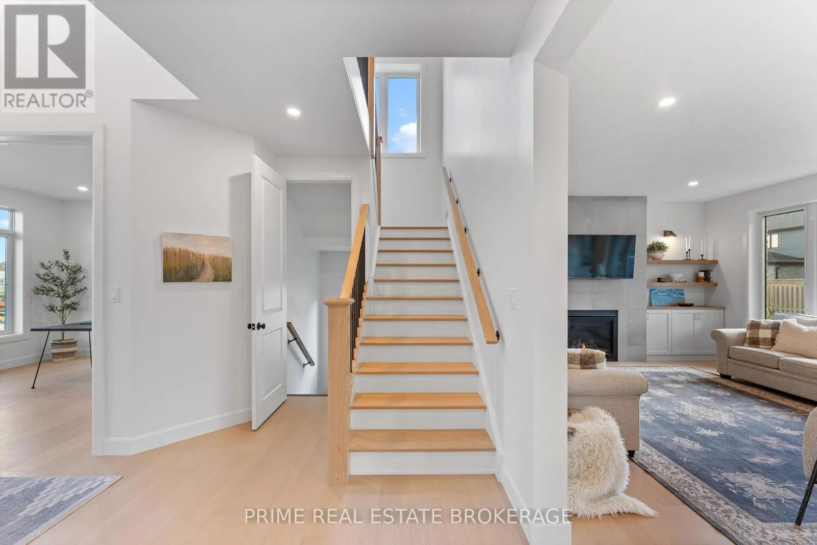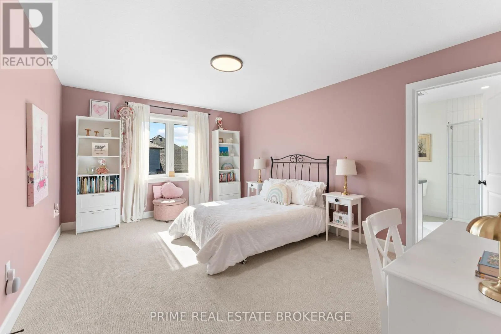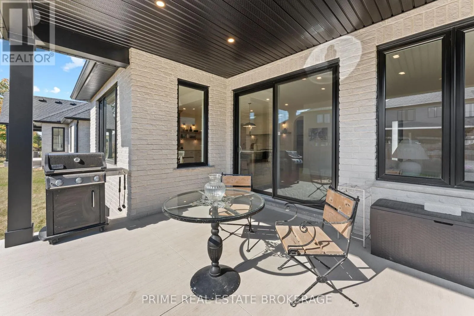 Wonderland and Eagletrace Dr Luxury, scale, and craftsmanship come together on one of Sunningdale Crossing's most desirable streets. Welcome to 1969 Buroak Crescent.Set on a premium oversized lot, this executive home offers over 4,700 sq. ft. of beautifully finished living space. It's the kind of home that feels impressive the moment you pull up, yet incredibly comfortable once you step inside.The exterior combines Arriscraft brick and Hardie board siding for timeless curb appeal.Inside, wide 714-inch engineered hardwood flows throughout the main level. Just off the foyer, French doors open to a private office ideal for working from home while the formal dining room features custom millwork and a built-in beverage fridge by Berry Woodcraft & Design.The main living area is bright and open, with 9-foot ceilings, custom built-ins, and a gas fireplace wrapped in 24x24 tile. A full wall of windows brings in natural light and overlooks the backyard. Eight-foot sliders lead to a covered concrete porch, creating an easy transition between indoor and outdoor living.The kitchen truly anchors the home. Handcrafted solid wood cabinetry by Berry Woodcraft &Design, premium GE Café appliances, and an oversized island make it as functional as it is beautiful. The adjoining dinette offers the perfect spot for everyday meals or morning coffee.Upstairs you'll find four spacious bedrooms and three full bathrooms. The primary suite feels like a retreat, complete with a spa inspired ensuite and a boutique style walk-in closet. One bedroom features its own private ensuite, while the remaining two share a well-designed bathroom with double sinks. A full laundry room with custom built-ins adds everyday practicality.The finished lower level offers even more flexibility with a bright rec room, fifth bedroom, full bath, and flex space that works equally well as a gym, studio, or playroom.1969 Buroak Crescent is a home that balances thoughtful design with real functionality. Built for modern family living. (id:27476)