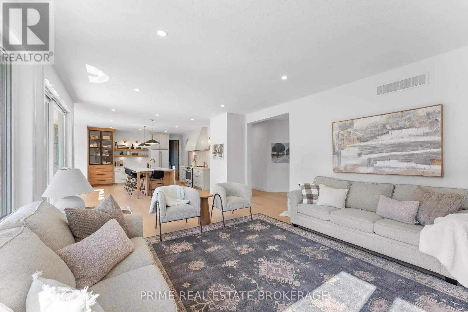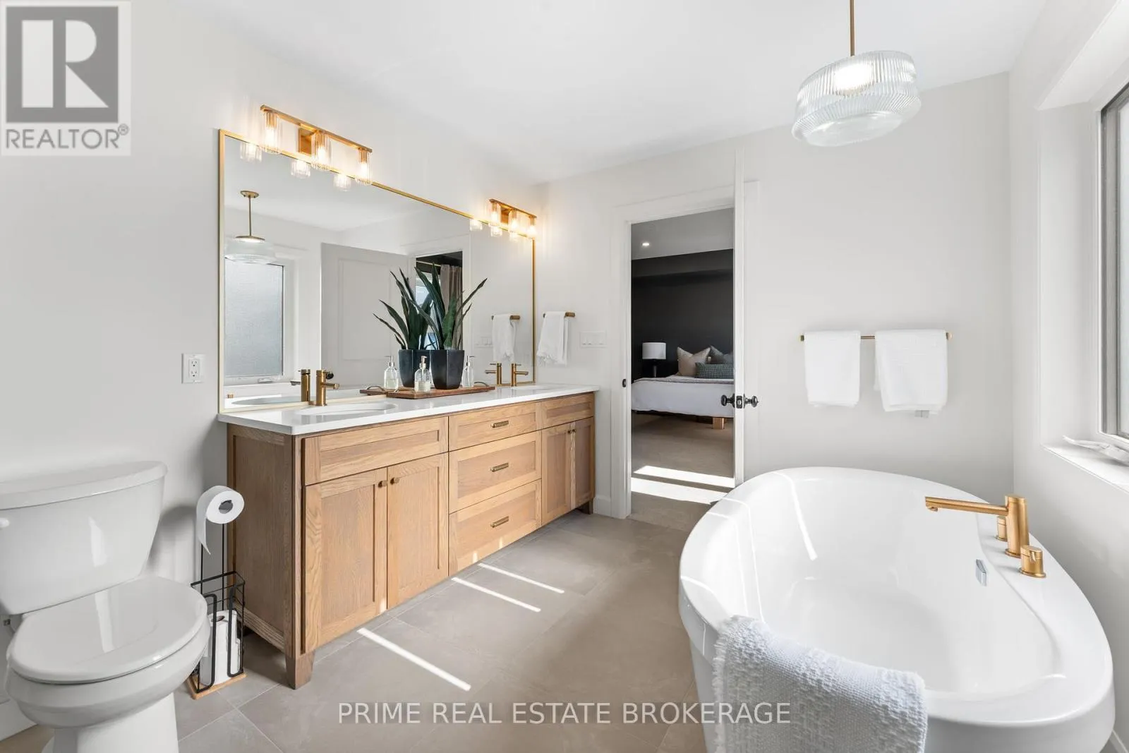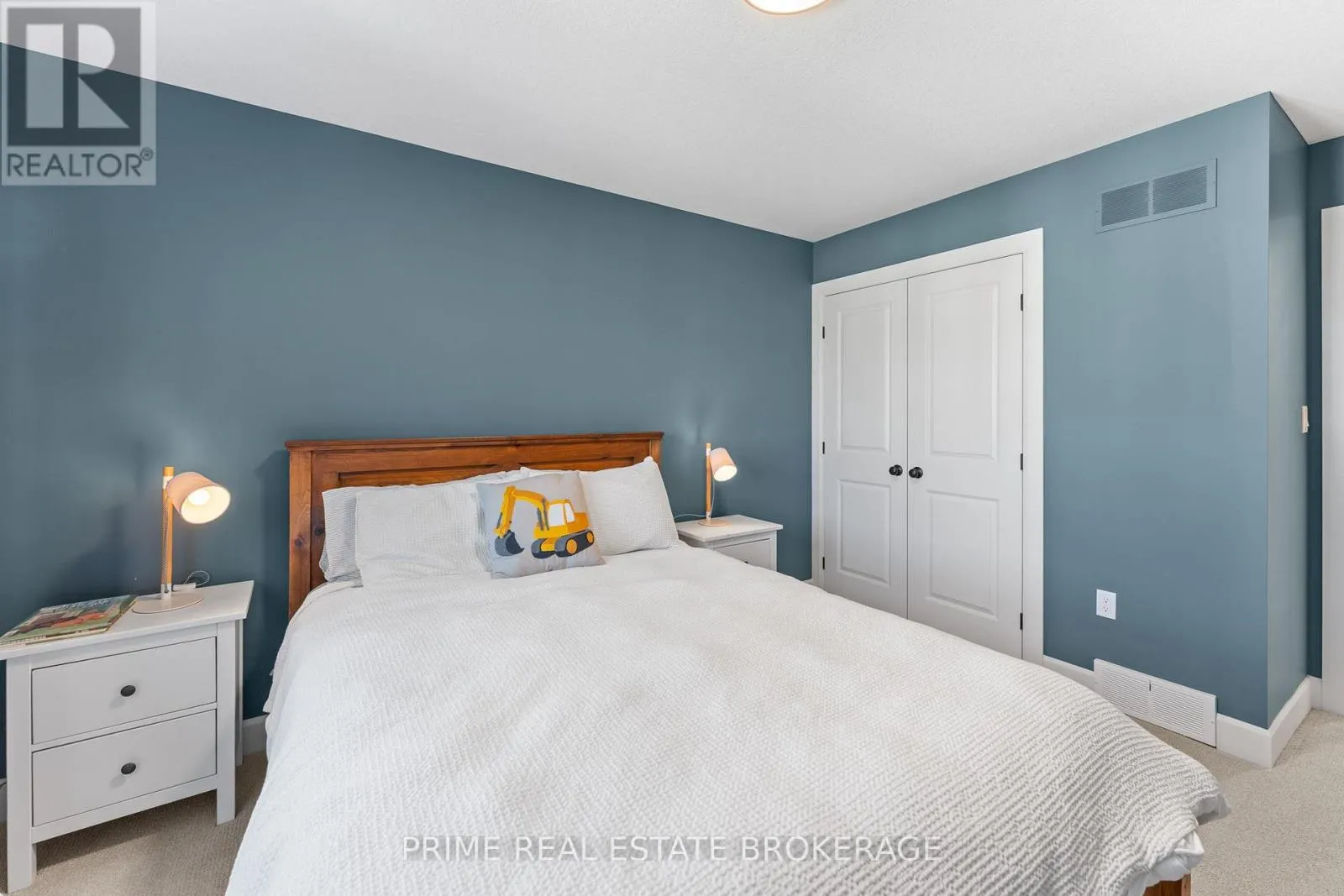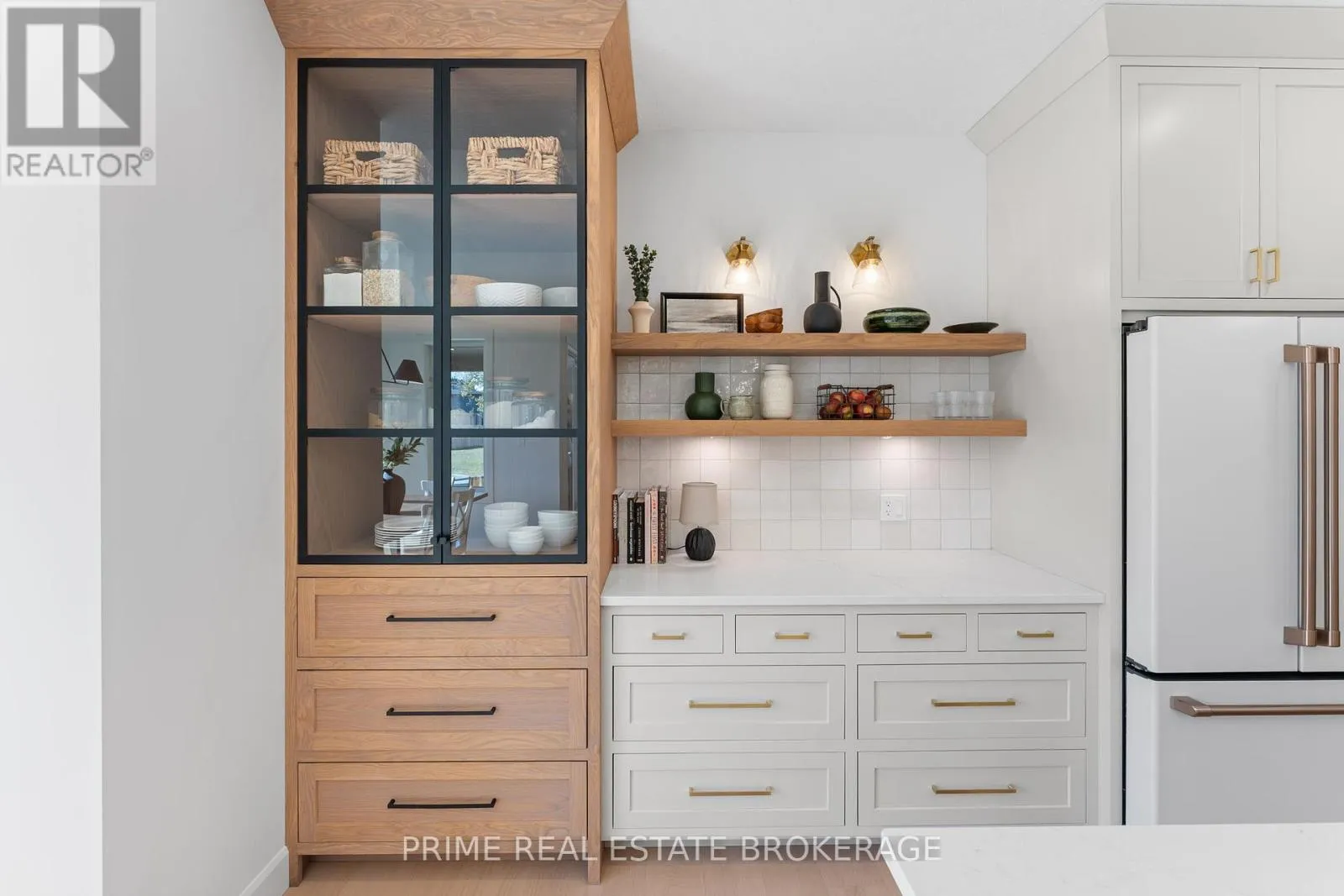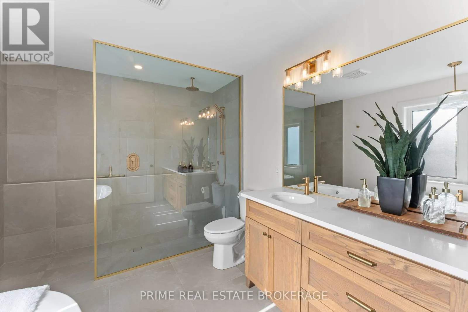 Wonderland and Eagletrace Dr Luxury, scale, and craftsmanship come together on one of Sunningdale Crossing's most desirable streets. Welcome to 1969 Buroak Crescent.Set on a premium oversized lot, this executive home offers over 4,700 sq. ft. of beautifully finished living space. It's the kind of home that feels impressive the moment you pull up, yet incredibly comfortable once you step inside.The exterior combines Arriscraft brick and Hardie board siding for timeless curb appeal.Inside, wide 714-inch engineered hardwood flows throughout the main level. Just off the foyer, French doors open to a private office ideal for working from home while the formal dining room features custom millwork and a built-in beverage fridge by Berry Woodcraft & Design.The main living area is bright and open, with 9-foot ceilings, custom built-ins, and a gas fireplace wrapped in 24x24 tile. A full wall of windows brings in natural light and overlooks the backyard. Eight-foot sliders lead to a covered concrete porch, creating an easy transition between indoor and outdoor living.The kitchen truly anchors the home. Handcrafted solid wood cabinetry by Berry Woodcraft &Design, premium GE Café appliances, and an oversized island make it as functional as it is beautiful. The adjoining dinette offers the perfect spot for everyday meals or morning coffee.Upstairs you'll find four spacious bedrooms and three full bathrooms. The primary suite feels like a retreat, complete with a spa inspired ensuite and a boutique style walk-in closet. One bedroom features its own private ensuite, while the remaining two share a well-designed bathroom with double sinks. A full laundry room with custom built-ins adds everyday practicality.The finished lower level offers even more flexibility with a bright rec room, fifth bedroom, full bath, and flex space that works equally well as a gym, studio, or playroom.1969 Buroak Crescent is a home that balances thoughtful design with real functionality. Built for modern family living. (id:27476)