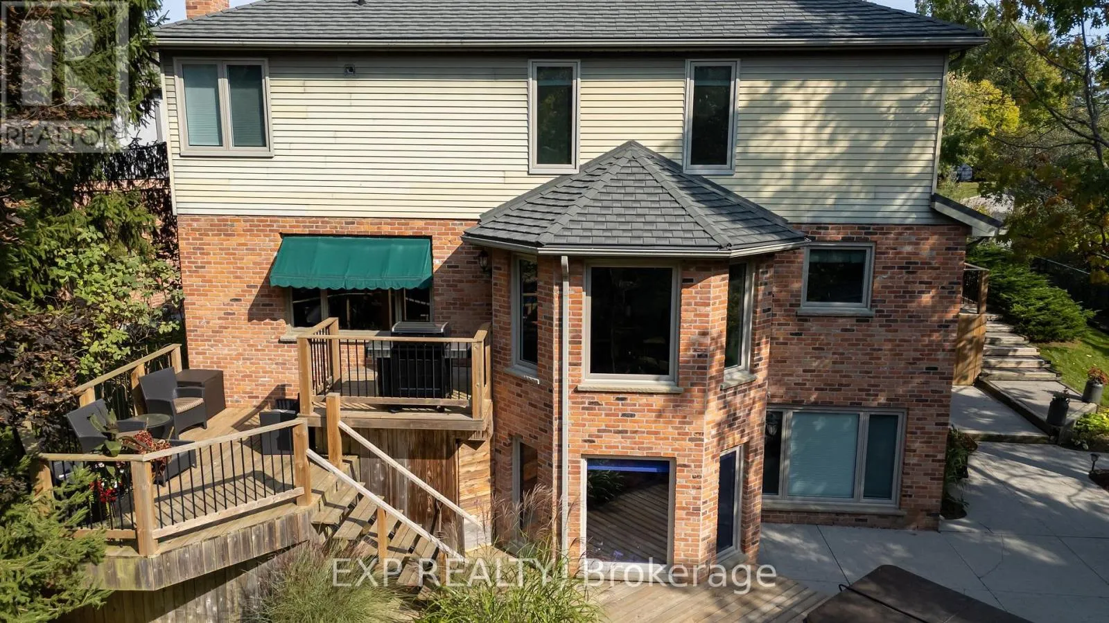 Cross Streets: Ambleside Drive. ** Directions: Take Richmond St to Ambleside Dr, Follow Ambleside Dr to Glenridge Crescent, the property will be on your left. Welcome to this exceptional property nestled on a pie-shaped ravine lot, backing directly onto a protected conservation area offering the ultimate in privacy, serenity, and space. Situated on approximately 1/3 of an acre, the grounds are professionally landscaped with irrigation, accent lighting, a gazebo, and a stamped concrete driveway creating a picturesque outdoor living experience. The fenced yard is perfect for families, pets, and entertaining while still offering stunning, unobstructed views of nature all year round. Inside, this meticulously maintained home features over 3,100 sq ft above grade, plus a fully finished walk-out lower level, providing more than 4,300 sq ft of total living space. The layout is both functional and elegant, with hardwood flooring, crown moulding, and two natural gas fireplaces. The main floor includes a private home office, a formal dining room, main floor laundry, and a spacious open-concept living area that suits both relaxed evenings and lively gatherings. Upstairs, the primary suite is a true retreat, complete with hardwood floors, a walk-in closet, and a spa-like 5-piece ensuite with heated floors. On the lower level, you'll find a workshop, a generous rec room with built-in bar fridge, and a mounted 60 TV (included) ideal for in-laws, teens, or entertaining. A second 50 TV is mounted on the main floor in the cozy family room, perfect for everyday relaxation. Major updates have all been done for you: a metal roof (2022) with a transferable 50-year warranty, a new furnace (2023), and updated windows and garage doors (2016). The oversized 3-car garage provides ample space for vehicles, tools, and toys. This is a rare opportunity to own a beautifully upgraded, move-in-ready home in one of the most peaceful and sought-after settings in the area perfect for families, professionals, or anyone looking to blend luxury with nature. (id:27476)