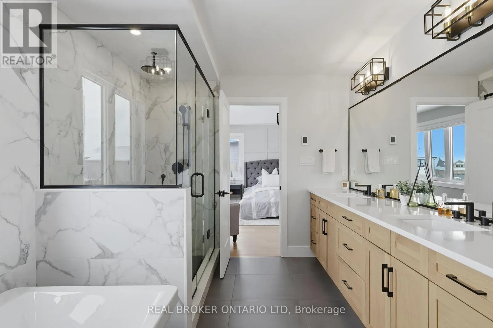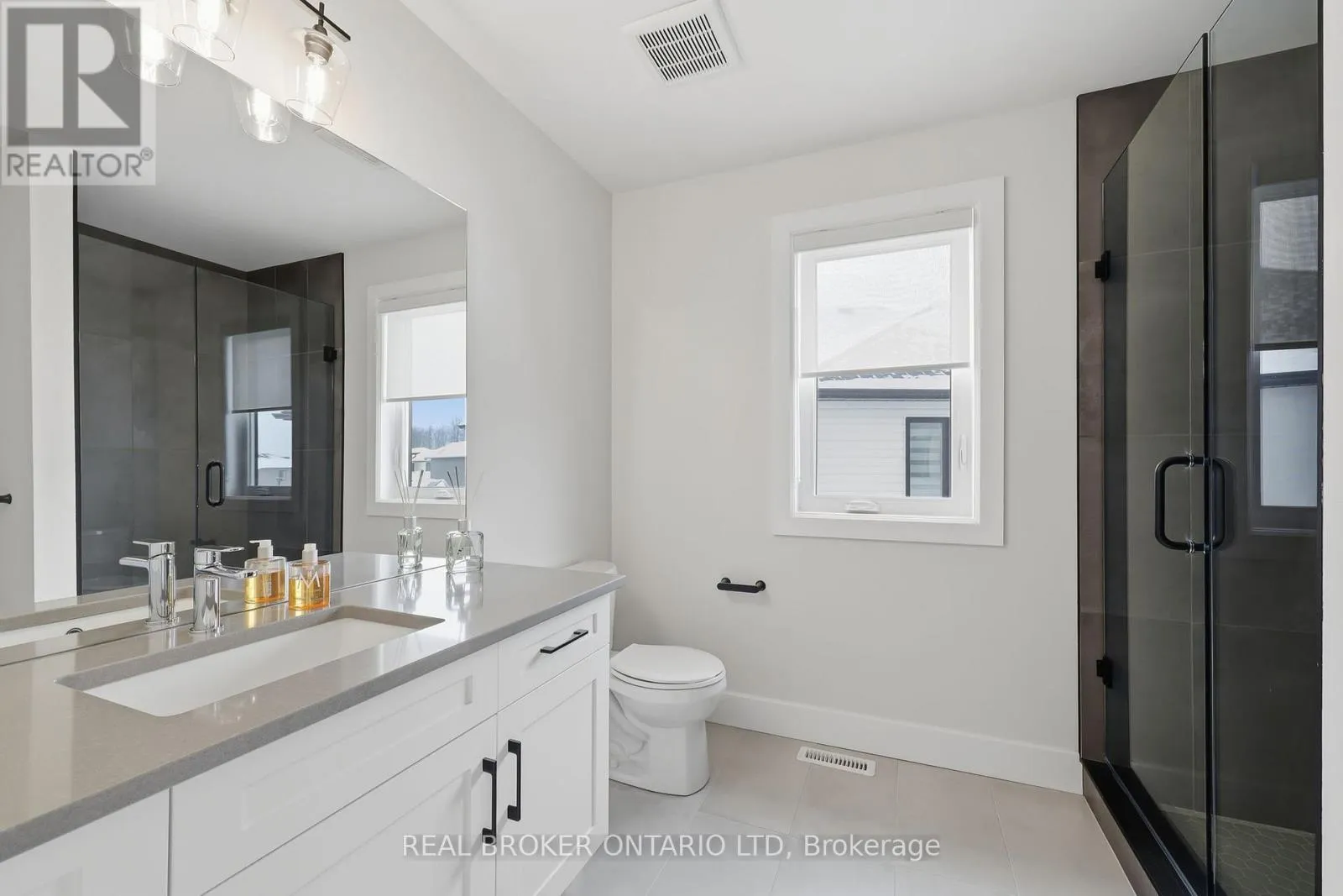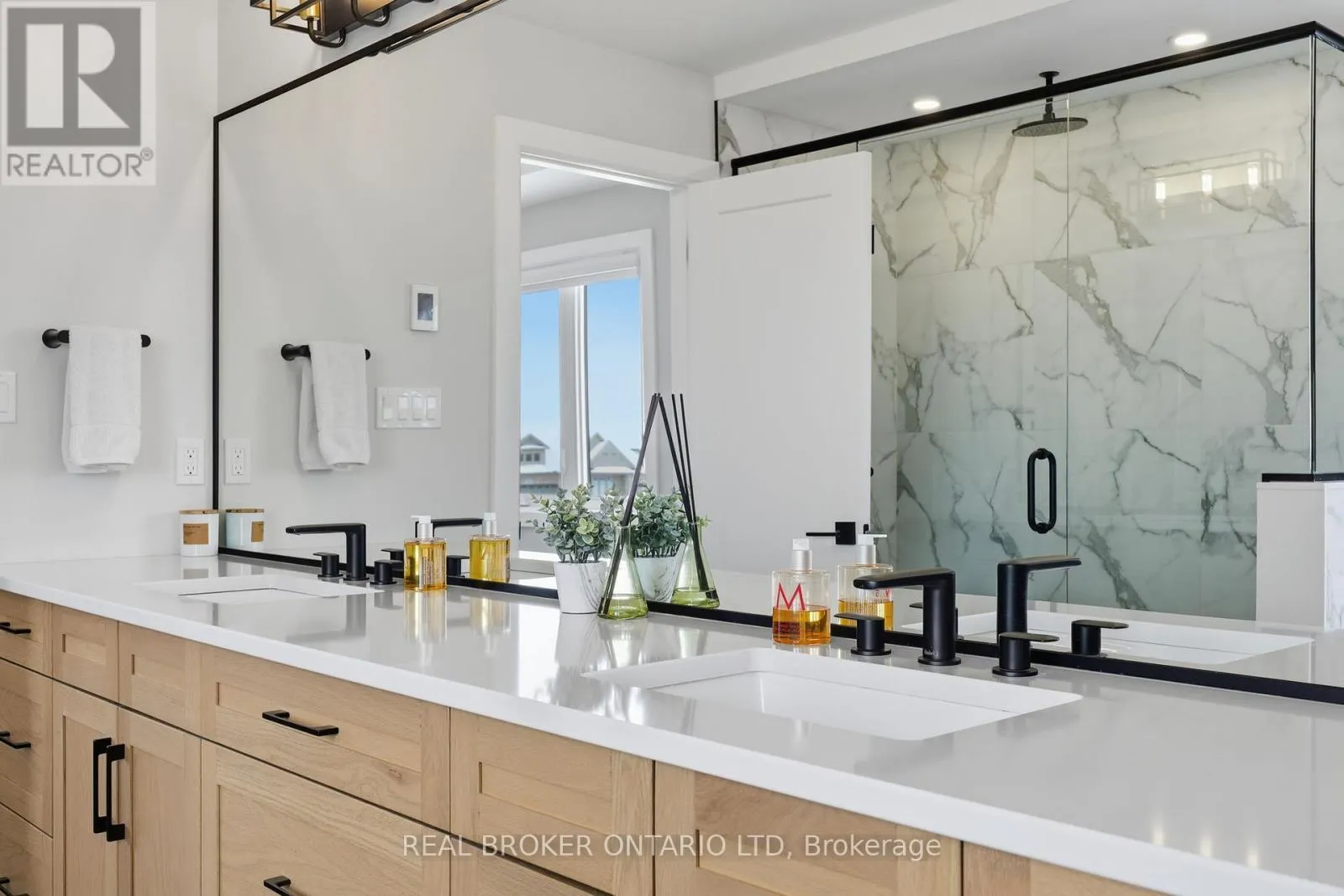 MEDWAY PARK DR & BUROAK DR This home delivers where it matters most: layout. Set on a premium corner lot, it offers 2,818 sq ft of finished living space with a standout design featuring four bedrooms and three ensuites, paired with functional planning and elevated selections throughout. The home makes an immediate statement with its distinctive facade, full concrete driveway, and sculpted concrete steps and porch, while the oversized garage fits a full-size pickup and comes wired and ready for an EV charger. Inside, 9 ft ceilings and 8 ft doors throughout create scale and flow from the moment you enter, with large south-facing stairwell windows carrying natural light through the entry, up to the second level, and down toward the basement. The kitchen anchors the main floor with clean lines and timeless design, featuring quartz countertops with a full countertop backsplash, stainless Fisher & Paykel appliances, custom cabinetry, walk-in pantry, and a large island with bar seating. Overlooking the kitchen, the great room is filled with natural light and grounded by a sleek gas fireplace, custom detailing, and wired sound throughout, while a custom red oak staircase leads to the second level. Upstairs, the primary suite features custom wall treatments, a walk-in closet with built-in storage, and a five-piece ensuite with double quartz vanity, glass shower, and soaker tub. The remaining three bedrooms are generously sized, two with their own ensuite and walk-in closet, creating a highly functional upper level. An upper-level laundry room completes the floor. The exterior is equally dialled in with a fully fenced yard and covered deck with overhang. Additional upgrades include a wired security system, built-in 5.1 speaker system, hide-a-hose central vacuum, extensive trim and carpentry, and a tucked-away TV and media system located in the front closet. A turnkey home with quality construction, elevated design, and a layout that stands apart. 1600 Medway Park Drive is ready for your next move. (id:27476)