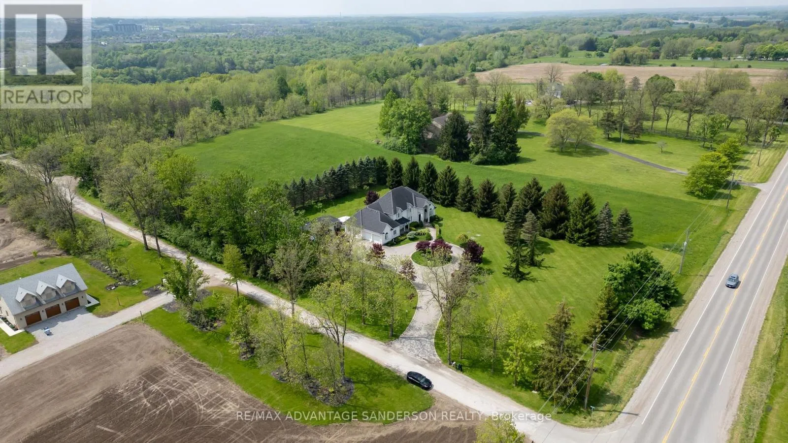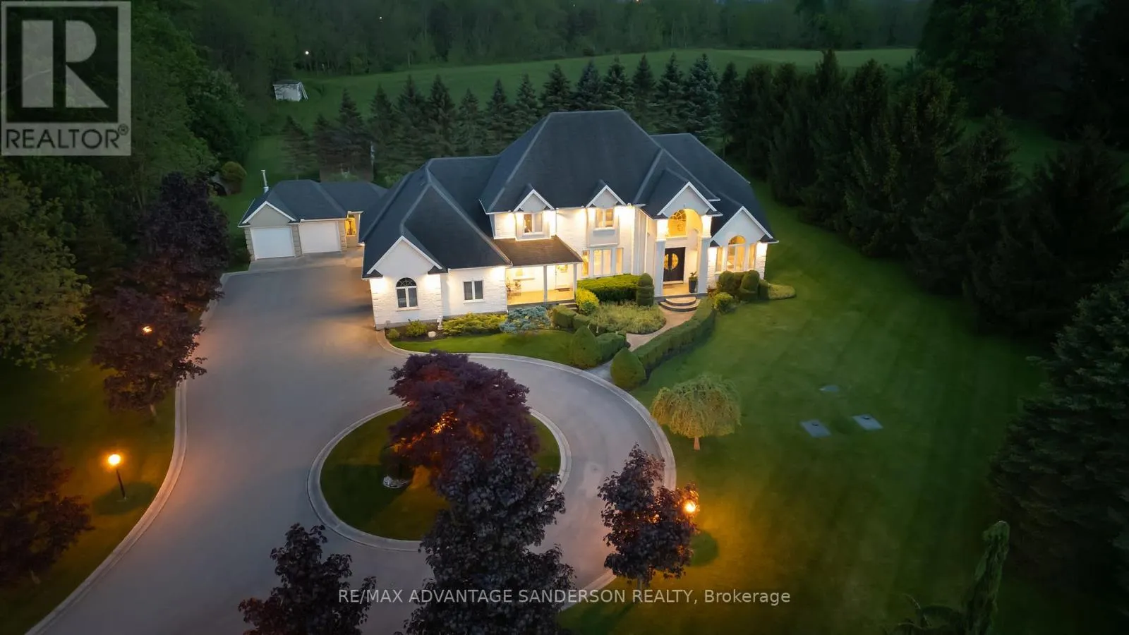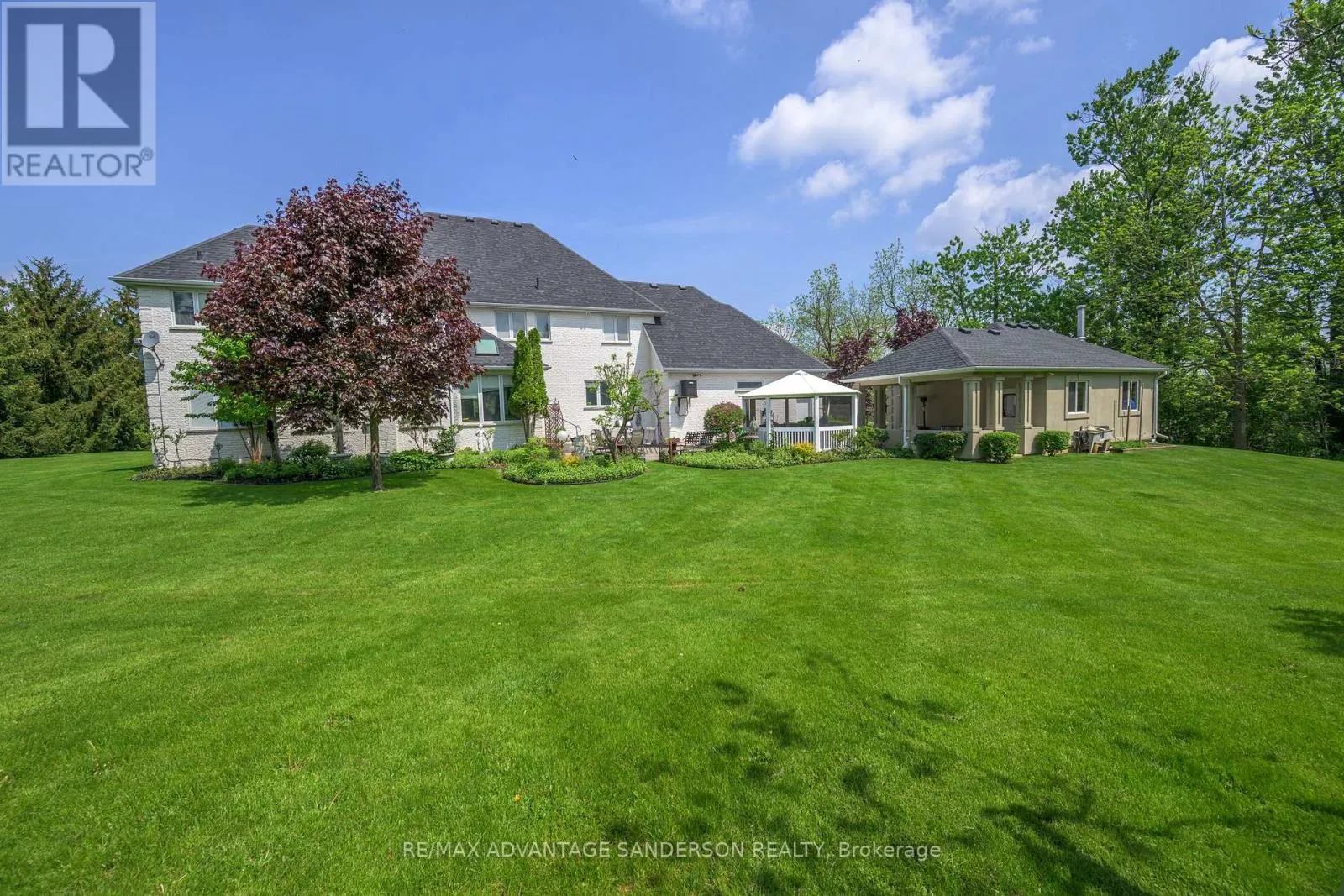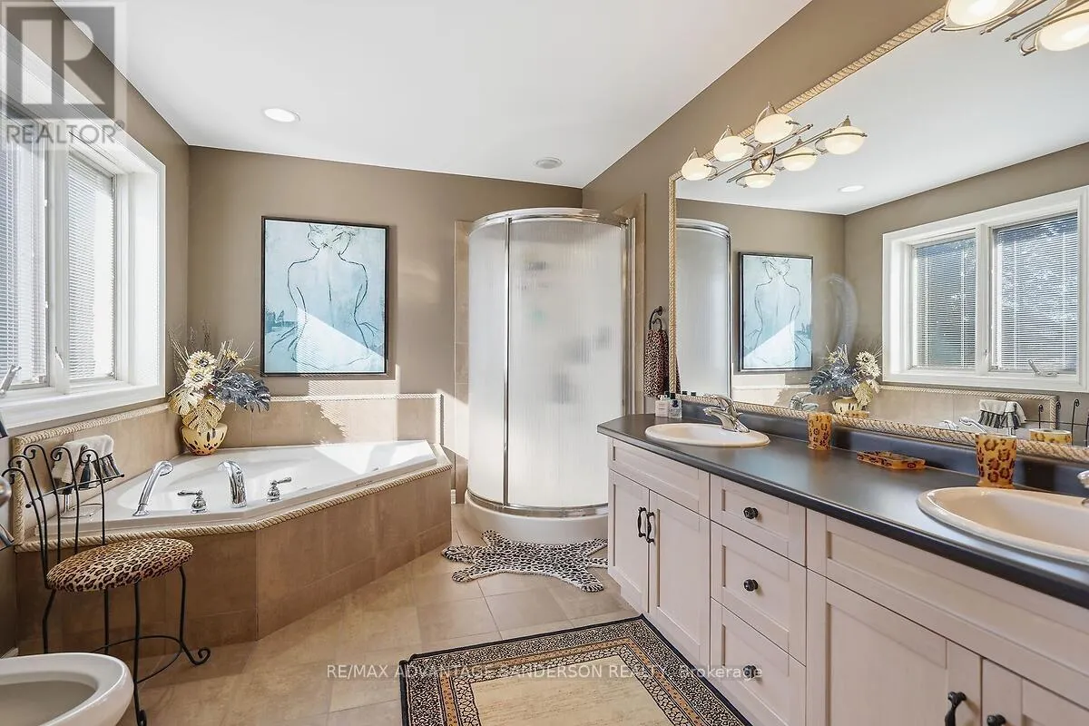 Cross Streets: Gainsborough Road. ** Directions: Wonderland Road North to Gainsborough Road to Denfield Road. RARE offering - 5 ACRES just minutes from the city. Welcome to 20735 Denfield Road, an extraordinary custom-built estate offering over 6,000 sq. ft. of refined living space on a pristine 5-acre parcel only 2 km from Hyde Park. Here, the serenity of country living meets the convenience of the city, with flat land presenting exceptional privacy and maturity! A dramatic 25-foot entryway filled with natural light welcomes you, anchored by a striking 3-storey eye-shaped staircase that sets the tone for the home's architectural elegance. The main level unfolds into an impressive open-concept layout featuring a formal dining room, expansive family room with gas fireplace, and a spectacular chef's kitchen designed for both everyday living and grand entertaining. A vaulted-ceiling den, bedroom with 4-piece ensuite and walk-in closet, main-floor laundry, and access to a private patio complete this level. The gourmet kitchen showcases built-in appliances, custom cabinetry, and a quartz island with wet bar, all overlooking the private backyard. The adjoining sunroom opens to a patio and gazebo, creating the perfect setting for entertaining or quiet relaxation. Upstairs, four spacious bedrooms each feature their own private ensuite and walk-in closet, offering comfort and privacy for family and guests alike. The lower level includes a large recreation room with game tables, second kitchen, generous storage, and a 2-piece bathroom. The exterior is equally impressive, with refined landscaping, accent lighting, and mature trees providing both beauty and privacy. Additional features include a detached 2-car garage, a 400 sq. ft. utility shed with water access, and a unique 500 sq. ft. home office with dedicated electrical and HVAC system - originally a 2-car garage that could easily be converted back for car enthusiasts. A rare opportunity to own a truly exceptional estate in an idyllic setting. Explore the the 3D tour at: https://my.matterport.com/show/?m=ZExwa55rM5a (id:27476)
