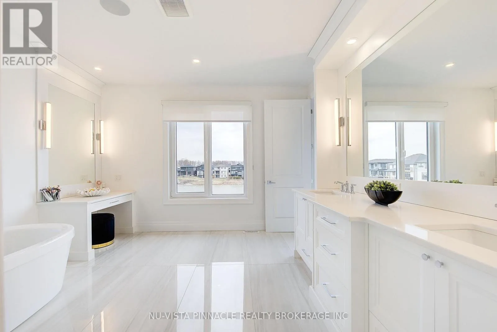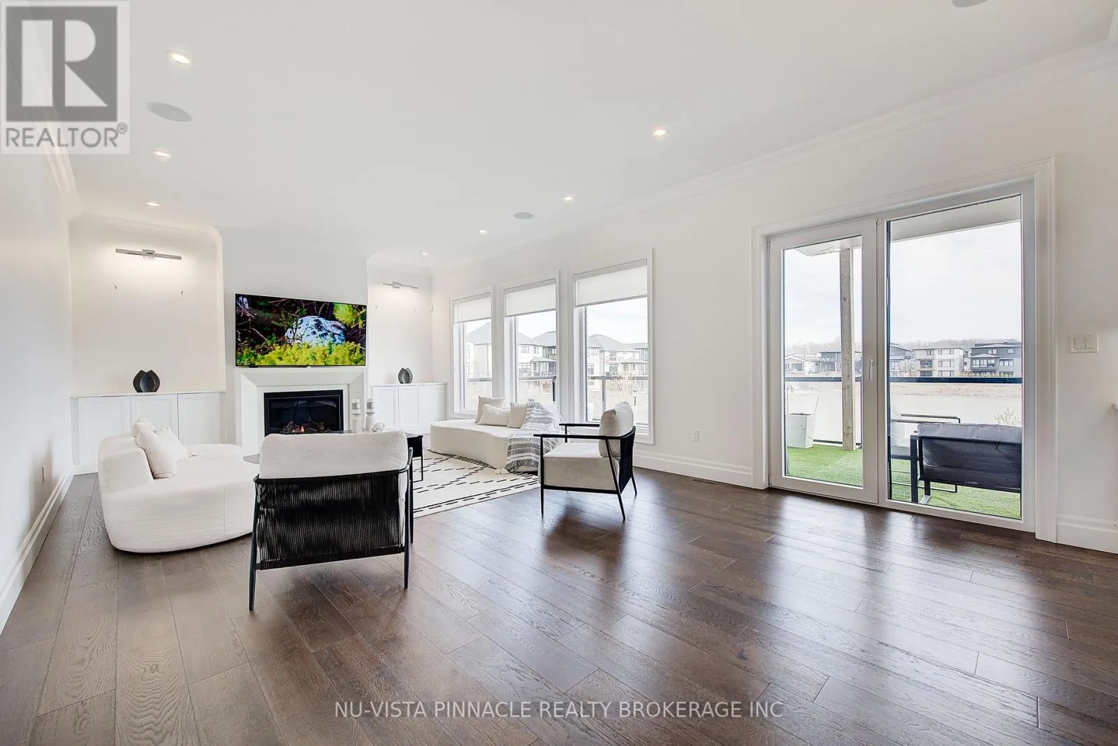 Cross Streets: Bridgehaven Dr. ** Directions: Drive on Wonderland rd from Fanshawe Park Dr, Take left on Medway Park dr, Cross three RoundAbouts and Keep Driving,Property is on Right hand Side. Experience luxury living in this stunning home offering 3,840 sq. ft. above grade plus a 1,356 sq. ft. finished walkout basement, beautifully backing onto a serene pond. The main level features 10 ft ceilings, while the second floor offers 9 ft ceilings, creating an open and elegant feel throughout. The home showcases a designer limestone fireplace surround, commercial-size appliances, built-in speakers, and a private office.Enjoy the comfort of heated floors in all bathrooms, the mudroom, and laundry areas, adding warmth and convenience throughout the home.The second level offers 4 spacious bedrooms, each with its own ensuite, including a luxurious primary retreat featuring a large custom built-in closet and an oversized spa-inspired ensuite. The laundry room includes custom built-ins for added functionality and organization.Step outside to a half-covered, half-sun deck overlooking the pond, perfect for relaxing or entertaining while enjoying the peaceful views.The walkout basement offers a fully functional in-law suite complete with a separate kitchen, bedroom, additional room, and its own laundry, providing excellent flexibility for extended family living or multi-generational use.A rare opportunity to own a beautifully designed home combining luxury finishes, exceptional space, and breathtaking pond views. (id:27476)