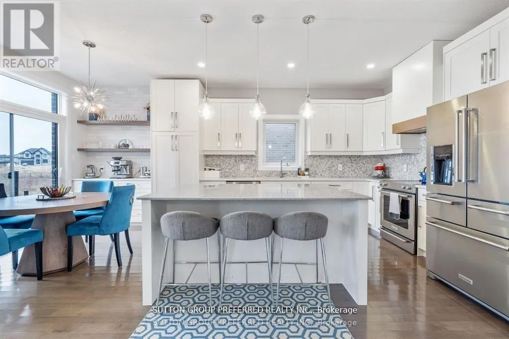 TOKOLA Stunning custom-built home on a premium walkout lot backing onto Creek. This fully custom property features everything upgraded, from modern light switches, to faucets, to quartz countertops throughout and a newly redesigned kitchen with high-end appliances and a dedicated coffee station. Large windows fill the home with natural light, complementing the open layout. Enjoy outdoor living on the double composite deck with glass railing overlooking the creek. Inside, you'll find 4 bedrooms, 3.5 baths, 3 electric fireplaces, a formal dining room along with custom built-ins in the mudroom and basement. The walkout lower level offers a media room, wet bar, spacious rec area, and direct access to the yard. A truly exceptional home showcasing quality, comfort, and beautiful views. (id:27476)