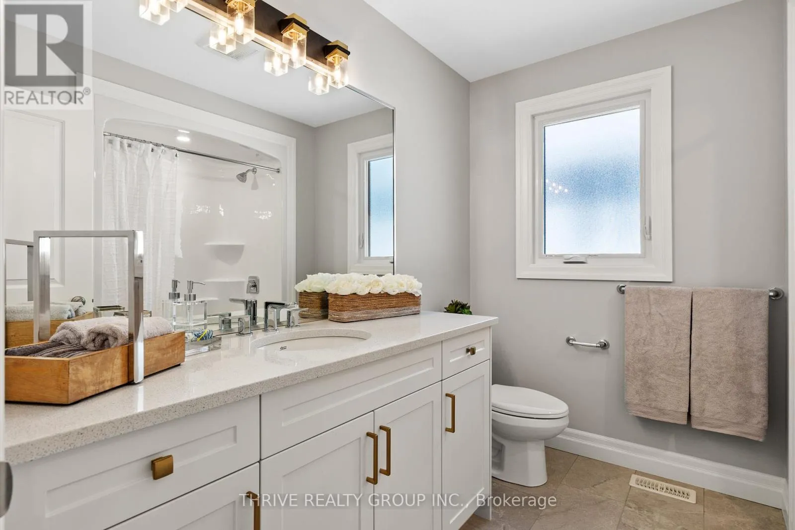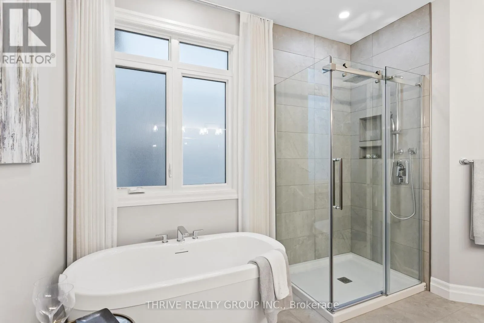 Cross Streets: Wonderland/Sunningdale. ** Directions: Wonderland and Sunningdale. Welcome to Rembrandt Walk, a prestigious Vacant Land Condo Community by Rembrandt Homes, where luxury living meets low-maintenance convenience. This beautiful "Gallery" Model Home is move-in ready and offers the perfect balance of detached home ownership with the ease of condo living. As a Vacant Land Condo, you enjoy the freedom of a detached home - including the ability to fence your yard - while low monthly fees take care of lawn care and snow removal, allowing you to spend more time enjoying a carefree lifestyle. This executive bungaloft features a thoughtfully designed floor plan with high-end finishes throughout. The open-concept main floor showcases a chef's kitchen with premium appliances, a formal dining area, and a spacious living room highlighted by a cathedral ceiling and cozy gas fireplace. Step outside to the large covered deck, an ideal space for relaxing or entertaining. The main level also features a luxurious primary suite complete with a spa-inspired 5-piece ensuite. Upstairs, the versatile loft level offers the perfect space for a media room, guest bedroom, and a 4-piece bathroom. The fully finished lower level expands your living space with a cozy recreation room, fourth bedroom, 3-piece bath, and ample storage. This home is truly move-in ready, complete with all appliances and custom window coverings. Condo fees include exterior grounds maintenance for both front and rear yards, providing true maintenance-free living. Ideally located just minutes from shopping, Masonville Mall, Sunningdale Golf Club, Western University, and University Hospital, this home perfectly blends elegance, comfort, and convenience. Book your private showing today! Call for a Private Tour or visit during Model Home Hours: Monday-Thursday 1-5 PM | Saturday-Sunday 1-4 PM (Closed Fridays). (id:27476)