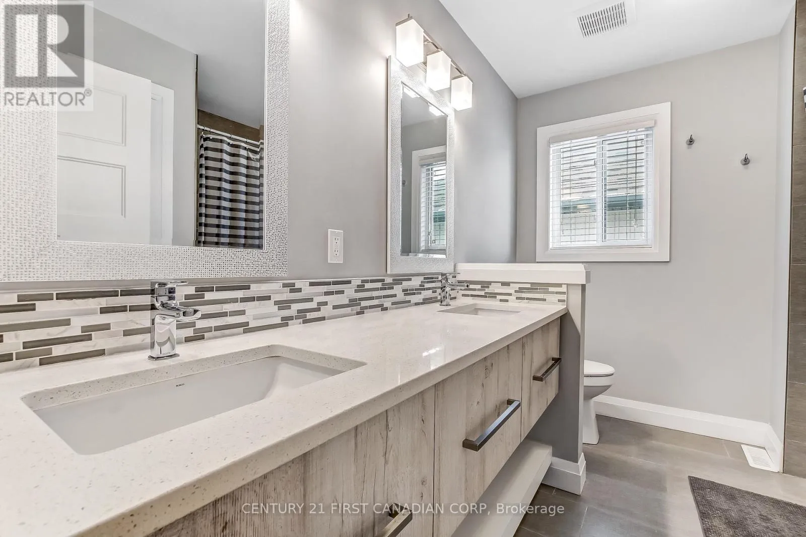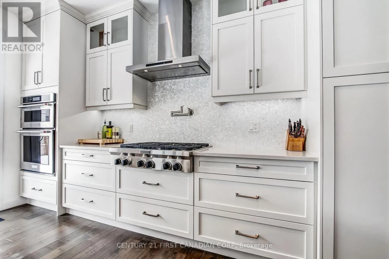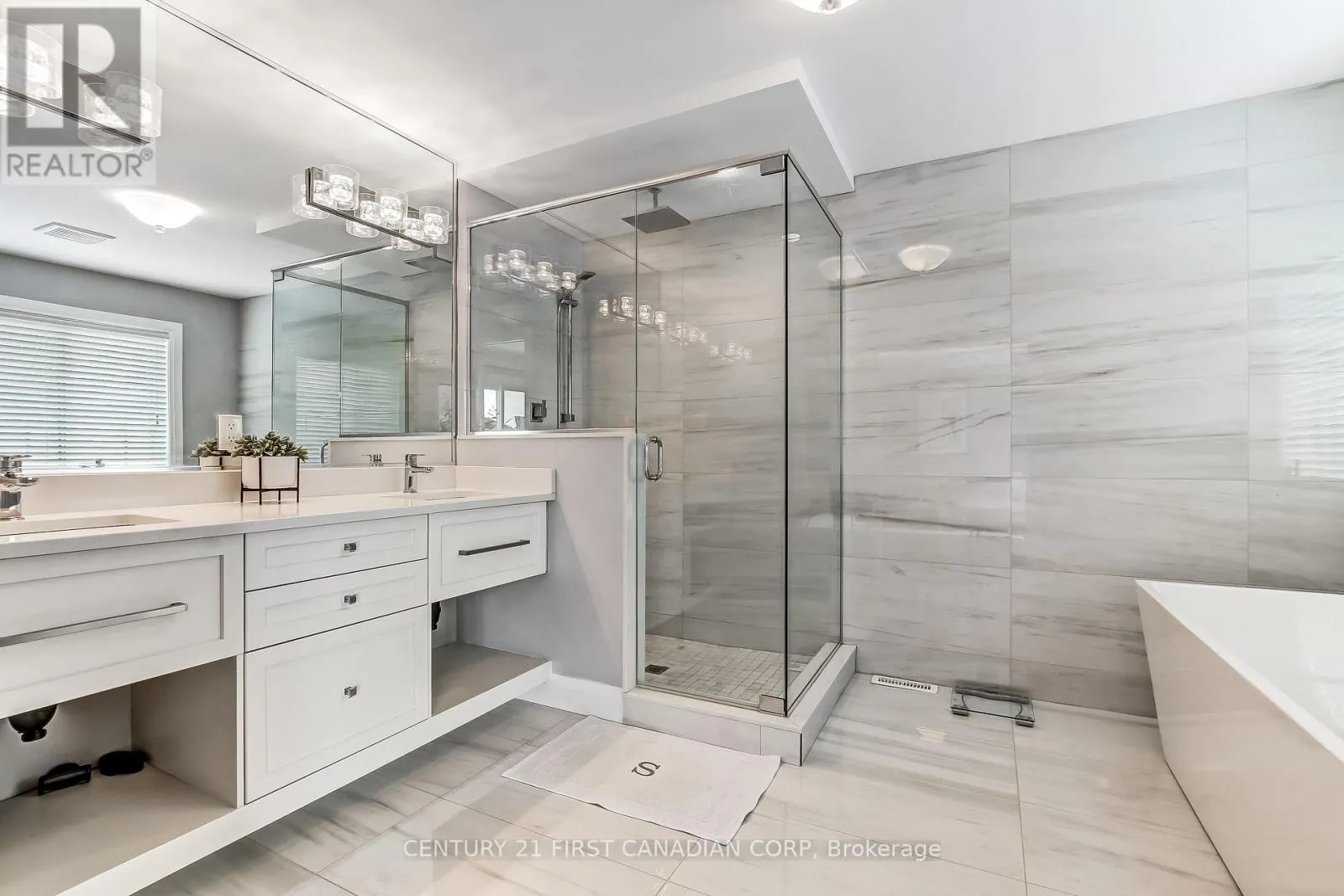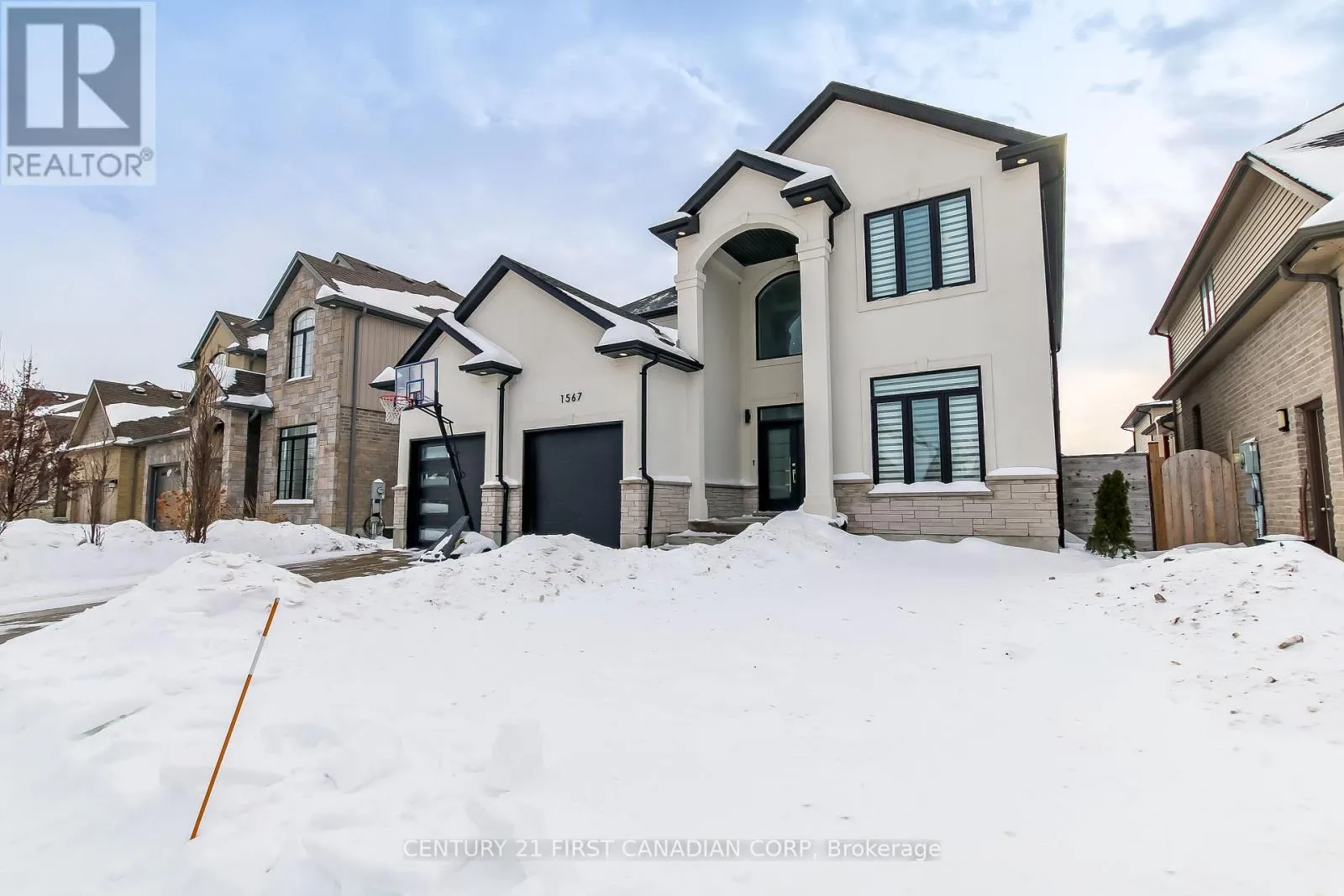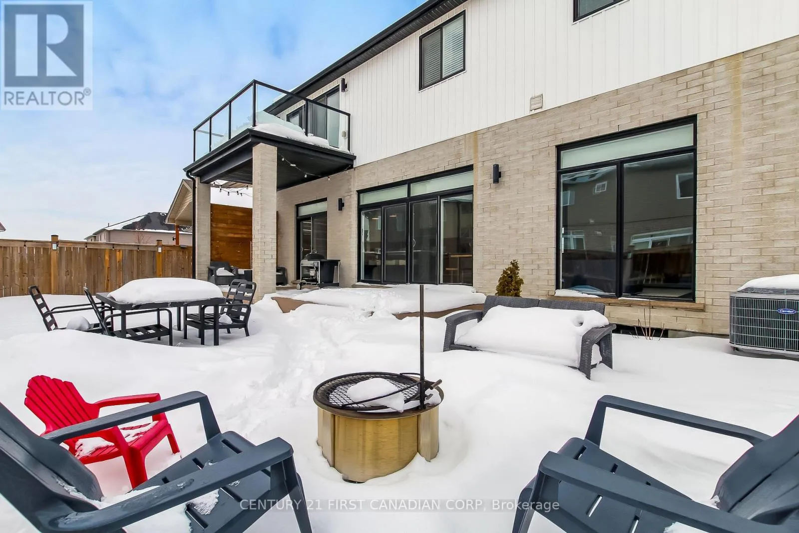 Cross Streets: Highbury Avenue North and Blackwell Boulevard. ** Directions: via Fanshawe Park Rd E ,left on Highbury Ave N and right on Blackwell Boulevard. Located in beautiful Fanshawe Ridge, this 3000+ sqft family home is loaded with gorgeous quality finishes, style and contemporary design. This home features 4 generous bedrooms, 3.5 bathrooms, main floor office, spacious living room, elegant formal dining room and an amazing kitchen overlooking your comfortable family room. Granite countertops throughout, upgraded trim levels, gorgeous tile, gourmet kitchen, waffled ceilings, feature wall, engineered hardwood, transom windows, and so much more.Spacious basement with 9-foot ceilings-an open canvas ready for your creative vision. Fully fenced yard featuring well maintained landscaping, concrete walkways, covered patio deck and a fire pit-perfect for outdoor gatherings. Nestled in a calm neighbourhood and conveniently located near a brand-new plaza filled with great amenities. (id:27476)
