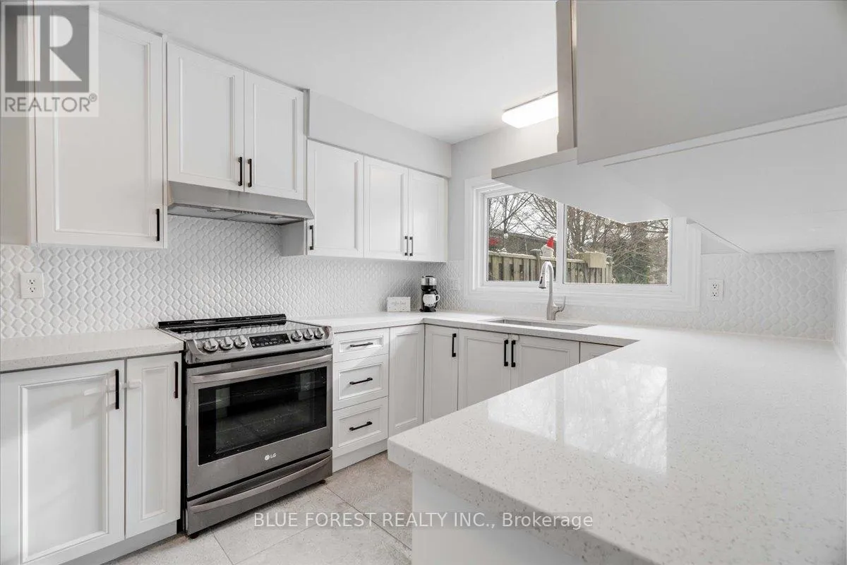 Cross Streets: GAINSBOROUGH RD AND LIMBERLOST RD. ** Directions: WONDERLAND RD N TO GAINSBOROUGH RD TO LIMBERLOST. Welcome to this well-maintained two-storey condo townhouse, offering space, functionality, and a setting that works beautifully for family life. You're welcomed by a front entry with a convenient main-floor powder room and hallway closet storage. The living room is bright and inviting, with large windows that bring in plenty of natural light. From the dining area, patio doors lead out to a private deck and backyard surrounded by mature trees and backing onto green space - a peaceful spot to unwind or let kids play. The updated kitchen features quartz countertops, stainless steel appliances, an elegant backsplash, and plenty of cabinet and counter space, making everyday meals and entertaining easy. Upstairs, you'll find three bedrooms, including a primary bedroom with its own private ensuite powder room. Two additional bedrooms are supported by a full bathroom, offering flexibility for family, guests, or a home office setup. The finished basement adds even more living space - ideal for a rec room, play area, or home gym - along with another full bathroom, bringing the total to 2 full baths and 2 half baths. An attached garage, private driveway parking, and a quiet west-end location close to parks, shopping, transit, and schools - including Western University and University Hospital - complete this move-in-ready home. Multiple bus routes are just a short walk away, making commuting to Western University or downtown London simple and stress-free. (id:27476)