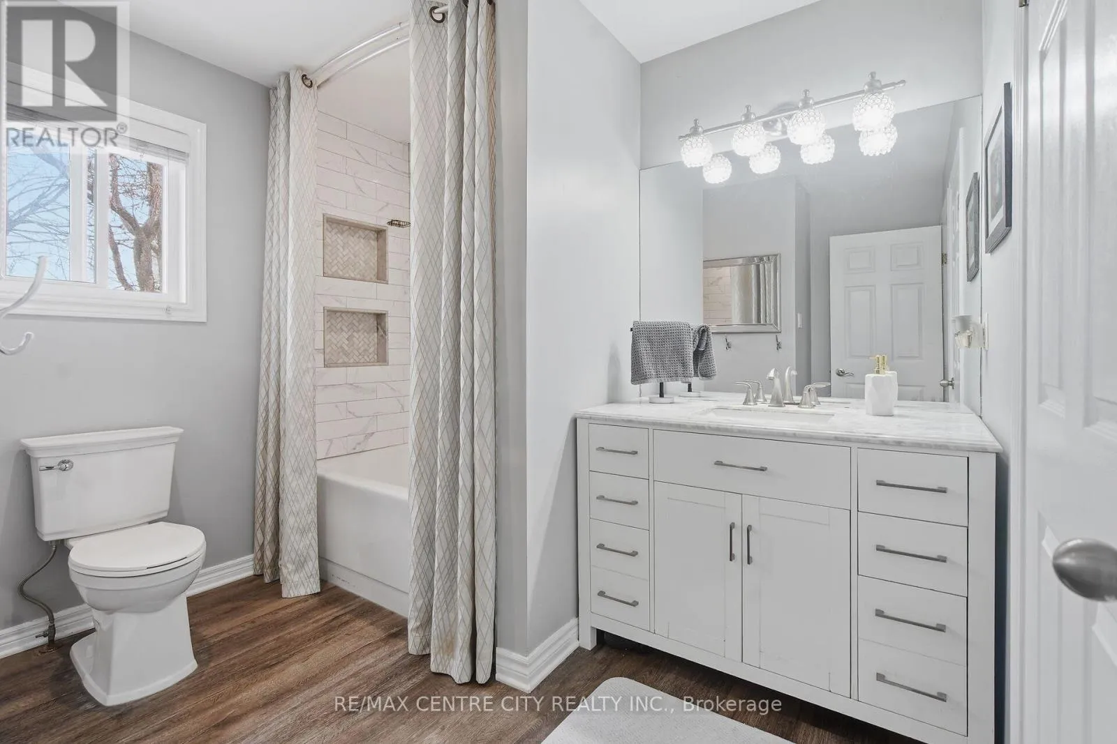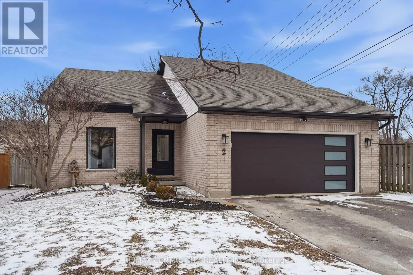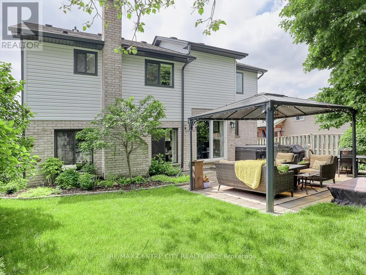 Cross Streets: Fanshawe Park Rd. ** Directions: North off of Fanshawe Park Rd. Move-in ready North London home in one of the city's most desirable school districts - welcome to 2 Stoneycreek Crescent. This distinctive two-storey residence features expansive vaulted ceilings, a fully updated kitchen (2019), and a cozy sunken living room within a thoughtful, unique layout. Other interior highlights include a large renovated double-car garage, a main-floor powder room with space to add a shower, and a convenient home office. Upstairs offers three generous bedrooms and a beautifully updated four-piece bathroom with a custom niche and striking tile-work. Outside, a private, tree-lined backyard provides a peaceful retreat with a pergola, storage shed, Hot Tub, and attractive stone-style retaining wall - perfect for relaxing or entertaining. The property enjoys lots of mature trees and beautiful gardens filled with perennials, enhancing the homes curb-appeal. The large driveway also conveniently accommodates parking for 4 vehicles. The lower level adds a recreation room, cold storage and generous storage options. Recent improvements: windows, front and patio doors, garage door (2020); newer flooring, furnace and A/C (2019); siding (2020). Convenient to parks, schools, dog park, Stoney Creek Community Centre, YMCA, library, Thames River walking trails, Western University, University Hospital, Masonville Mall, St. Joseph's Hospital, Fanshawe College and transit. Ready to enjoy and make it your own!!! (id:27476)