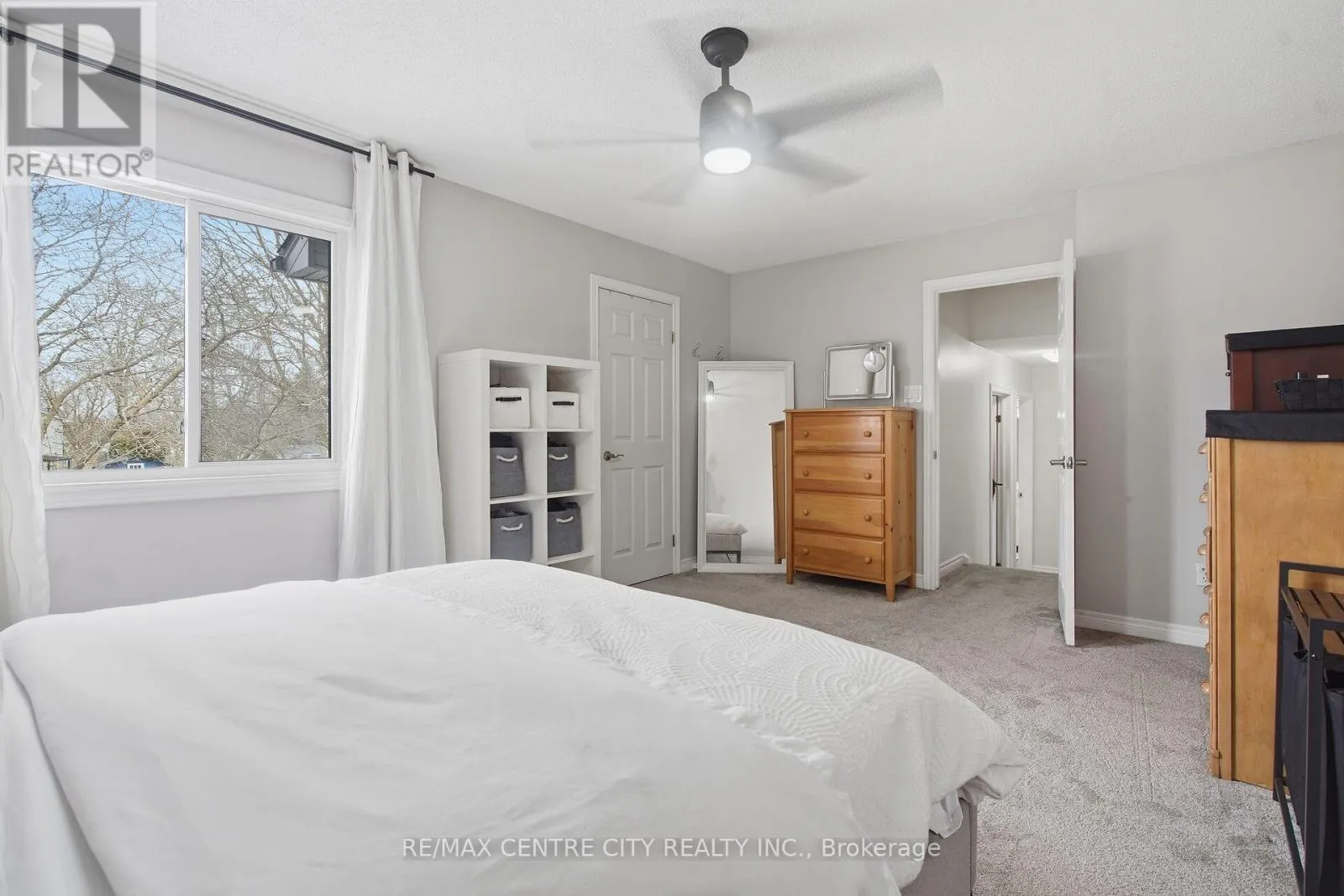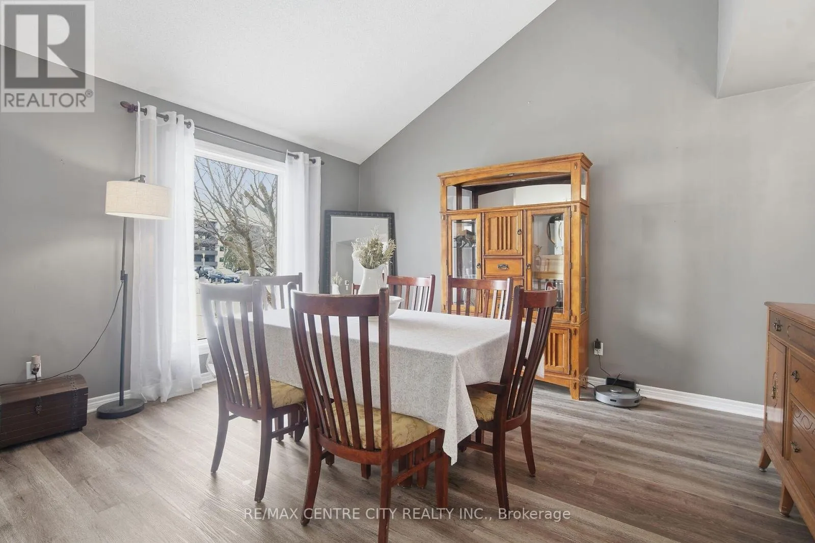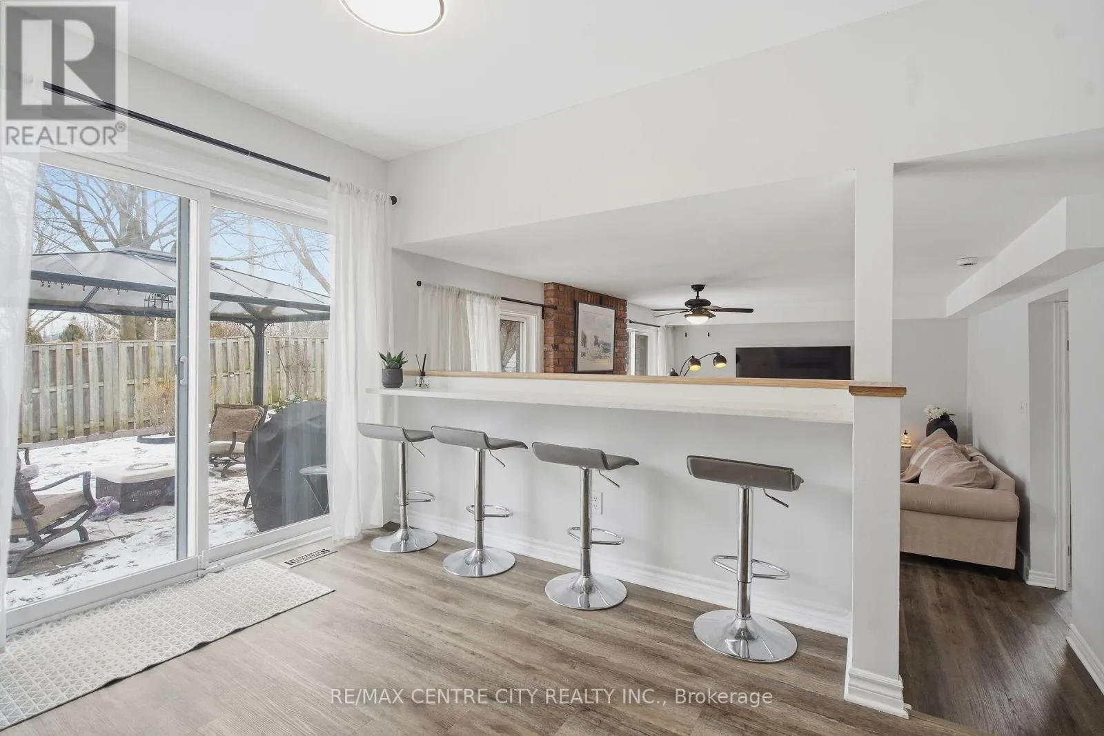 Cross Streets: Fanshawe Park Rd. ** Directions: North off of Fanshawe Park Rd. Move-in ready North London home in one of the city's most desirable school districts - welcome to 2 Stoneycreek Crescent. This distinctive two-storey residence features expansive vaulted ceilings, a fully updated kitchen (2019), and a cozy sunken living room within a thoughtful, unique layout. Other interior highlights include a large renovated double-car garage, a main-floor powder room with space to add a shower, and a convenient home office. Upstairs offers three generous bedrooms and a beautifully updated four-piece bathroom with a custom niche and striking tile-work. Outside, a private, tree-lined backyard provides a peaceful retreat with a pergola, storage shed, Hot Tub, and attractive stone-style retaining wall - perfect for relaxing or entertaining. The property enjoys lots of mature trees and beautiful gardens filled with perennials, enhancing the homes curb-appeal. The large driveway also conveniently accommodates parking for 4 vehicles. The lower level adds a recreation room, cold storage and generous storage options. Recent improvements: windows, front and patio doors, garage door (2020); newer flooring, furnace and A/C (2019); siding (2020). Convenient to parks, schools, dog park, Stoney Creek Community Centre, YMCA, library, Thames River walking trails, Western University, University Hospital, Masonville Mall, St. Joseph's Hospital, Fanshawe College and transit. Ready to enjoy and make it your own!!! (id:27476)