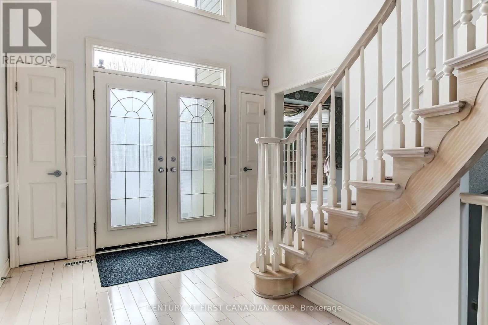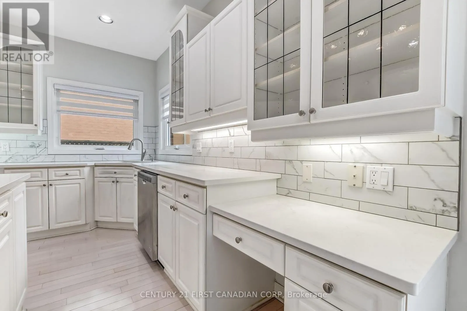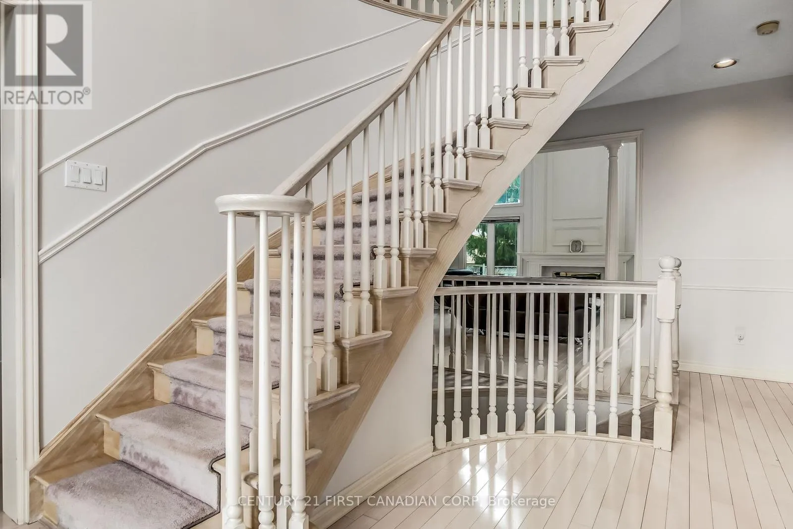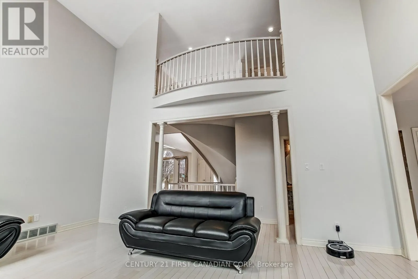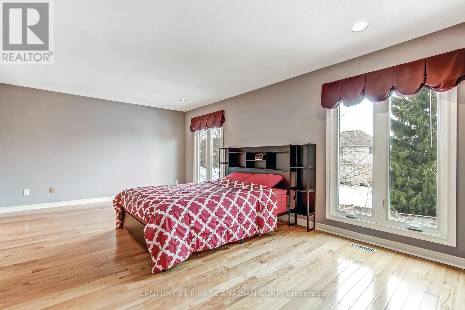 Cross Streets: Fanshawe and Wonderland. ** Directions: Turn onto Derwent Rd from Fanshawe Park rd W. Tucked away on a quiet street in one of North London's most prestigious neighborhoods, this elegant 4-bedroom, 2.5-bath two-storey home with pool offers over 3,200 sq ft plus a finished lower level of beautifully designed living space. Located in a top-ranked school district and minutes from Masonville, it offers the perfect balance of space, comfort, and convenience for family living. An impressive two-storey foyer and grand staircase create a striking first impression. Hardwood floors, crown molding, and timeless finishes flow throughout the home. The main floor features a private office, a formal dining room with wainscotting and bar area, and a dramatic two-storey great room with wall of windows and gas fireplace. The open-concept kitchen showcases quartz countertops, white cabinetry, stylish backsplash, and stainless steel appliances, seamlessly connecting to the bright dinette and outdoor space. Step outside to your private west-facing backyard retreat, complete with a large deck with pergola, wraparound patio, and kidney-shaped pool, plus generous greenspace and gardens-perfect for relaxing or entertaining. Upstairs, the spacious primary suite offers a walk-in closet and spa-inspired ensuite with soaker tub, walk-in shower, and double vanity. Three additional bedrooms and a full bath complete the second floor. The finished lower level adds flexible living space with a family room, study, recreation area, and room for future expansion. Ideally located near Masonville Place, Western University, Ivey Business School, and University Hospital, this home offers refined living in one of North London's most sought-after communities. (id:27476)