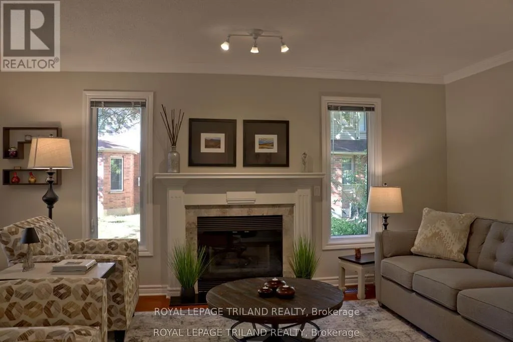 Cross Streets: SUNNYSIDE AND NORTH CENTRE. ** Directions: COMPLEX LOCATED AT THE CORNER OF NORTH CENTRE AND SUNNYSIDE. ENTRANCE OFF SUNNYSIDE. You will love this attractive two story end unit townhouse in the Masonville area. It has a spacious, yet cozy layout with a bright south and east facing eat-in kitchen. Updated kitchen. Hardwoods on the main floor with a lovely oak stairway to the second level. The living room and dining room space is bright with a gas fireplace. Main floor office. The large master bedroom suite upstairs has a five piece en-suite with soaker tub, separate shower and his and hers sinks, and a large walk in closet. One of the secondary bedrooms has a nook space that could be used as an office or hobby area. The two car garage is staggered, meaning that one side of the drive is double length -- great for loading and unloading the trailer. Close to everything. Units like this one don't come up every day. Additional rooms:2nd Floor - Primary Bedroom Walk in Closet - 2.60 x 1.84 x 2.302nd Floor - Nook off 3rd Bedroom - 2.02 x 2.02 x 2.30 Lower - Utility - 5.17 x 3.63 x 2.30 Lower - Other - 3.18 x 3.34 x 2.30Lower - Other - 3.05 x 5.08 x 2.30 Lower - Other - 3.10 x 5.47 x 2.30 (id:27476)