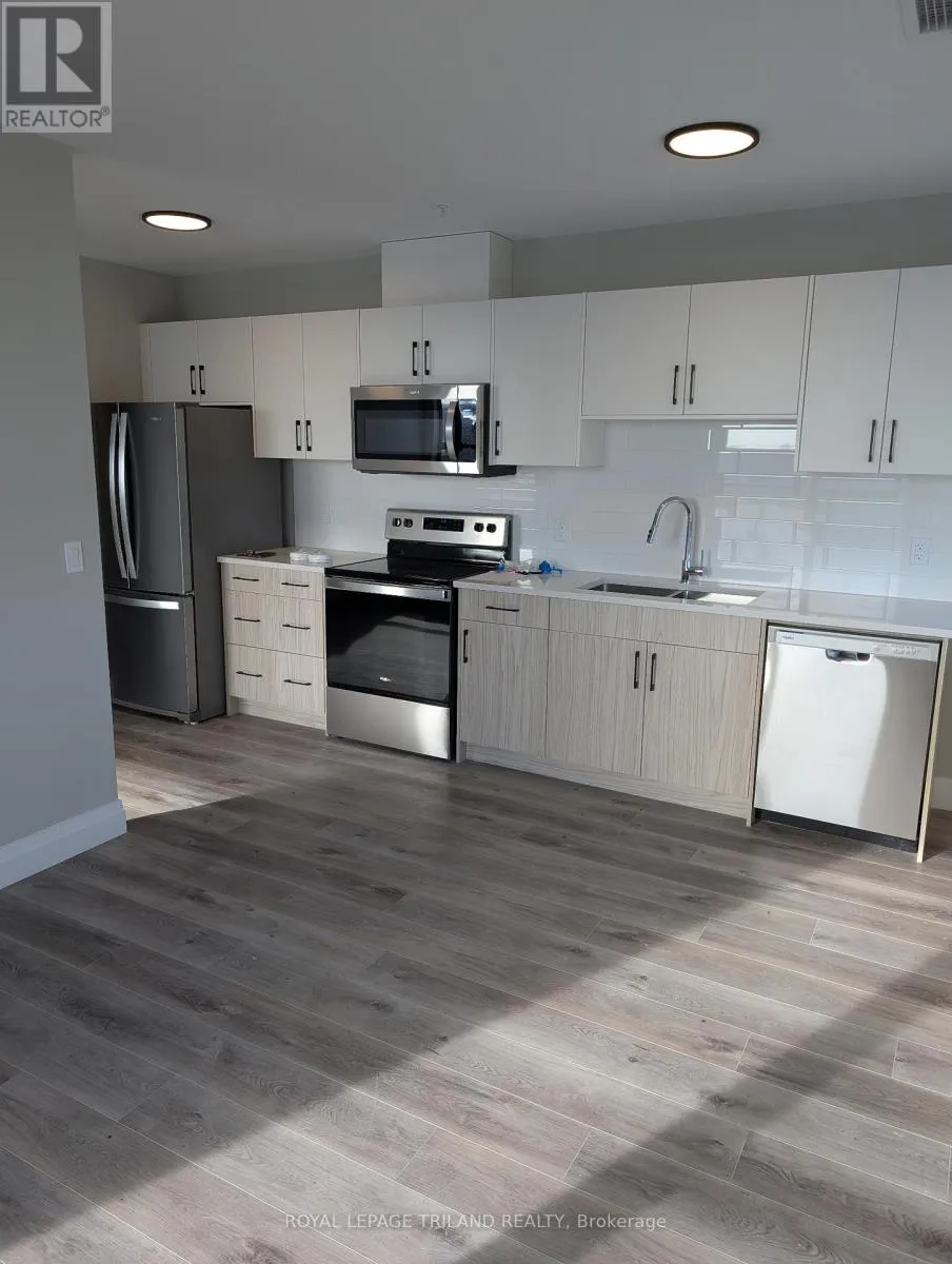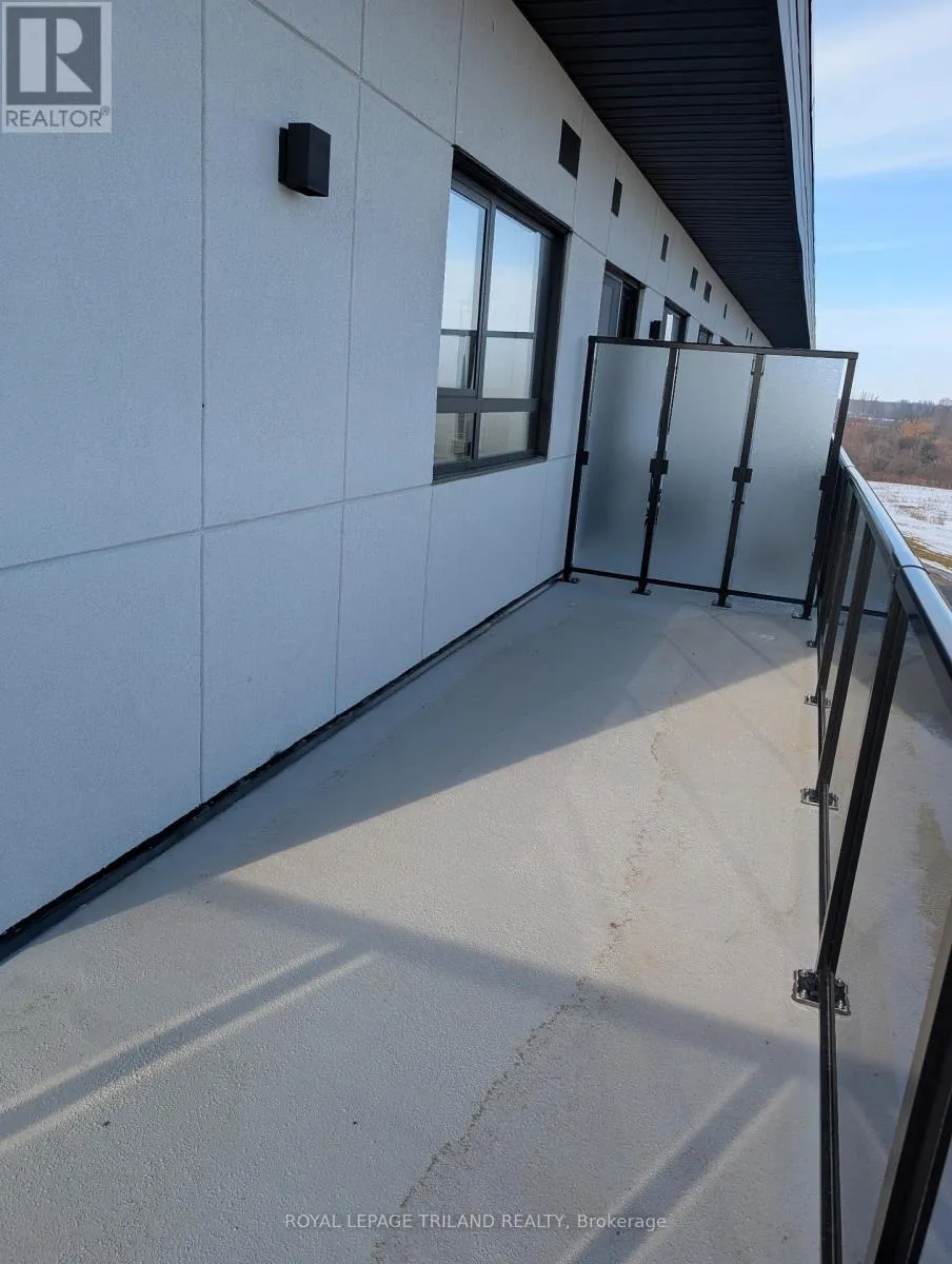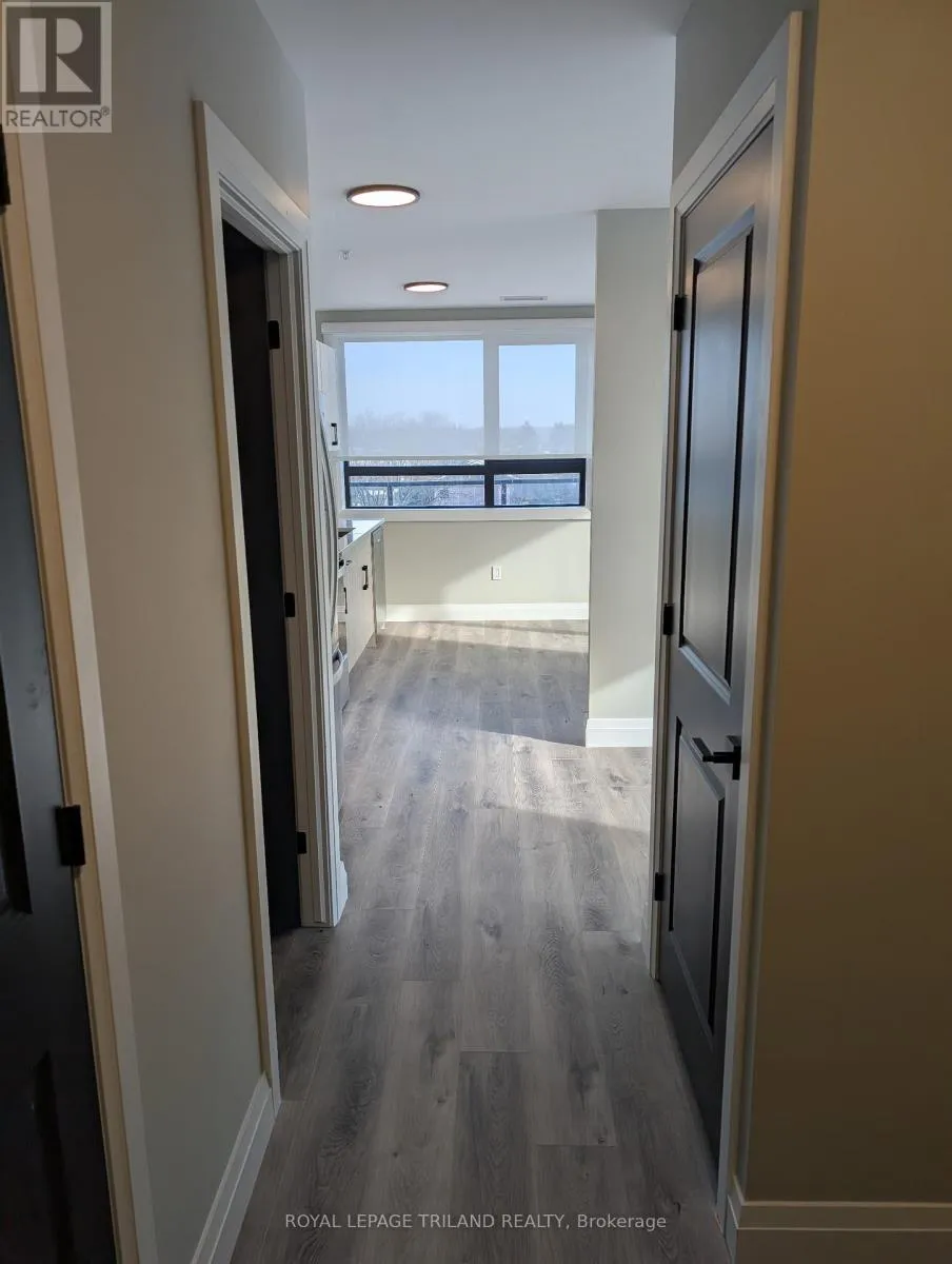 Cross Streets: FANSHAWE PARK RD. E / HIGHBURY AVE. N. ** Directions: from Fanshawe Park Rd E, turn onto Stackhouse Ave (between Highbury Ave N and Trossacks Ave) property on Stackhouse. Welcome to modern living in North London's highly sought-after StaxLyfe community! This beautifully designed bachelor suite offers approximately 540 sq. ft. of contemporary living space and features an end-unit layout with a unique wrap around balcony - providing exceptional outdoor space and added privacy. Inside, you'll find a thoughtfully designed layout complete with air conditioning, in-suite laundry, stainless steel appliances, quartz countertops, and durable vinyl plank flooring, ideal for comfortable, low-maintenance living. Residents enjoy exceptional building amenities, including a fully equipped fitness room, social lounge, bicycle storage, secure controlled entry, and elevators. This 6-storey, smoke-free, wheelchair-accessible building provides both comfort and peace of mind. Ideally situated within walking distance to Food Basics, Starbucks, Dollarama, parks, schools, and public transit, placing everyday conveniences right at your doorstep. Don't miss your opportunity to call StaxLyfe home! Limited-time incentives available. Contact listing agent for more information. (id:27476)