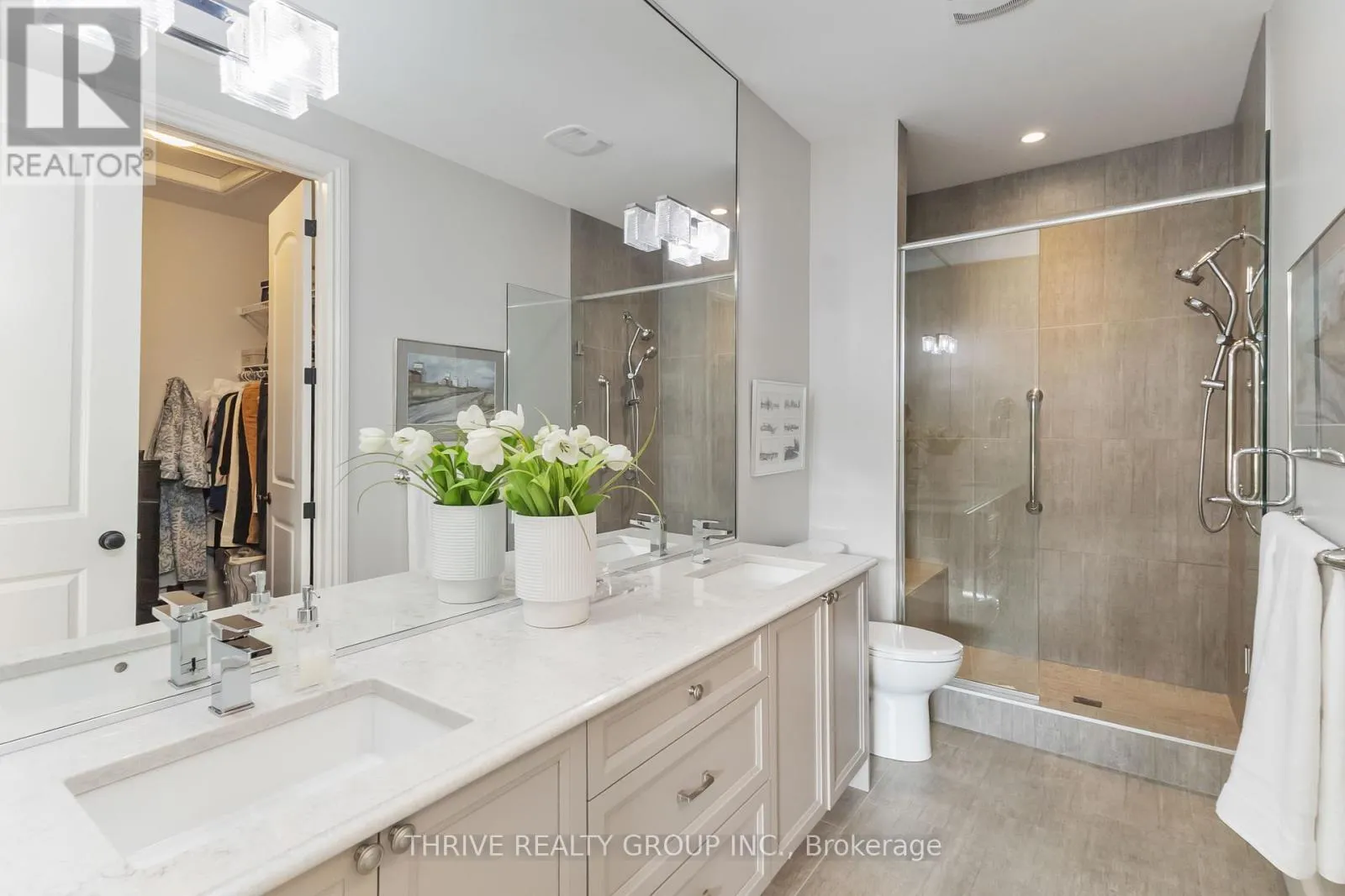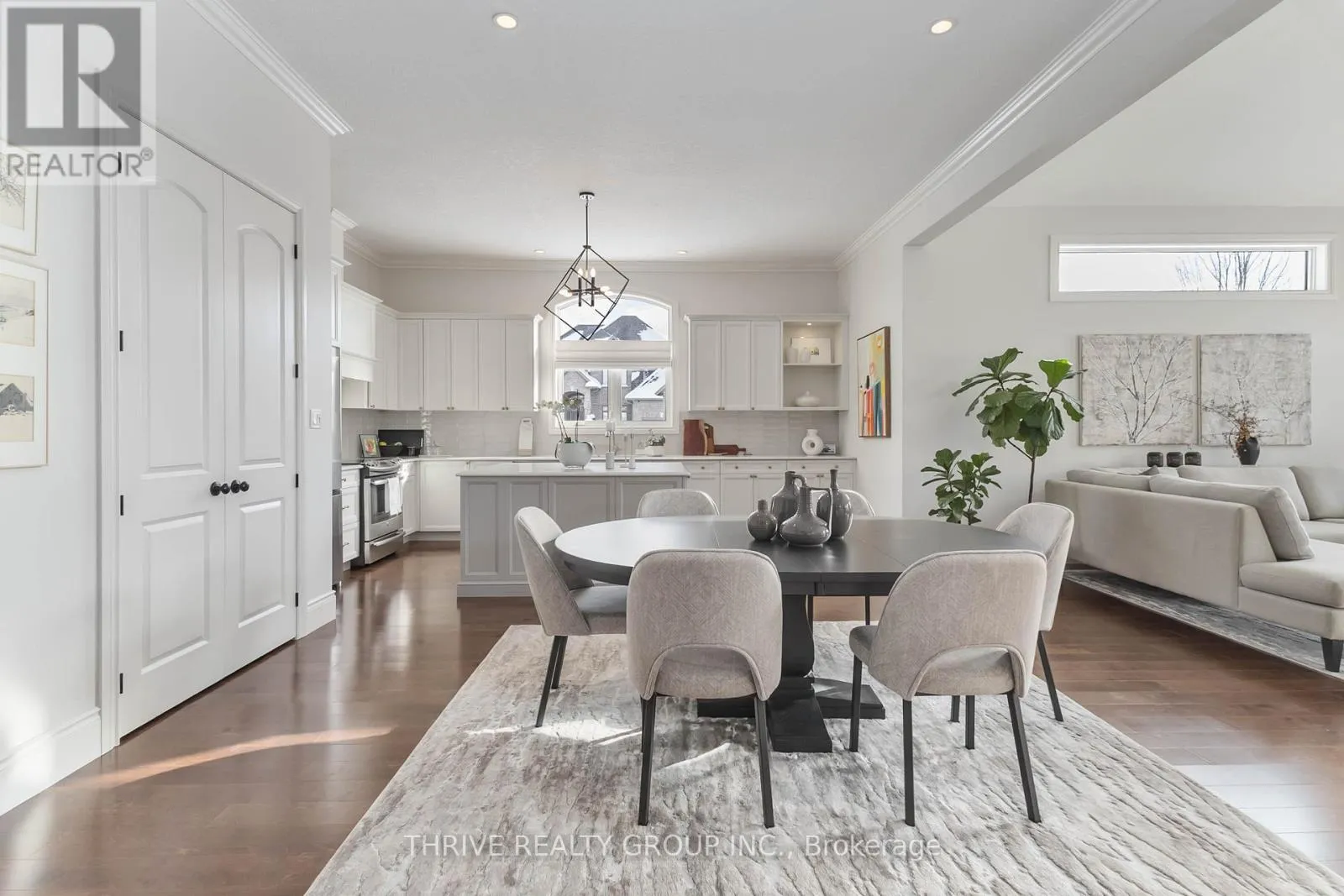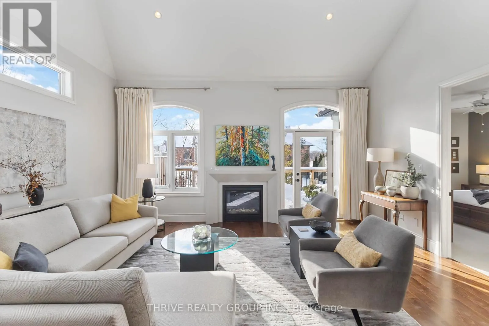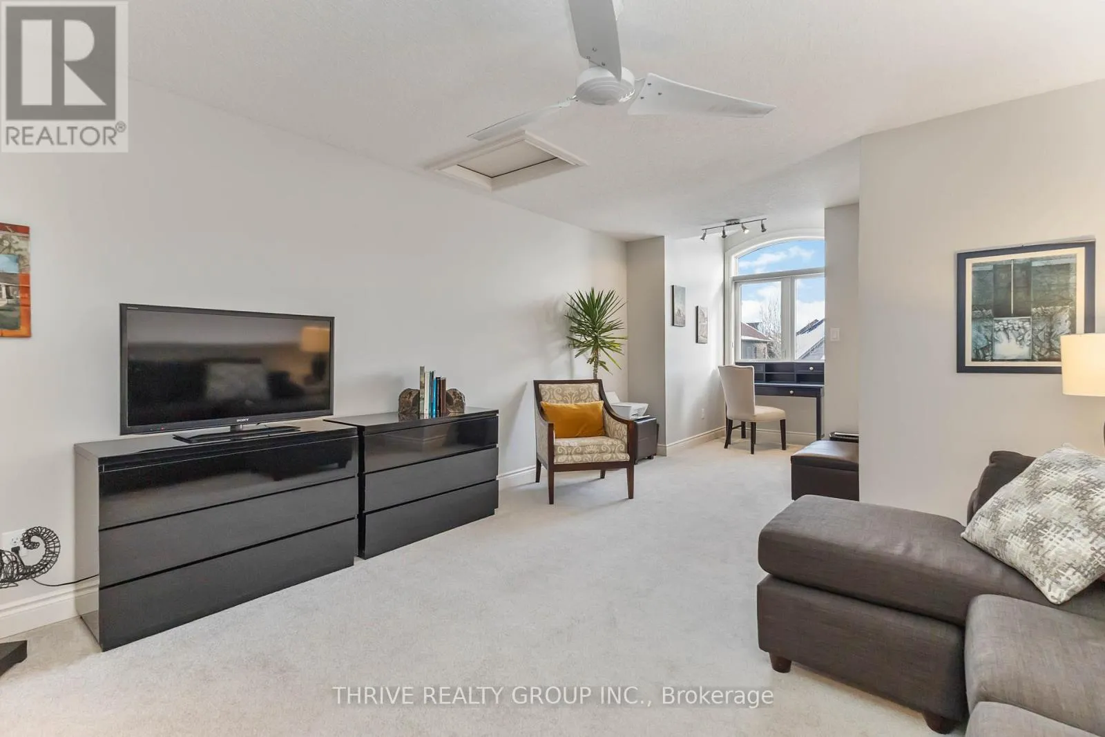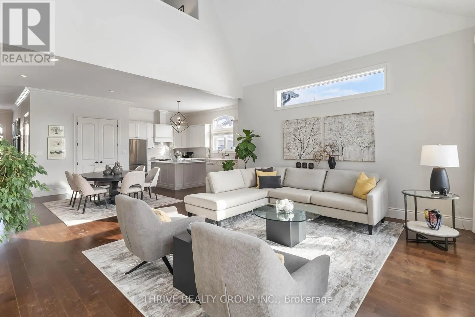 Cross Streets: Callingham Dr & Meadowlands Way. ** Directions: From Sunningdale Rd, turn onto Meadowlands Way, then turn onto Callingham Dr and follow to 2215. #2 will be the first home on your left. Rarely offered end-unit condo near Sunningdale Golf Course, offering exceptional space, privacy, and a truly pristine presentation, with a quiet outlook over mature greenery and a natural water feature, the perfect backdrop for watching evening sunsets. This impeccably maintained residence offers a rare sense of space and calm within the community. The main floor is thoughtfully designed for effortless living, featuring a primary bedroom with ensuite, main-floor laundry, and a flexible den or home office. Soaring ceilings - 10 feet on the main level and an impressive 18 feet in the great room, create a bright, elegant atmosphere, complemented by a beautifully designed kitchen that anchors the home with both style and function, ideal for everyday living and entertaining. The upper level includes a spacious loft area, perfect for additional lounge space, a home office, or a quiet retreat along with a bedroom and additional bathroom. The fully finished lower level adds incredible versatility with a bedroom, kitchenette, family room, sauna, bathroom, and bonus space, perfect for guests, extended family, or hobbies. With 3 bedrooms and 4 bathrooms, double car garage, and no rental items, this home delivers comfort, quality, and ease. Ideally located close to golf, trails, shopping, and everyday amenities, and within excellent school catchments including Masonville PS, A.B. Lucas SS, Louise Arbour FI, Sir Frederick Banting SS, as well as Catholic options St. Catherine of Siena and St. Andre Bessette. A rare opportunity to enjoy spacious, refined, low-maintenance living in one of North London's most desirable communities. (id:27476)