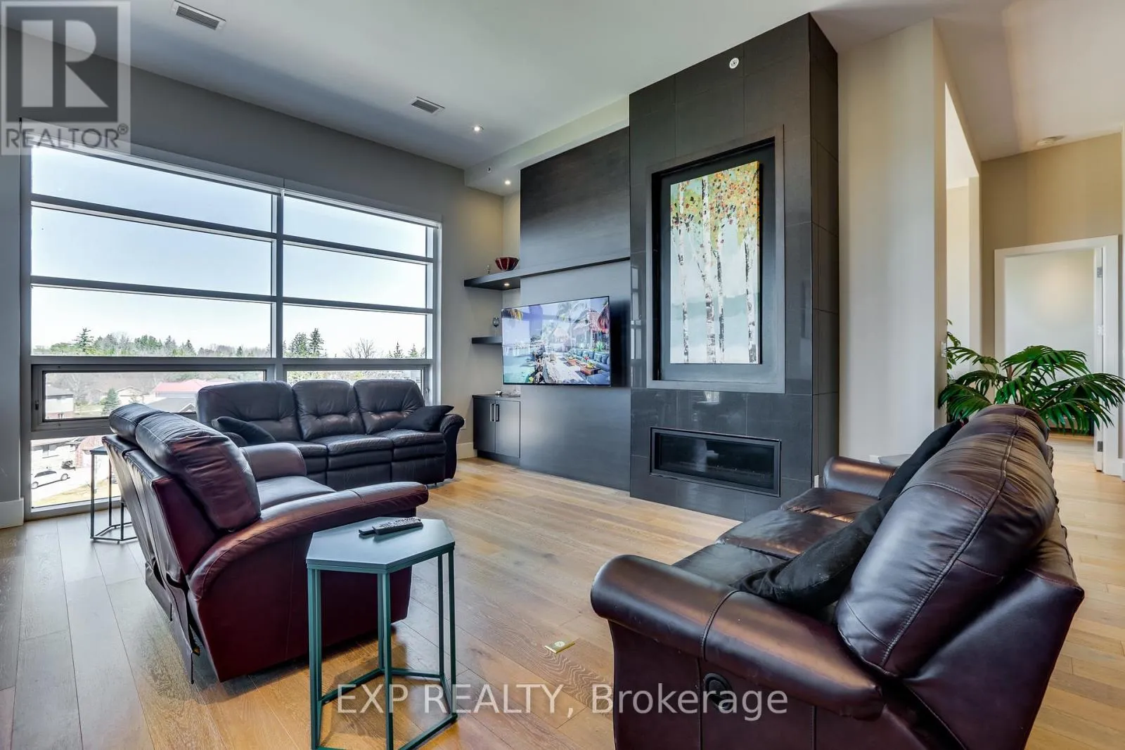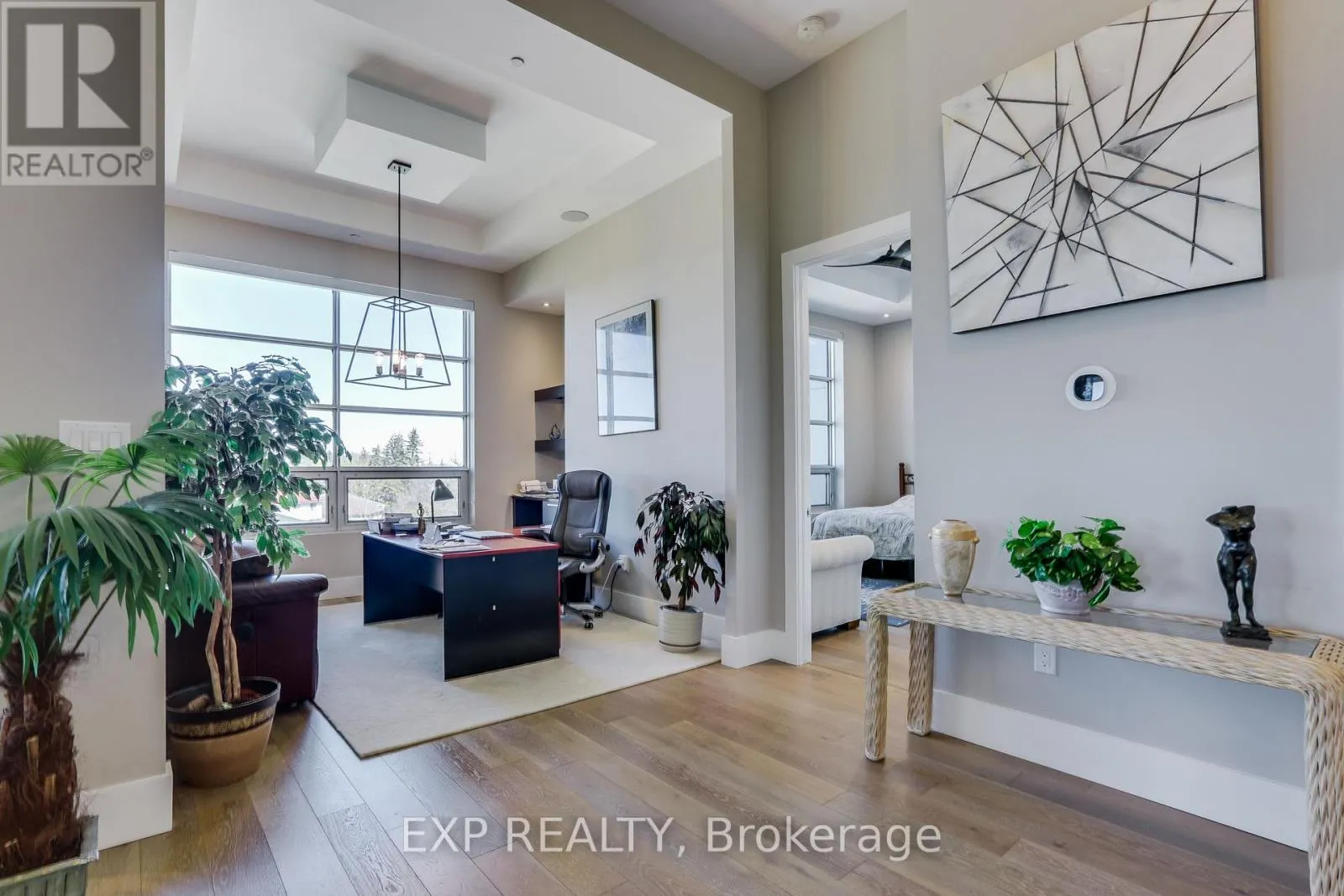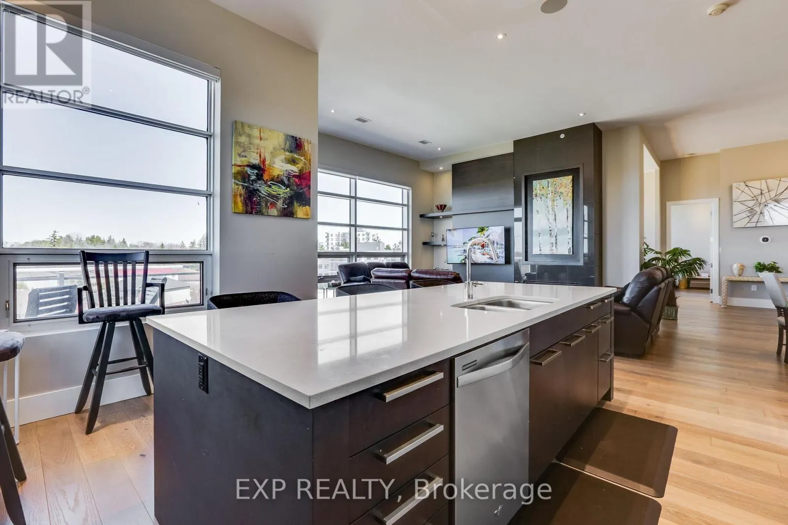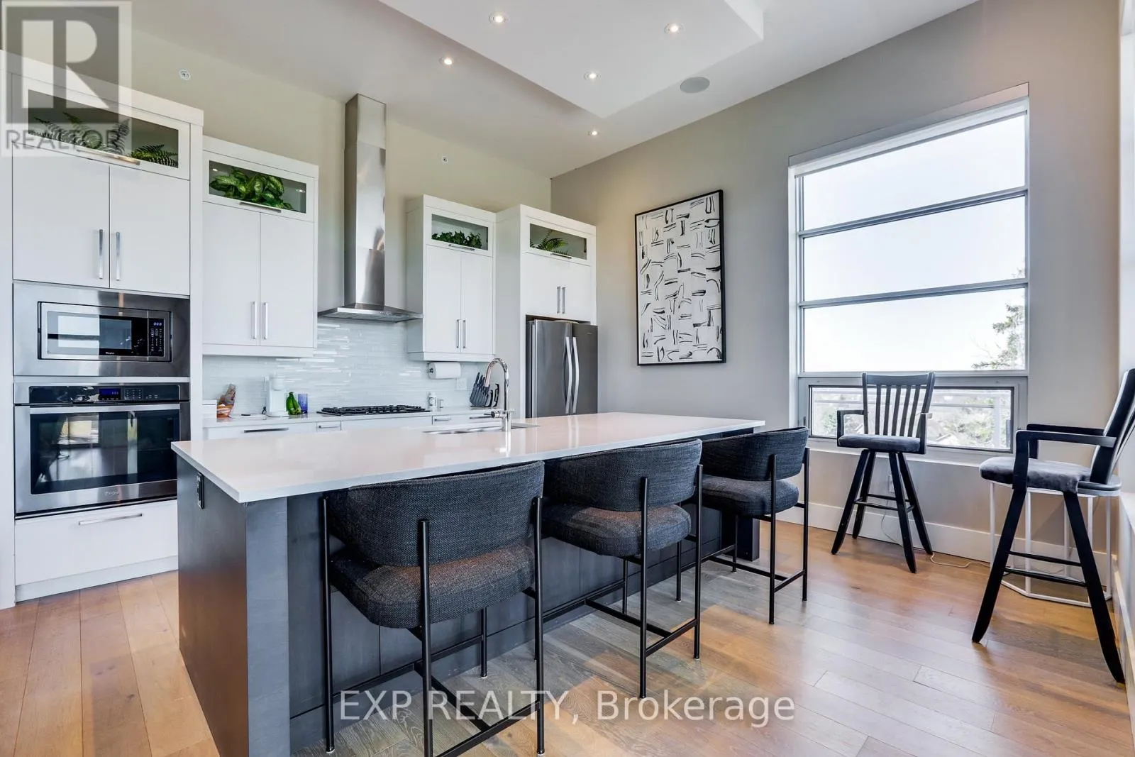 Cross Streets: Butternut. ** Directions: North on Louise, East on Butternut, to Fiddlehead. Rare opportunity to own one of the largest penthouse residences at NorthPoint, offering an impressive 1,980 square feet of elegant living space, soaring 12-foot ceilings, and exceptional outdoor living. Ideally located in sought-after northwest London, this upscale condominium is just minutes from shopping at CF Masonville Place, as well as Western University and London Health Sciences Centre - University Hospital.Designed for both comfortable daily living and stylish entertaining, the open concept great room is filled with natural light from expansive windows and features remote-controlled blinds, a cozy fireplace, and dramatic ceiling heights rarely found in condominium living. The beautifully appointed kitchen showcases quartz countertops, built-in Whirlpool appliances including oven and microwave, gas cooktop burners, and generous workspace ideal for the home chef.A standout feature of this penthouse is the expansive corner balcony, perfectly positioned to capture both north and east exposures and enjoy beautiful morning light along with sweeping views. A second private balcony off the primary bedroom provides a peaceful retreat to start or end the day.The spacious primary suite offers excellent closet space and a luxurious ensuite bath, while the second bedroom is well suited for guests. Additionally, enjoy the convenience of a home office or den. Throughout the residence, rooms are pre-wired for ceiling speakers, allowing seamless integration of whole-home audio.Additional highlights include two underground parking spaces, exclusive storage locker, and a secure, well-managed building in one of North London's most desirable condominium communities.Offering generous space, luxury features and an exceptional location, this penthouse presents a rare opportunity for those seeking refined condominium living without compromise. (id:27476)