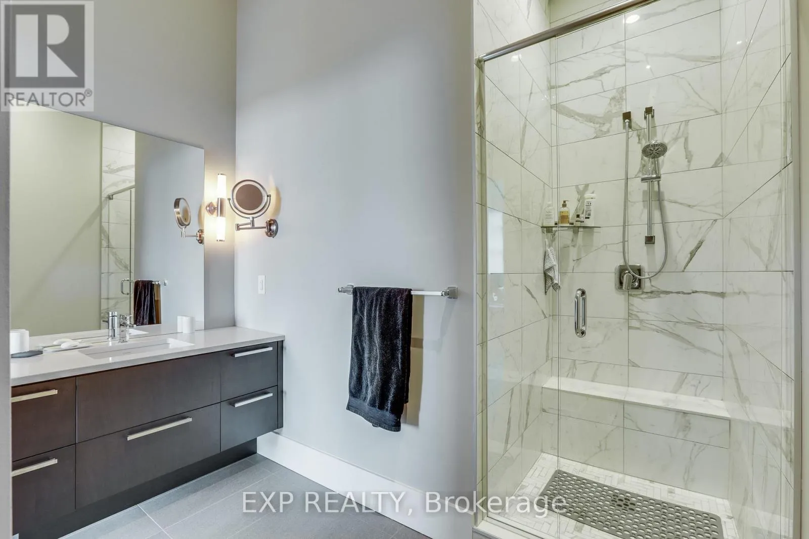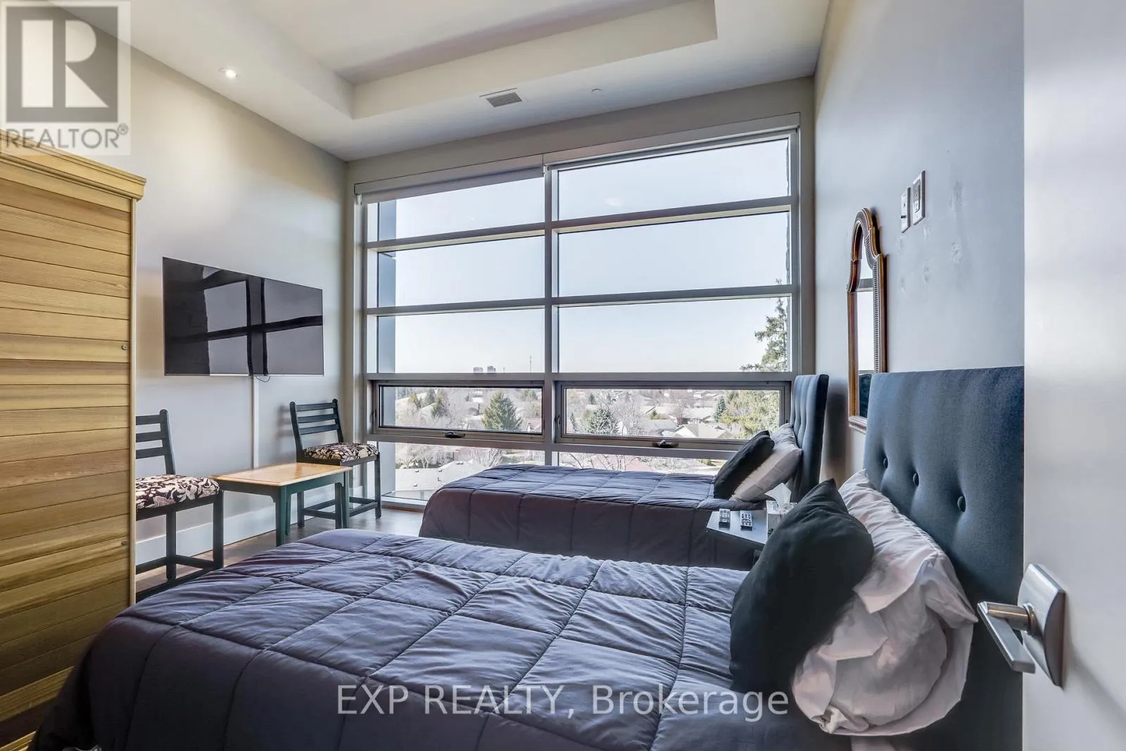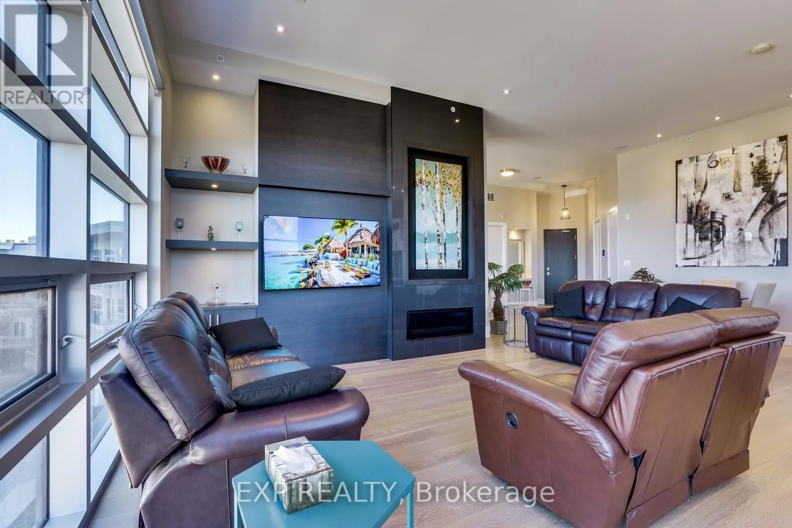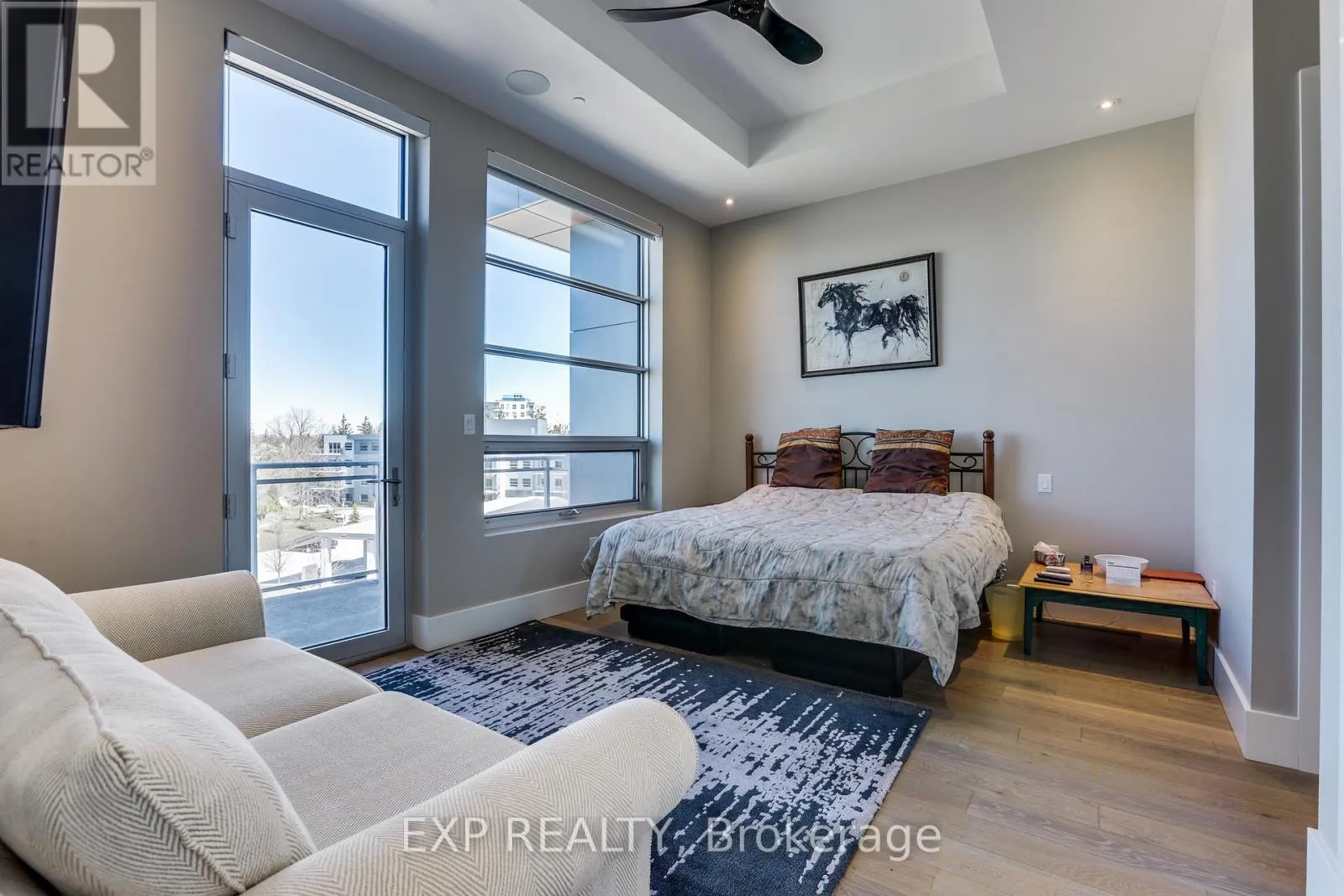 Cross Streets: Butternut. ** Directions: North on Louise, East on Butternut, to Fiddlehead. Rare opportunity to own one of the largest penthouse residences at NorthPoint, offering an impressive 1,980 square feet of elegant living space, soaring 12-foot ceilings, and exceptional outdoor living. Ideally located in sought-after northwest London, this upscale condominium is just minutes from shopping at CF Masonville Place, as well as Western University and London Health Sciences Centre - University Hospital.Designed for both comfortable daily living and stylish entertaining, the open concept great room is filled with natural light from expansive windows and features remote-controlled blinds, a cozy fireplace, and dramatic ceiling heights rarely found in condominium living. The beautifully appointed kitchen showcases quartz countertops, built-in Whirlpool appliances including oven and microwave, gas cooktop burners, and generous workspace ideal for the home chef.A standout feature of this penthouse is the expansive corner balcony, perfectly positioned to capture both north and east exposures and enjoy beautiful morning light along with sweeping views. A second private balcony off the primary bedroom provides a peaceful retreat to start or end the day.The spacious primary suite offers excellent closet space and a luxurious ensuite bath, while the second bedroom is well suited for guests. Additionally, enjoy the convenience of a home office or den. Throughout the residence, rooms are pre-wired for ceiling speakers, allowing seamless integration of whole-home audio.Additional highlights include two underground parking spaces, exclusive storage locker, and a secure, well-managed building in one of North London's most desirable condominium communities.Offering generous space, luxury features and an exceptional location, this penthouse presents a rare opportunity for those seeking refined condominium living without compromise. (id:27476)