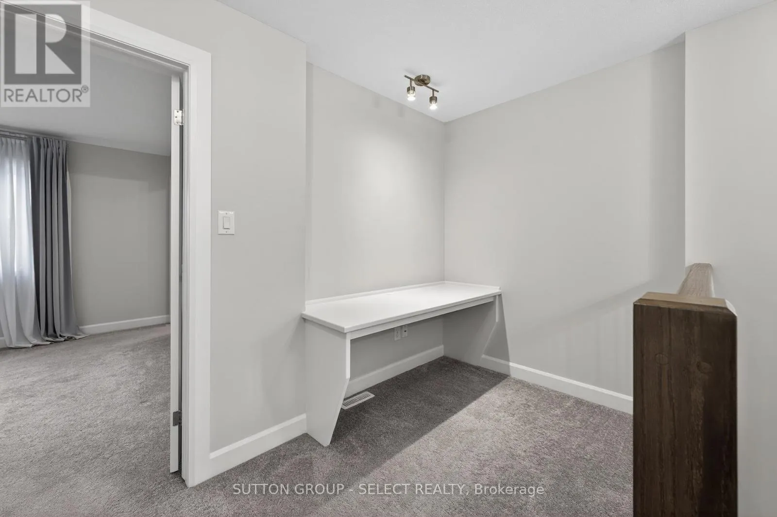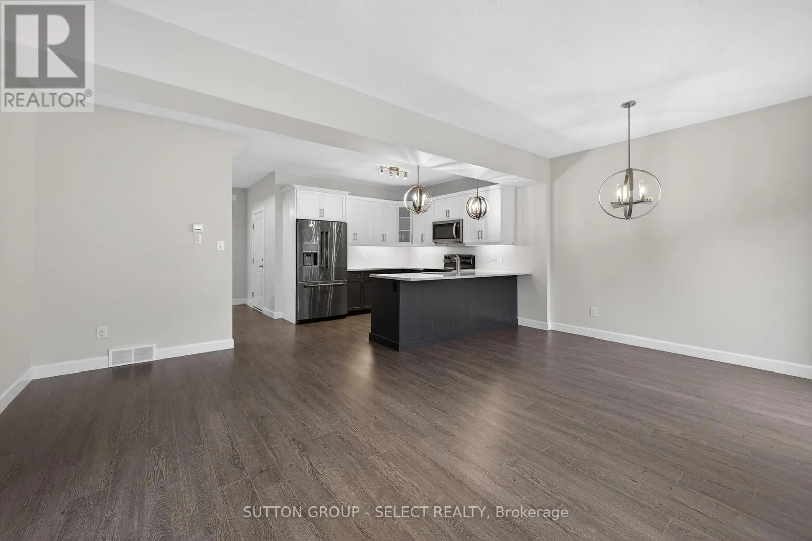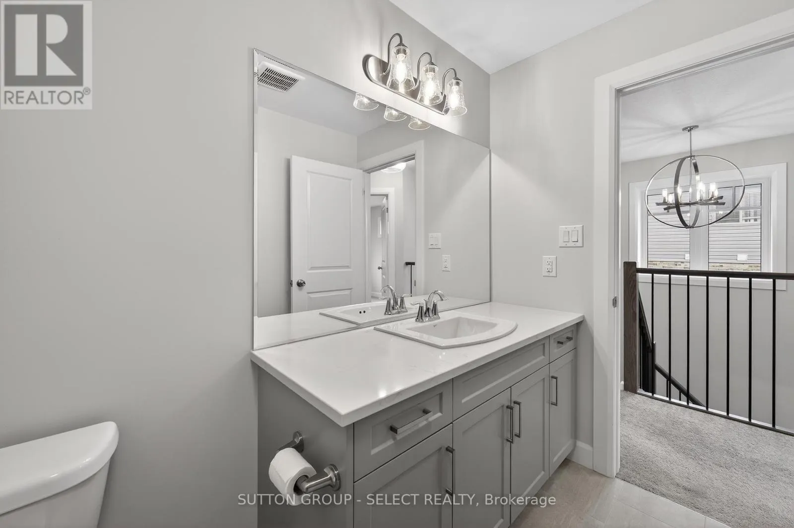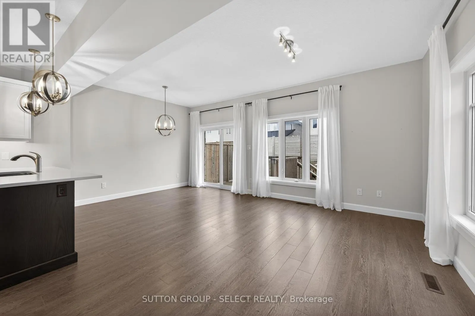 Cross Streets: Fanshawe Pk Rd E & Cedarhollow Blvd. ** Directions: East on Fanshawe Park Rd East, South on Cedarhollow Blvd, turn on Guiness Way. Welcome home at 29-600 Guiness Way in sought after Cedar Hollow! This 2021 Auburn Built property at the peak of the elevation in the subdivision is sure to impress. Sleek finishes, contemporary paint tones, and loads of natural sunlight from various large windows throughout. Foyer offers a powder and a front-hall closet. The bright main floor offers a gracious living area, dining space, and eat-in kitchen with contrast dark, charcoal-grey and crisp-white cabinetry, upgraded pendant lighting over the quartz peninsula and surfaces, Black stainless steel appliances and built-in microwave. Step up the modern staircase to a landing with a built-in desk for an easy office space, a common 4pc tiled bath, 3 spacious bedrooms including the Primary suite that offers a deep walk-in closet and a 3pc tiled ensuite. The yard offers a lovely step-down deck for morning coffee in warm weather. Side yard on this corner unit boasts trees that offer privacy and green views. Lower level is yours to create! This beautiful home is close to the new Stoney Creek shopping plaza, trails & access to Thames Valley Parkway, Fanshawe Conservation area, excellent schools, and fantastic access to the 401. Quiet, newer subdivision in a excellent location. Images of rooms with furniture & decor are virtually staged. (id:27476)