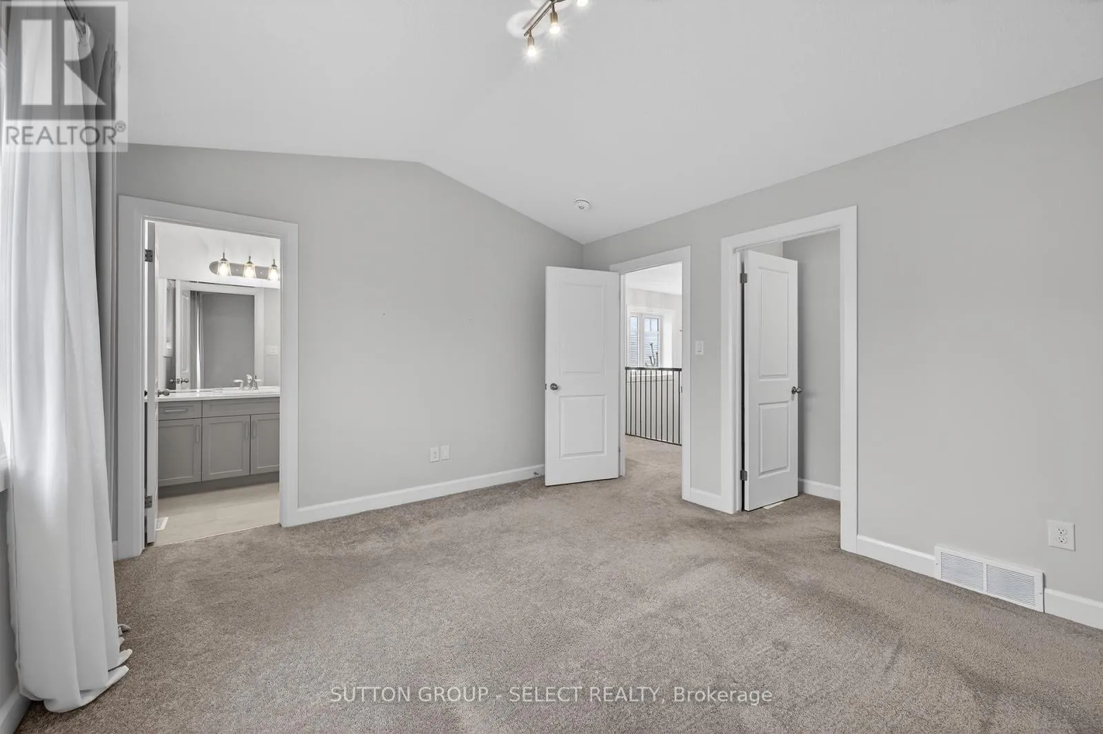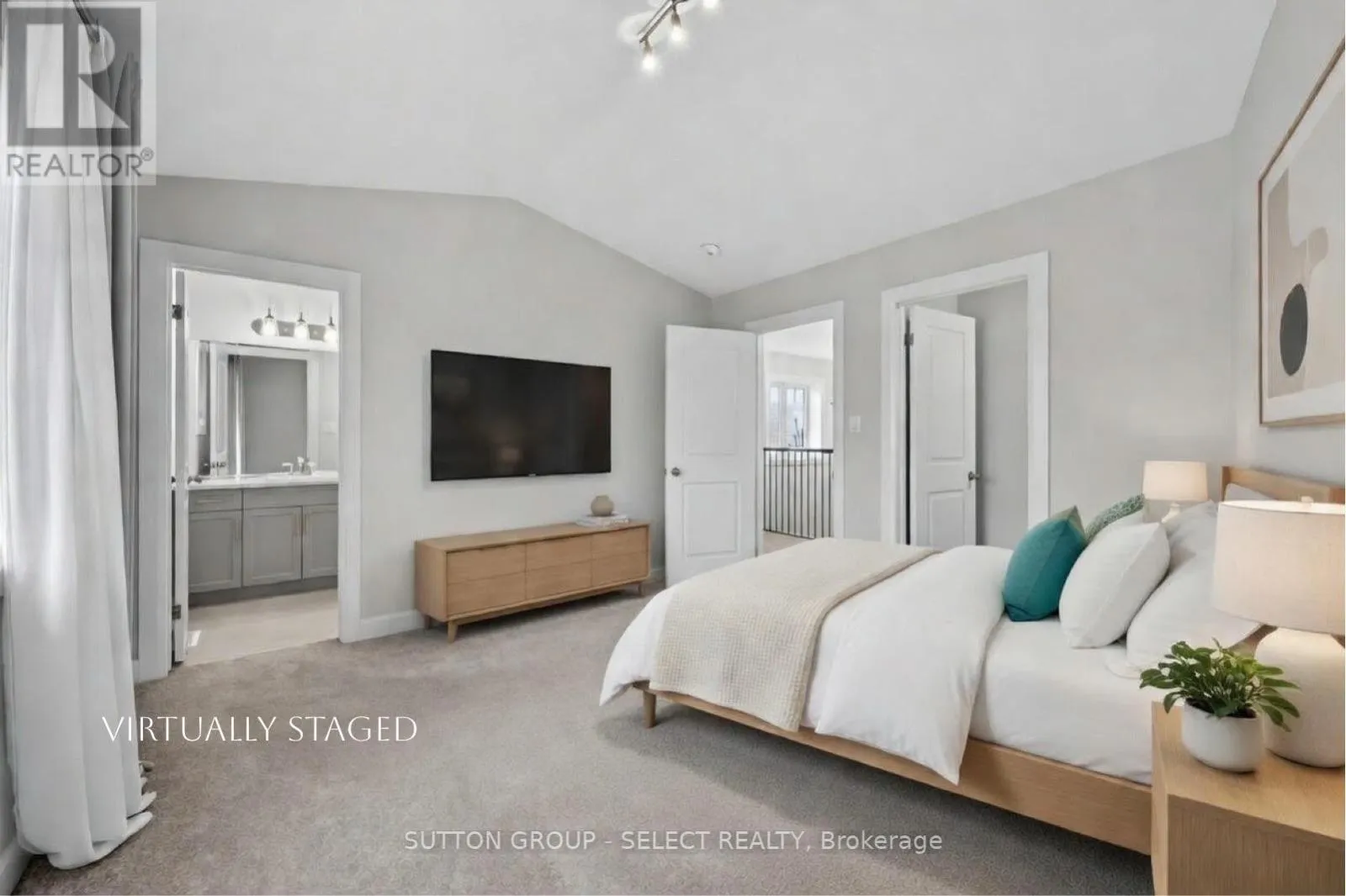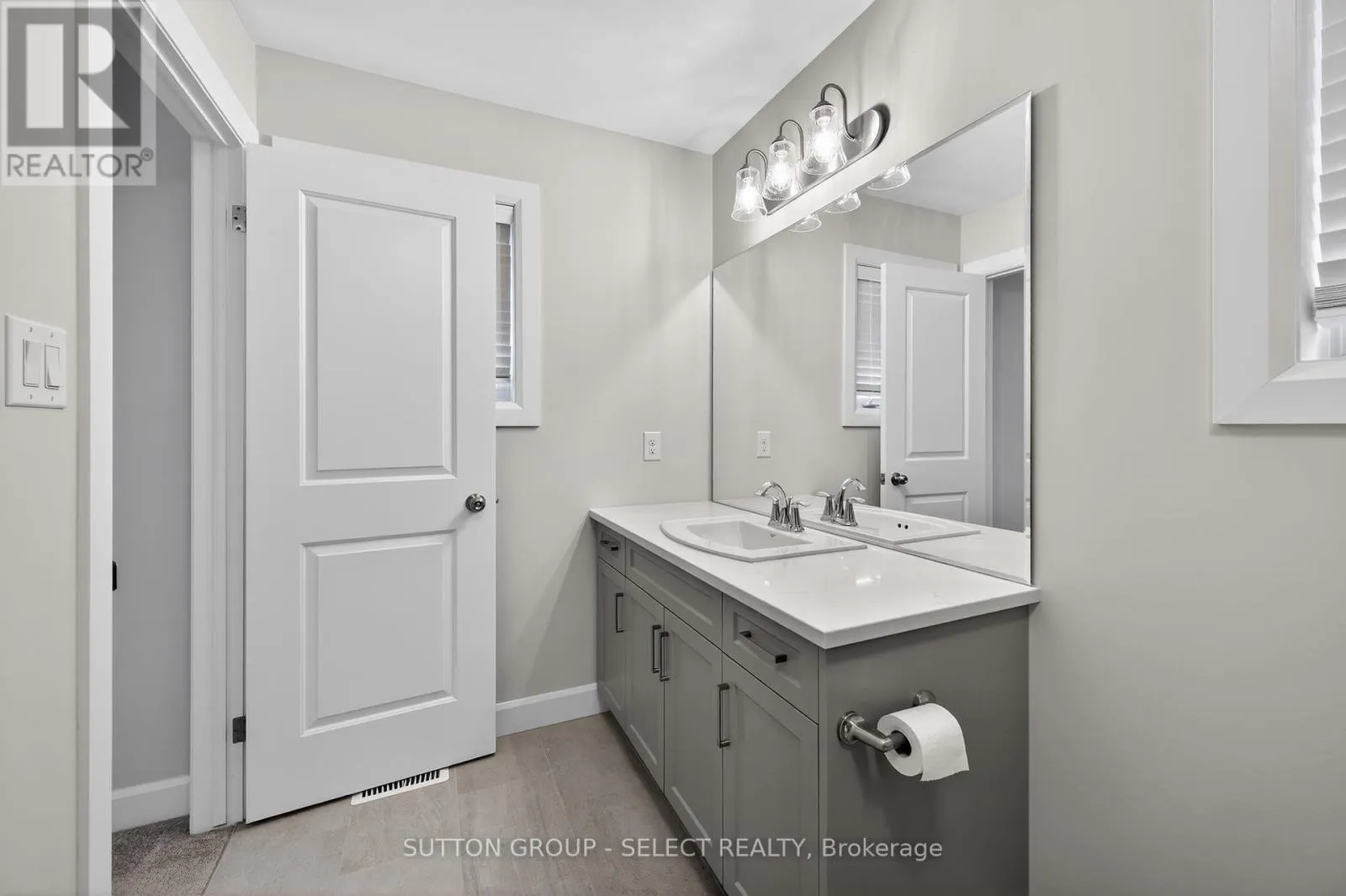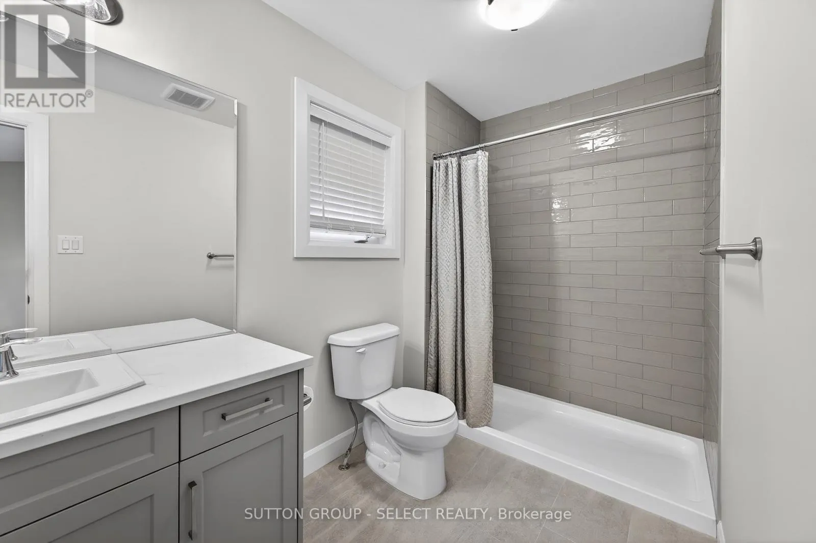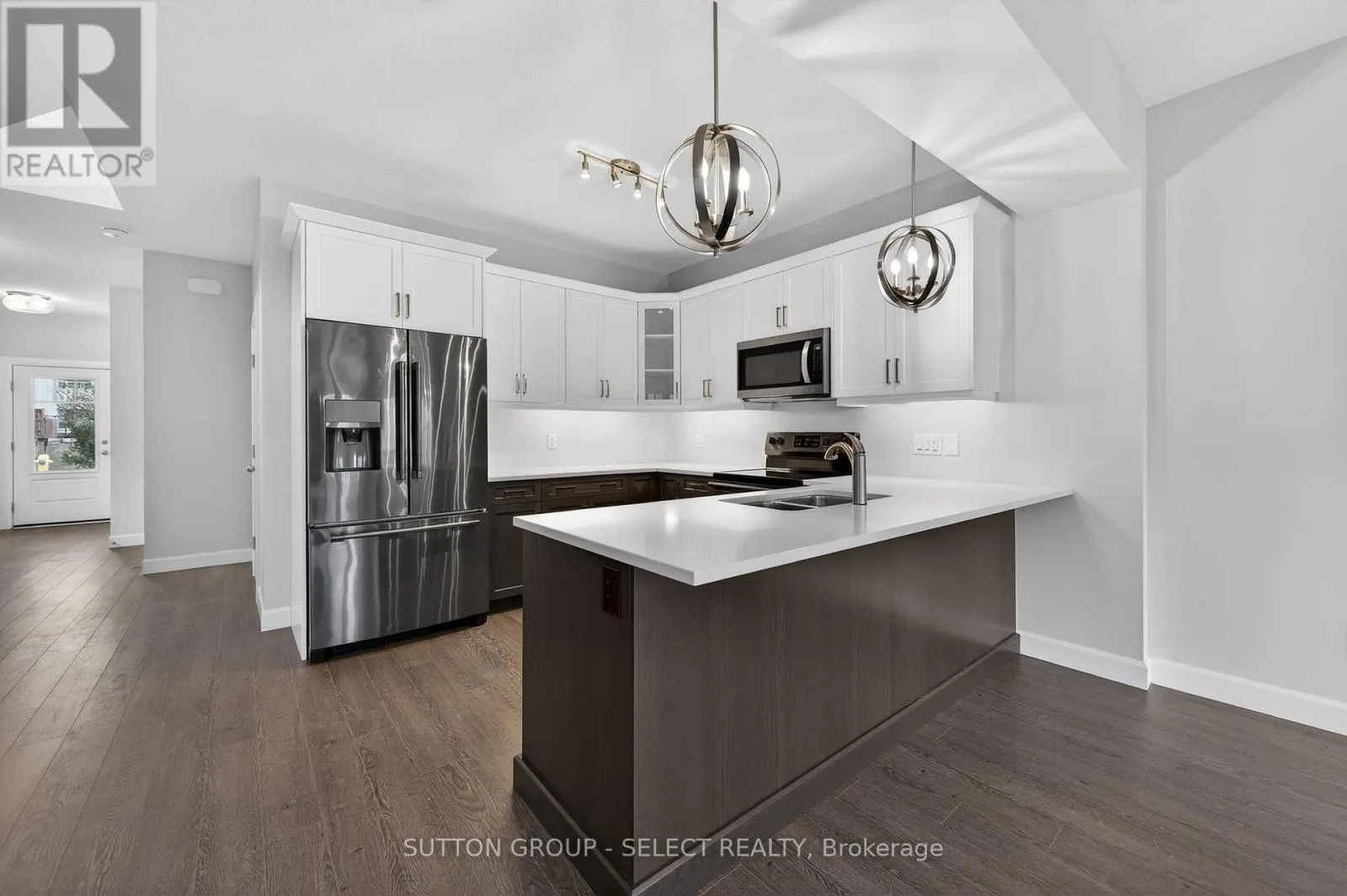 Cross Streets: Fanshawe Pk Rd E & Cedarhollow Blvd. ** Directions: East on Fanshawe Park Rd East, South on Cedarhollow Blvd, turn on Guiness Way. Welcome home at 29-600 Guiness Way in sought after Cedar Hollow! This 2021 Auburn Built property at the peak of the elevation in the subdivision is sure to impress. Sleek finishes, contemporary paint tones, and loads of natural sunlight from various large windows throughout. Foyer offers a powder and a front-hall closet. The bright main floor offers a gracious living area, dining space, and eat-in kitchen with contrast dark, charcoal-grey and crisp-white cabinetry, upgraded pendant lighting over the quartz peninsula and surfaces, Black stainless steel appliances and built-in microwave. Step up the modern staircase to a landing with a built-in desk for an easy office space, a common 4pc tiled bath, 3 spacious bedrooms including the Primary suite that offers a deep walk-in closet and a 3pc tiled ensuite. The yard offers a lovely step-down deck for morning coffee in warm weather. Side yard on this corner unit boasts trees that offer privacy and green views. Lower level is yours to create! This beautiful home is close to the new Stoney Creek shopping plaza, trails & access to Thames Valley Parkway, Fanshawe Conservation area, excellent schools, and fantastic access to the 401. Quiet, newer subdivision in a excellent location. Images of rooms with furniture & decor are virtually staged. (id:27476)