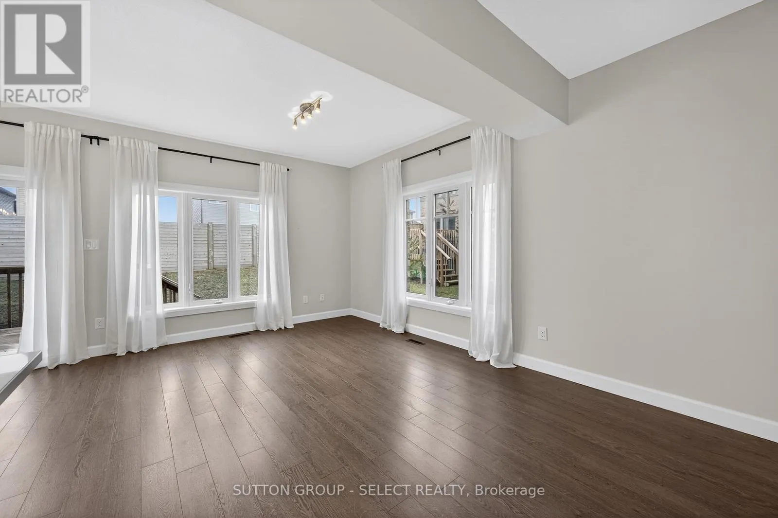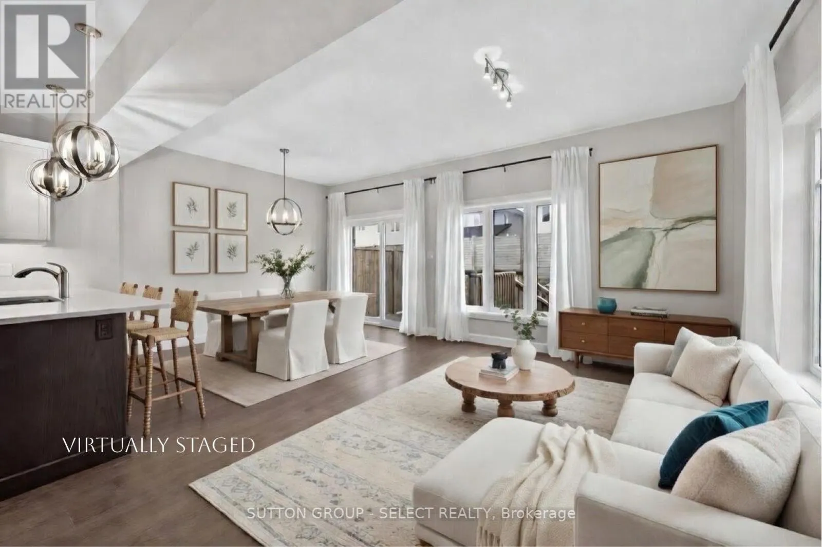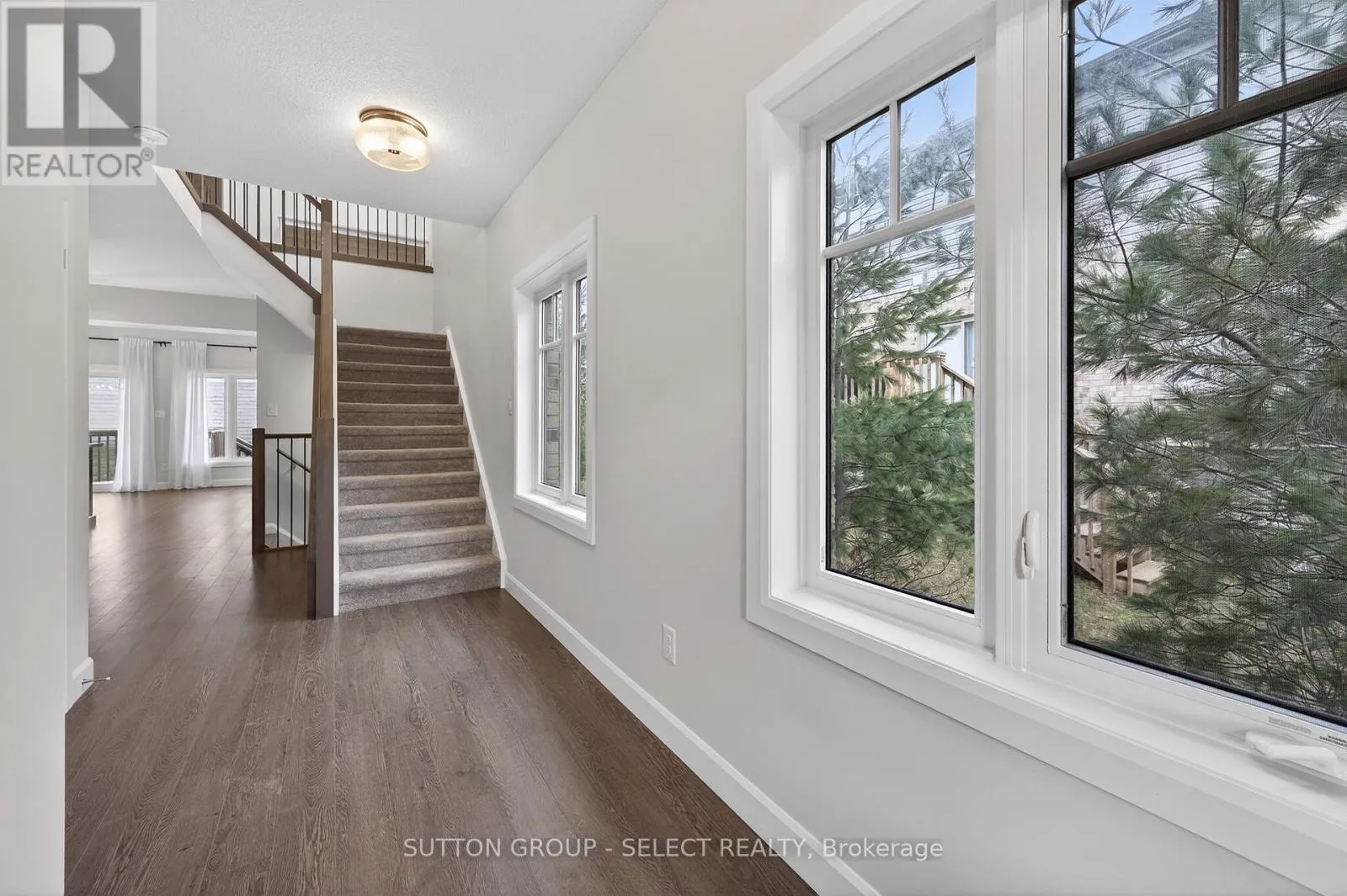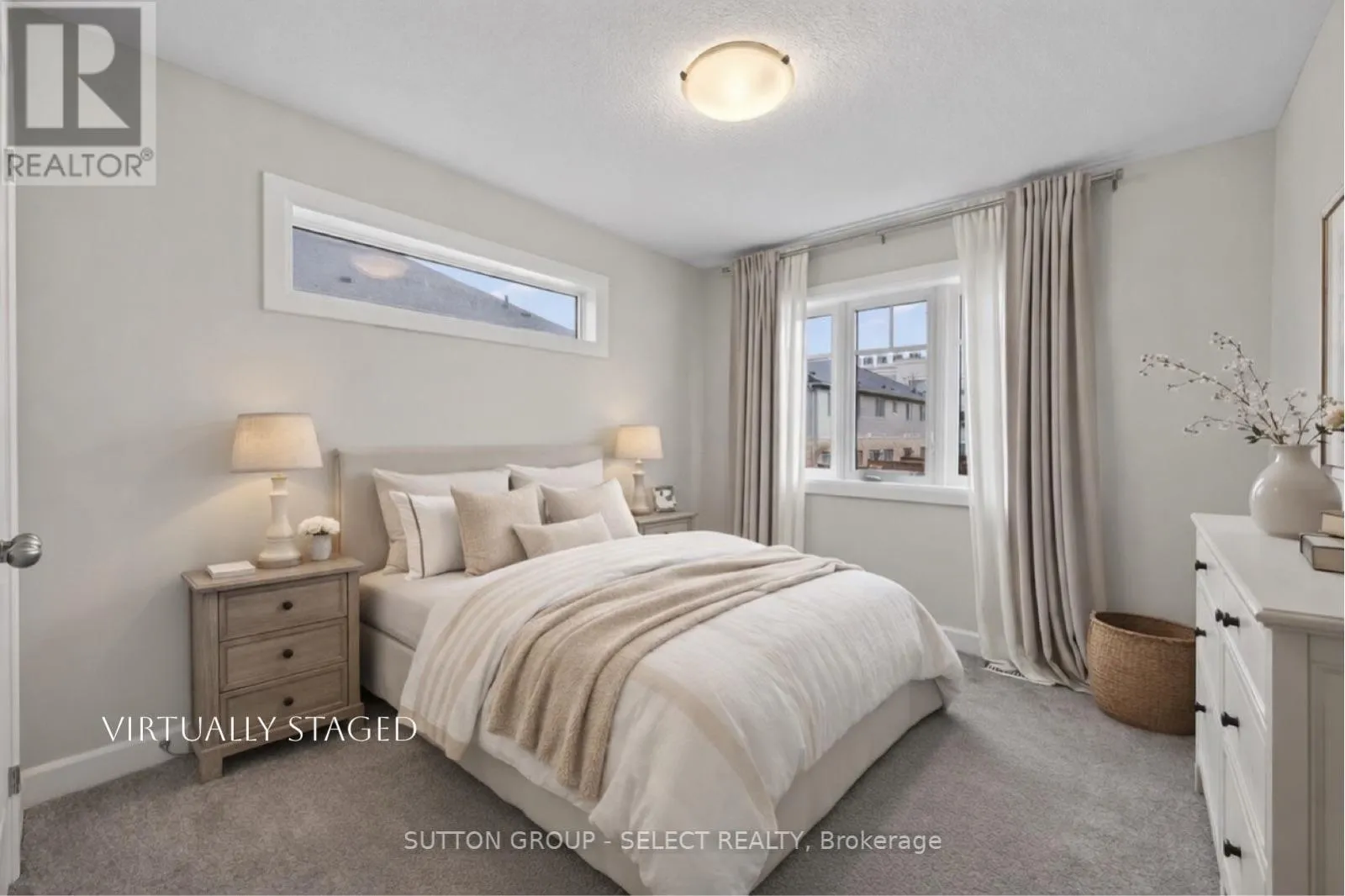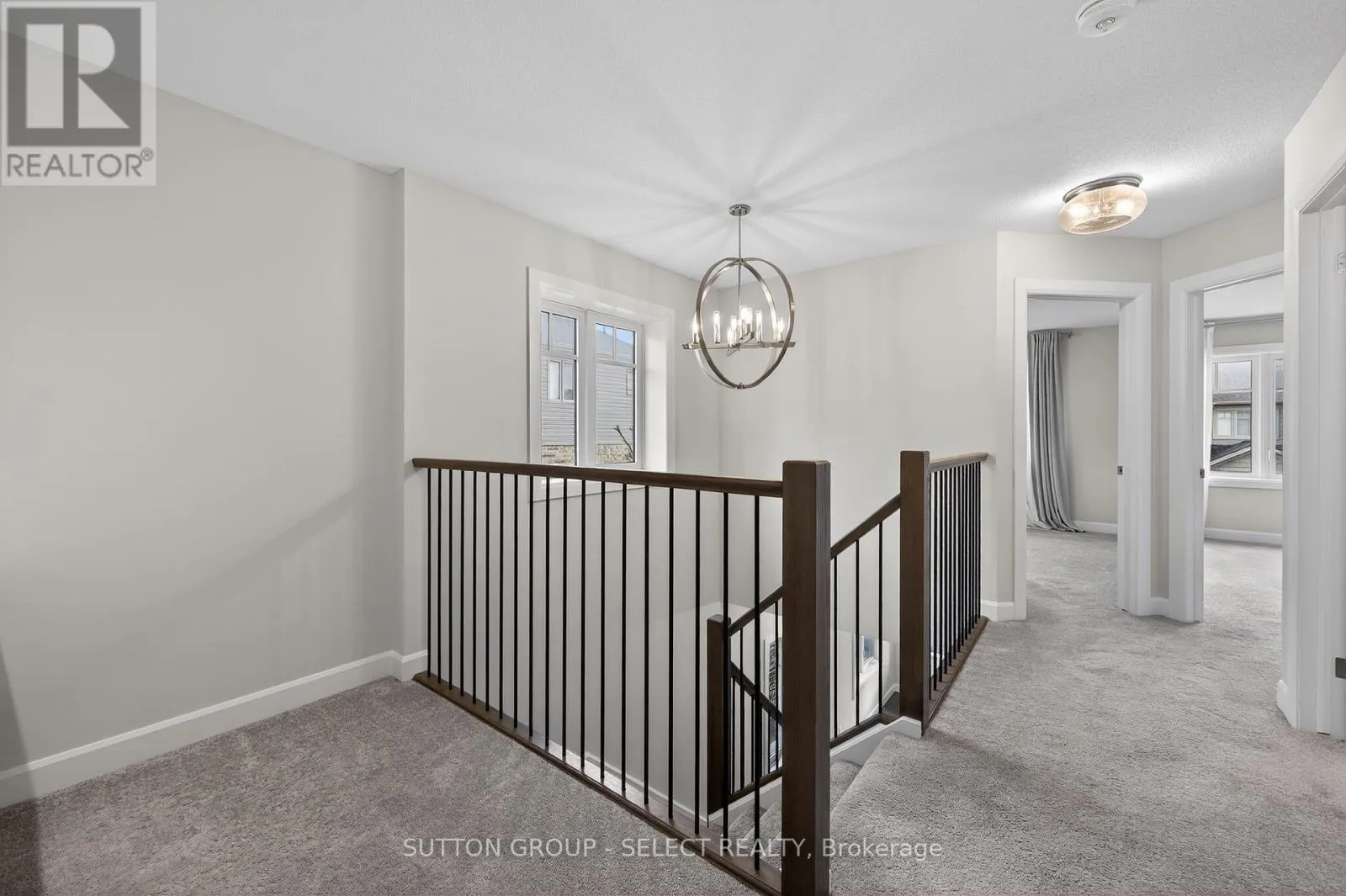 Cross Streets: Fanshawe Pk Rd E & Cedarhollow Blvd. ** Directions: East on Fanshawe Park Rd East, South on Cedarhollow Blvd, turn on Guiness Way. Welcome home at 29-600 Guiness Way in sought after Cedar Hollow! This 2021 Auburn Built property at the peak of the elevation in the subdivision is sure to impress. Sleek finishes, contemporary paint tones, and loads of natural sunlight from various large windows throughout. Foyer offers a powder and a front-hall closet. The bright main floor offers a gracious living area, dining space, and eat-in kitchen with contrast dark, charcoal-grey and crisp-white cabinetry, upgraded pendant lighting over the quartz peninsula and surfaces, Black stainless steel appliances and built-in microwave. Step up the modern staircase to a landing with a built-in desk for an easy office space, a common 4pc tiled bath, 3 spacious bedrooms including the Primary suite that offers a deep walk-in closet and a 3pc tiled ensuite. The yard offers a lovely step-down deck for morning coffee in warm weather. Side yard on this corner unit boasts trees that offer privacy and green views. Lower level is yours to create! This beautiful home is close to the new Stoney Creek shopping plaza, trails & access to Thames Valley Parkway, Fanshawe Conservation area, excellent schools, and fantastic access to the 401. Quiet, newer subdivision in a excellent location. Images of rooms with furniture & decor are virtually staged. (id:27476)
