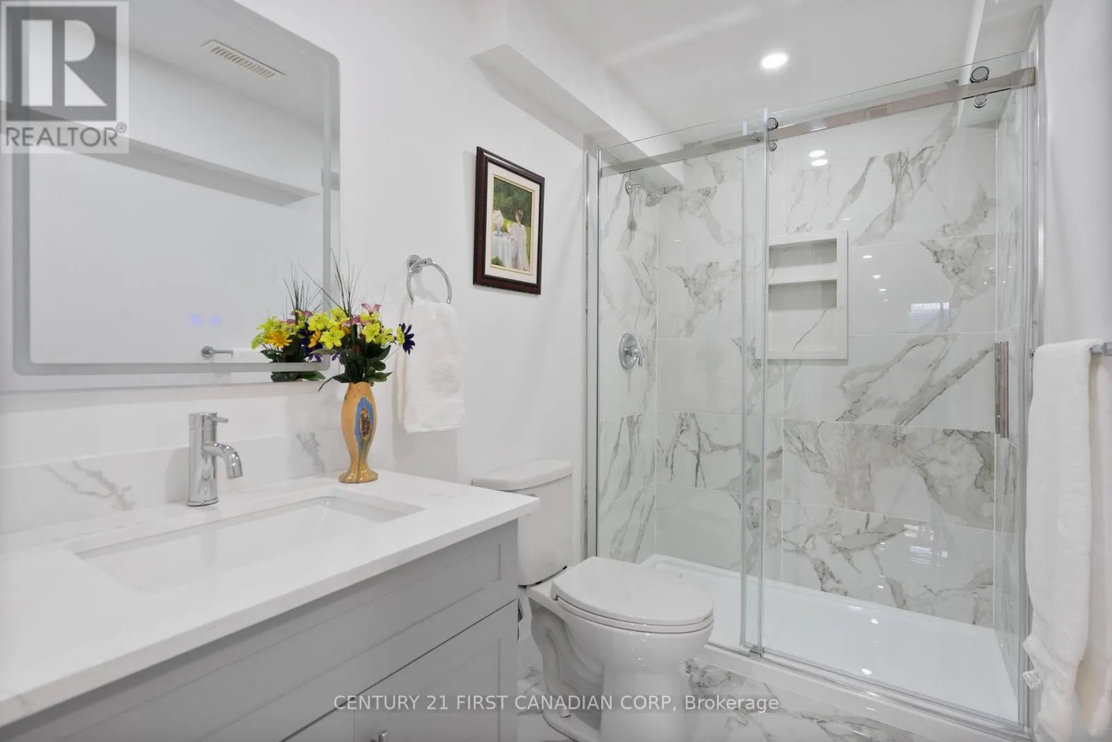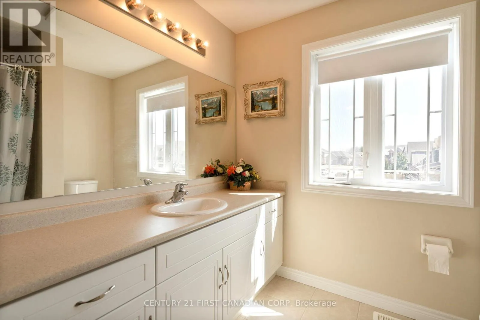 Blackacres/Aldersbrook Nice 2 storey home walk distance to Walmart shopping Centre. Approx. 2600 sqft living space (1859 sqft above grade + 750 sqft belowgrade).5bedrooms (4+1) and 3.5 bathrooms. Open concept main level with 9ft ceiling; Bright living room and dining room with hardwoodfloor.Gorgeouskitchen, breafast room, and laundry with ceramic tile floor. The second level has 4 spacious bedrooms. Master bedroom with 4pieceensuitebathroom. Other three bedrooms share another 4 piece bath. Fully finished basement with big windows has a nice family room,abedroom and amodern full bathroom with glass shower. Fully fenced back yard has a pave stone patio. Nice landscaping for front andbackyard. 25 years longlife roofing shingles. Bus routes directly to Masonville Mall and Western University. (id:27476)