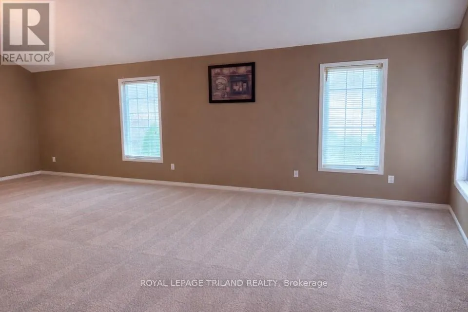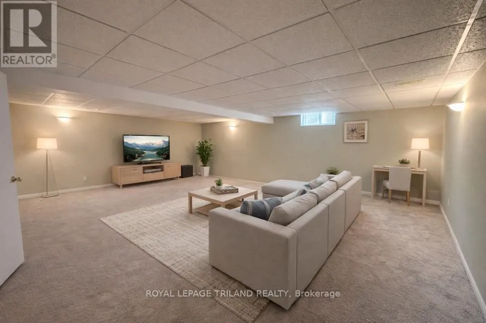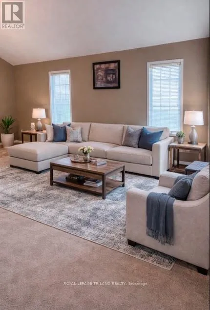 Cross Streets: Capulet Lane or Whetherfield St. ** Directions: Oxford St. W. turn north on Capulet Lane then west on Silversmith. Recently renovated the past few weeks. Spacious one-floor brick ranch in desirable Oakridge Crossing in west London. Offering 1,579 sq. ft. on the main level, this home features vaulted ceilings and an open-concept living and dining area. The kitchen includes a raised dishwasher for easy access and sliding doors leading to a 27' x 14' deck overlooking a private, fully fenced yard. Hardwood flooring enhances the hallway, and main-floor laundry provides convenient inside entry from the two-car garage. There are two bedrooms, including a generous primary suite with double closets and a private ensuite featuring a shower and deep soaker tub. The lower level adds impressive extra space with a large rec-room, games room, a full 3-piece bath with a walk-in shower, and abundant storage including a fruit cellar. Pre-wired for a security system. This home is linked only by one wall in the garage area. A great condo alternative-no condo fees. Close to parks, shopping, and West London amenities. (id:27476)