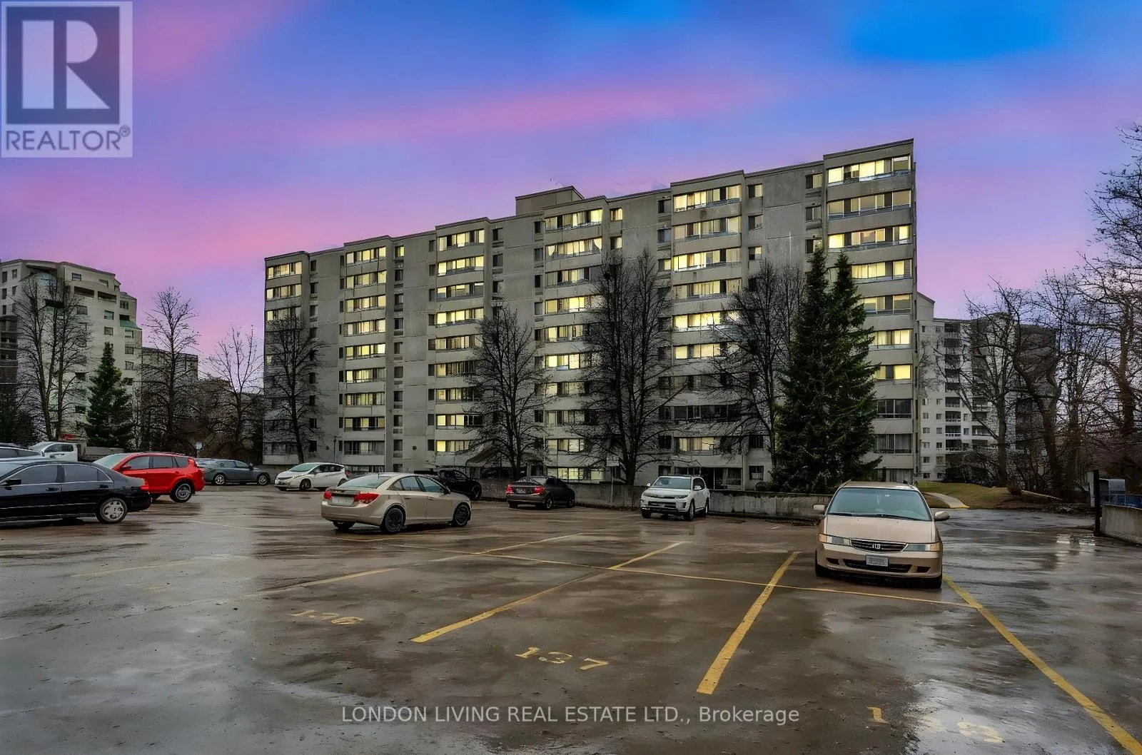 Cross Streets: BEAVERBROOK AVE/PROUDFOOT LN. ** Directions: HEAD WEST ON OXFORD ST W, TURN LEFT ONTO PROUDFOOT LN, PROPERTYON THE LEFT. Premium location. Third floor immaculate one bedroom condo with spectacular view of gorgeous sunsets! Entire west wall of windows is truly breath taking! You will be impressed that you can enjoy amenities with a view like this at this price! Windows open to allow gentle breezes! Neutral decor throughout this very spacious open concept unit. Comes with good storage and large rooms. Note in unit laundry. Lots of open parking and underground is at no extra charge based on availability. A great building in great condition and in a superb location with bus to UWO or downtown at the door! Party/activity room. Note that water is included in very reasonable condo fees. Five minutes to downtown and take minutes to Cherry Hill Mall. Excellent value here! (id:27476)