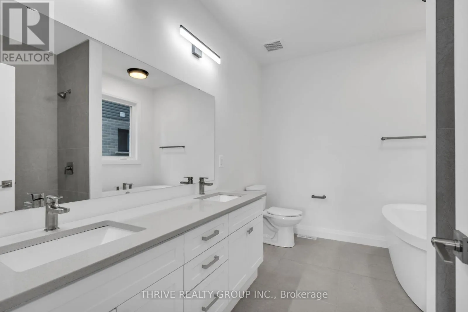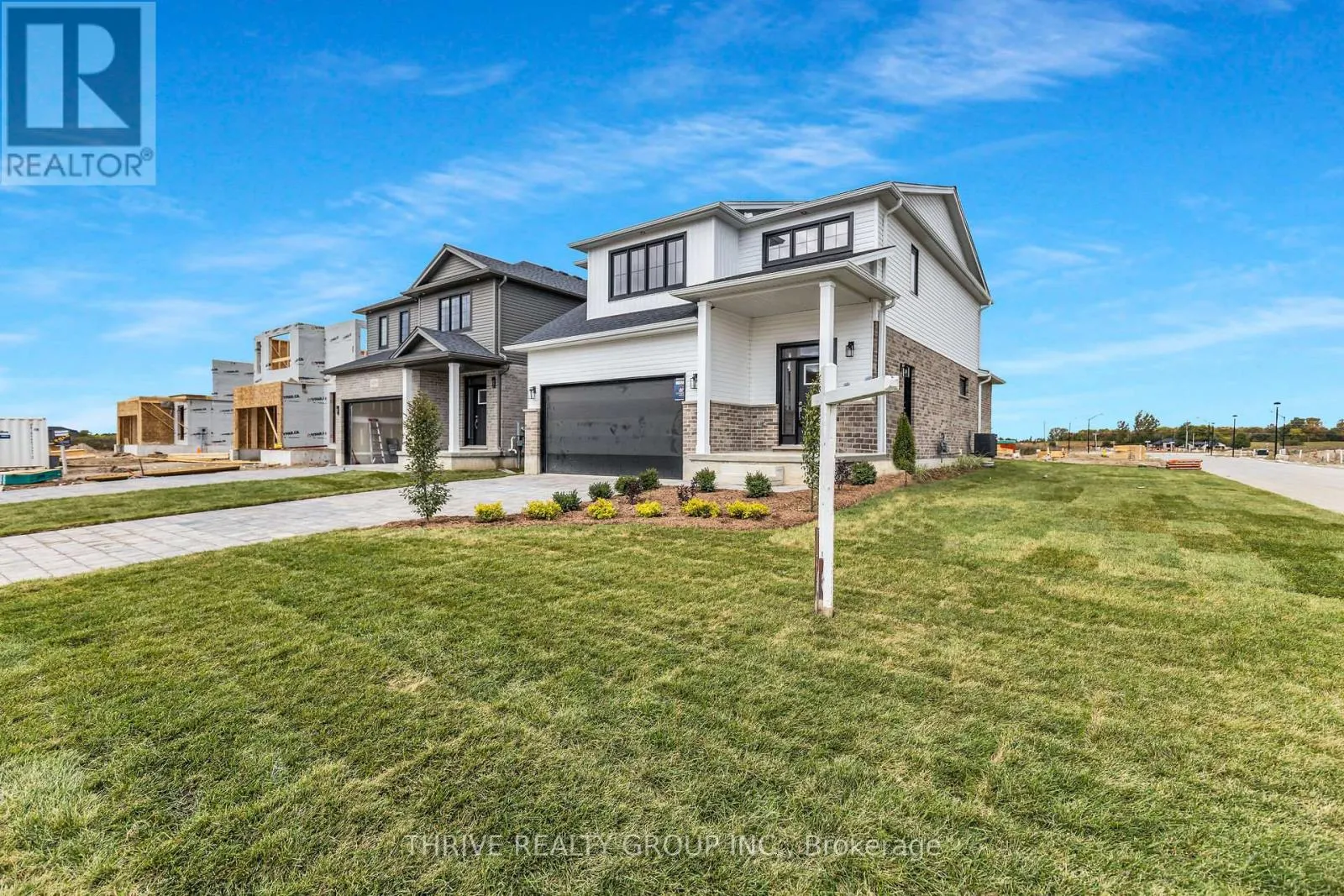 Sunningdale/Hyde Park Rd A must see. Foxwood Homes presents the Berkeley Model with 5-bedrooms, 3.5 bathrooms including two ensuite bathrooms, separate side entrance and MORE! Offering approximately 2211 square feet above grade, two-car double garage, crisp designer finishes throughout and a terrific open concept layout, this is the PERFECT family home in North London's popular Gate of Hyde Park. Desirable finish selections including modern colour tones, engineered hardwood, tiled bathrooms, and more. The main floor offers a living room, custom kitchen with island and quartz countertops, dining area, main floor laundry, plus an expansive primary bedroom suite with luxury 5-piece ensuite/walk-in closet. Head upstairs to your loft family room, four additional bedrooms, plus two bathrooms including an extra ensuite. Ideal for investors or multi-generational families as this home offers a second side entrance leading to the basement. This home is under construction with a November or December 2026 move-in available. Incredible value along with a premium location in Northwest London which is steps to two new school sites, shopping, walking trails and more. Welcome Home to Gates of Hyde Park! (id:27476)