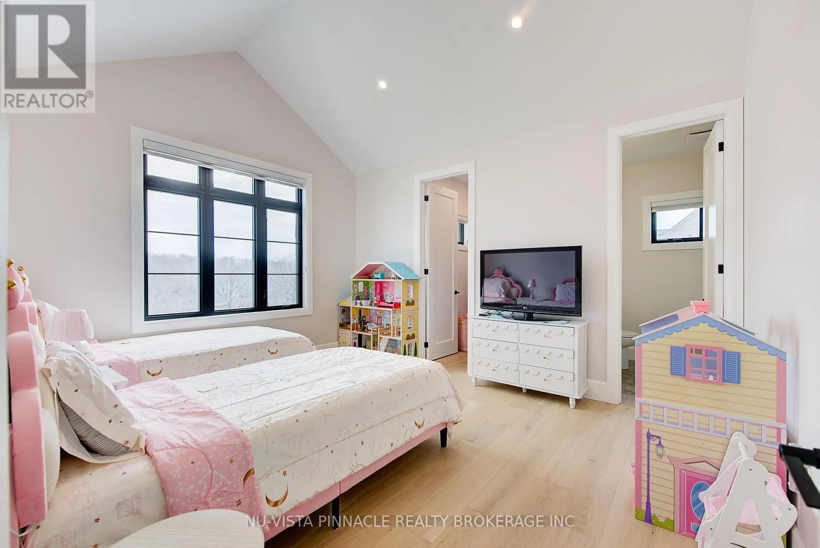 DRIVE ON SUNNINGDALE RD W TOWARDS WONDERLAND RD, TURN LEFT ON ROBBIES WAY, TURN LEFT ON CREEKVIEW CHASE. Fall in love with this exceptional, one-of-a-kind home in the highly sought-after Sunningdale Golf and Country, where luxury and craftsmanship come together seamlessly.This brand-new executive two-storey offers approx. 3,801 sq. ft. above grade, with the option to finish the basement, and is loaded with premium upgrades. The main floor features 10 ft ceilings, a grand entry, and an open-concept great room with a stunning wall of windows and fireplace, filling the home with natural light.The designer kitchen showcases ceiling-height custom cabinetry, quartz countertops, and a separate spice kitchen with deck access. Thoughtful details include vertical shelving above the fridge, pot drawer with hidden lid organizer, utensil pull-out, oversized island with mixer lift, and pull-out shelving throughout.All cabinetry is custom-built by Mennonite craftsmen using solid wood. The main floor includes a full bath and a flexible den/bedroom. Upstairs offers 4 spacious bedrooms, each with its own ensuite, plus a bonus office/playroom. The primary suite features tray ceilings, a balcony, his-and-hers walk-in closets, and a spa-inspired 5-piece ensuite.In total: 7 bedrooms, 6 full bathrooms, and a dedicated office.Enjoy a landscaped backyard with a covered deck, perfect for entertaining. Triple car garage and basement with separate side entrance add value and future potential. Close to shopping, parks, trails, schools, and all amenities.Welcome home to luxury and comfort. (id:27476)