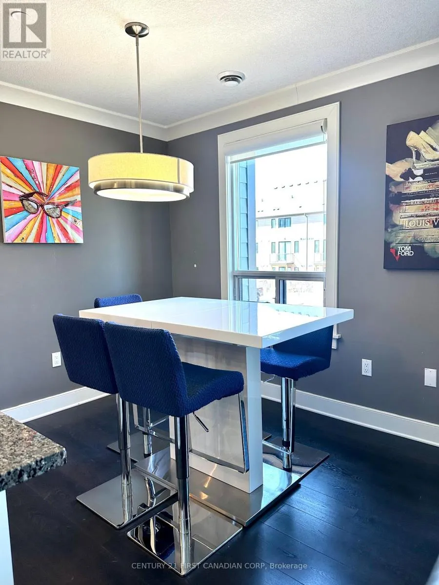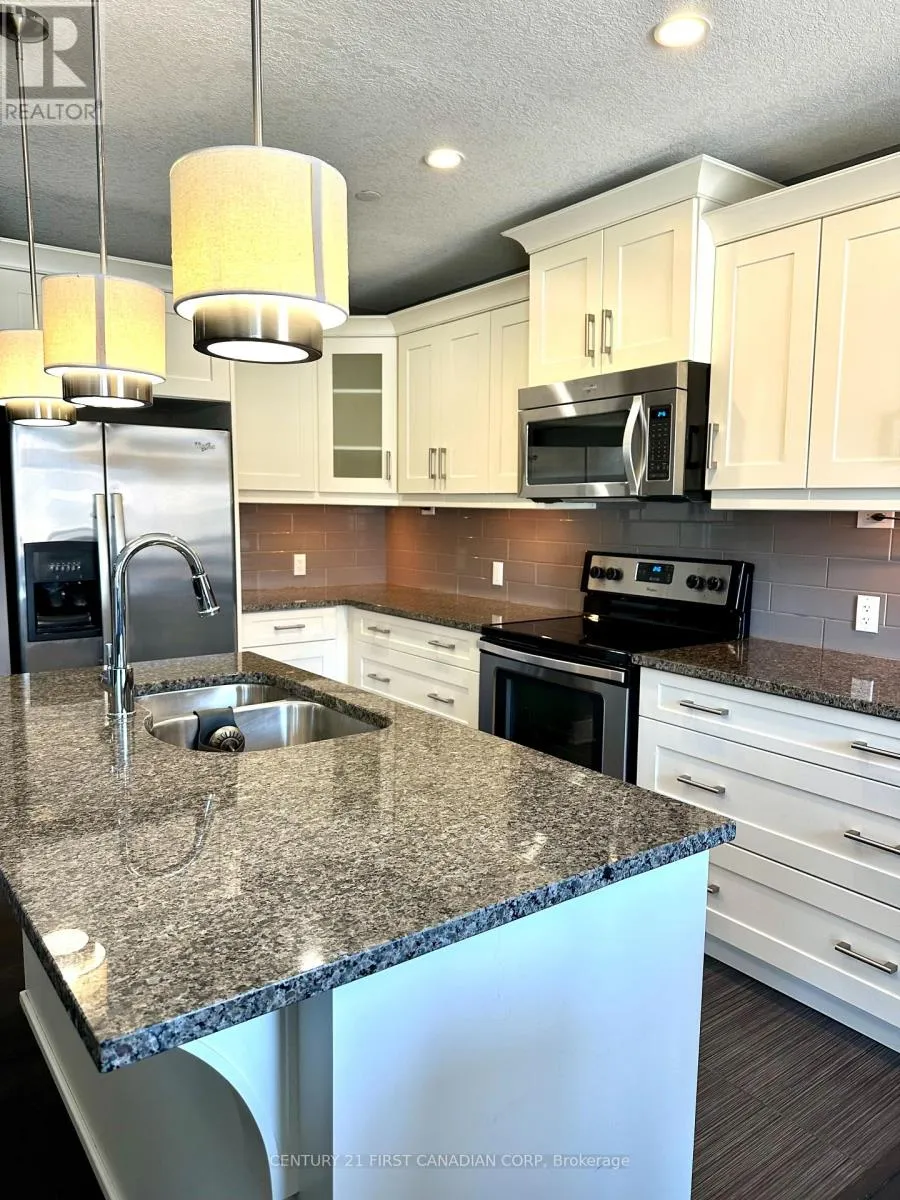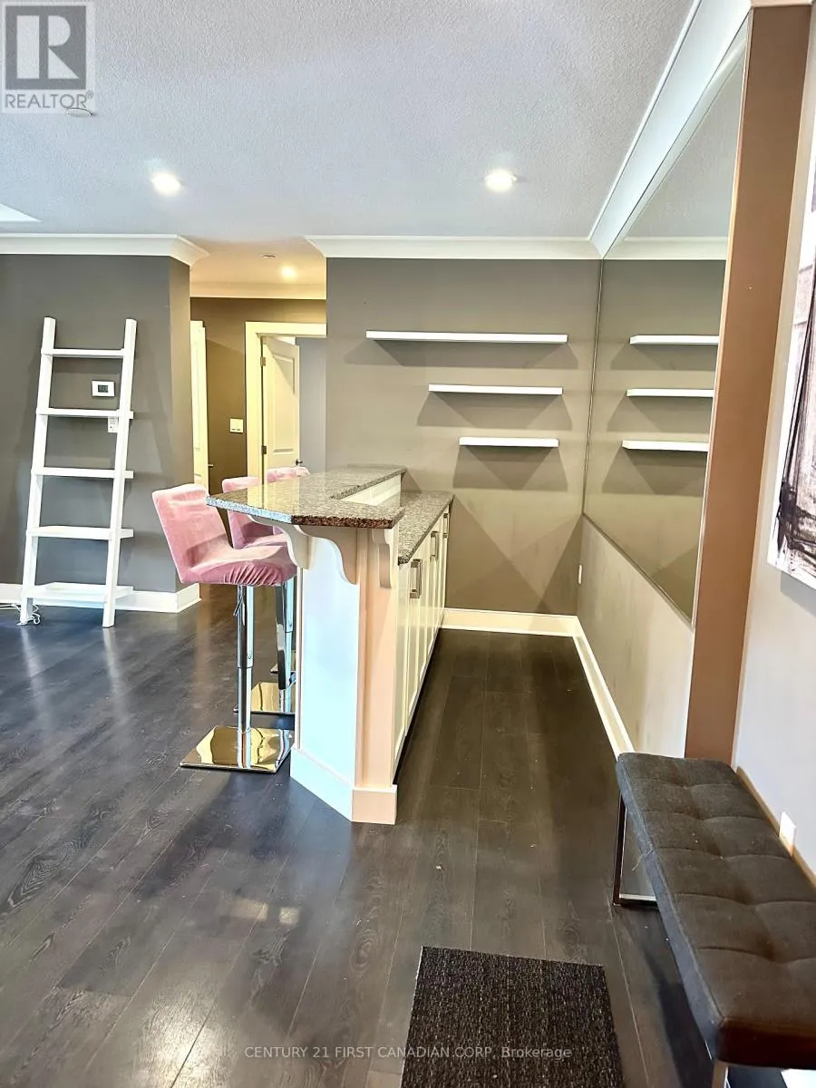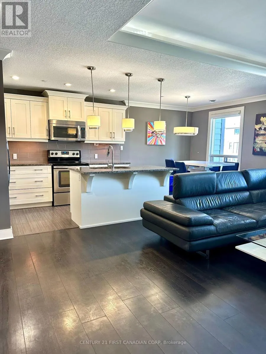 Cross Streets: BEAVERBROOK & RIVERSIDE. ** Directions: DRIVE ON BEAVERBROOK RD THEN TAKE A LEFT ON RIVERSIDE ROAD. Welcome to Nuvo at Parc Centre. An exceptional opportunity to lease a beautifully furnished 2 bedroom, 2 bathroom suite at 320 Sugarcreek Trail. This spacious, open concept unit offers a refined blend of comfort and style, featuring luxury vinyl plank flooring, tray ceilings with pot lighting, a striking stone feature wall with electric fireplace, and a custom built bar, perfect for entertaining. The kitchen is both functional and inviting, complete with granite countertops, stainless steel appliances, and a large island with breakfast bar seating, ideal for everyday living or effortless entertaining. The living and dining areas flow seamlessly to a private covered balcony, offering the perfect space to unwind. The primary bedroom features a walk-in closet and a well appointed ensuite with glass shower, while the second bedroom is generously sized and complemented by a full second bathroom. In-suite laundry adds to everyday convenience. Enjoy heat and water included, exclusive underground parking, secure entry, exclusive locker storage, and access to a well maintained building with modern common areas and bike/storage facilities. Ideally located in sought after Northwest London, just minutes to Western University, University Hospital, and downtown London. Conveniently close to Costco, Cherryhill Village Mall, grocery stores, restaurants, and everyday amenities. Surrounded by parks, scenic walking trails, and green spaces, with easy access to public transit and major routes for effortless commuting. Perfect for professionals, medical residents, or university affiliates seeking a turnkey, low-maintenance lifestyle. A rare lease opportunity in a quiet, well managed building. Simply move in and enjoy. (id:27476)