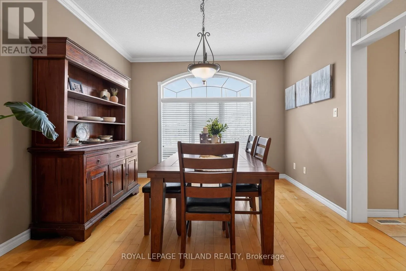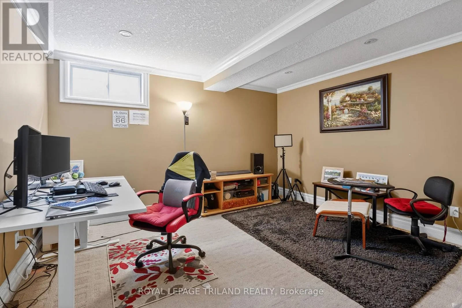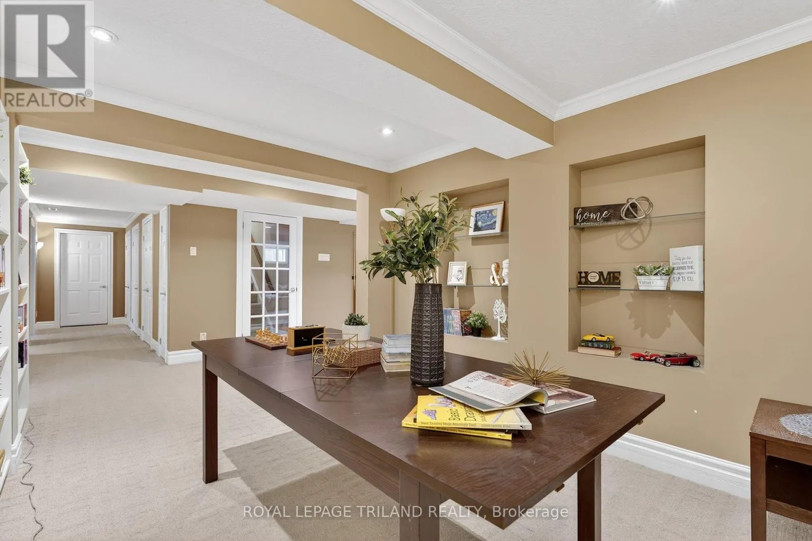 Cross Streets: Fitzwilliam Blvd. ** Directions: From Hyde park road north bound turn left to Fitzwilliam Blvd and turn right to Manchester. Welcome to this exceptional bungalow in the highly sought-after Hunt Club community-where refined living meets functional design. This beautifully maintained home offers 3 spacious bedrooms on the main level, 2 additional bedroom on lower level and 3 full bathrooms, delivering both comfort and flexibility for growing or multi-generational families. Other features include 9 & 12 ceilings on the main floor, beautiful hardwood and ceramic flooring and crown mouldings throughout the main and lower level. Step inside to a grand 12-foot ceiling foyer that immediately creates a sense of scale and elegance. The formal dining room sits just off the entrance-perfect for hosting and entertaining. The updated, high-end open-concept kitchen seamlessly connects to both the dining area and a bright dinette, with direct access to the patio deck-ideal for indoor-outdoor living and summer gatherings. The inviting living room, anchored by a gas fireplace, offers a warm yet upscale ambiance for everyday living. The fully finished lower level significantly expands the home's value proposition, featuring 2 additional bedrooms, a large theatre like family and entertainment area with built-in audio unit, a kitchenette, and a versatile bonus room-perfect as a home gym, office, or flex space. A separate stairway with direct access to the garage enhances privacy and functionality, making it an excellent setup for extended family or potential in-law living. Enjoy a beautifully landscaped backyard designed for relaxation and entertaining-perfect for BBQs and outdoor enjoyment plus well maintained Hot tub. 50yr roof shingles (2016), updated kitchen(2022), New flooring for 2nd, 3rd bedroom on Main (2022), Refrigerator (2019), Washer(2024), Dishwasher(2025) This is a rare opportunity to own a turnkey, elegant home in one of the city's most desirable neighborhoods. (id:27476)