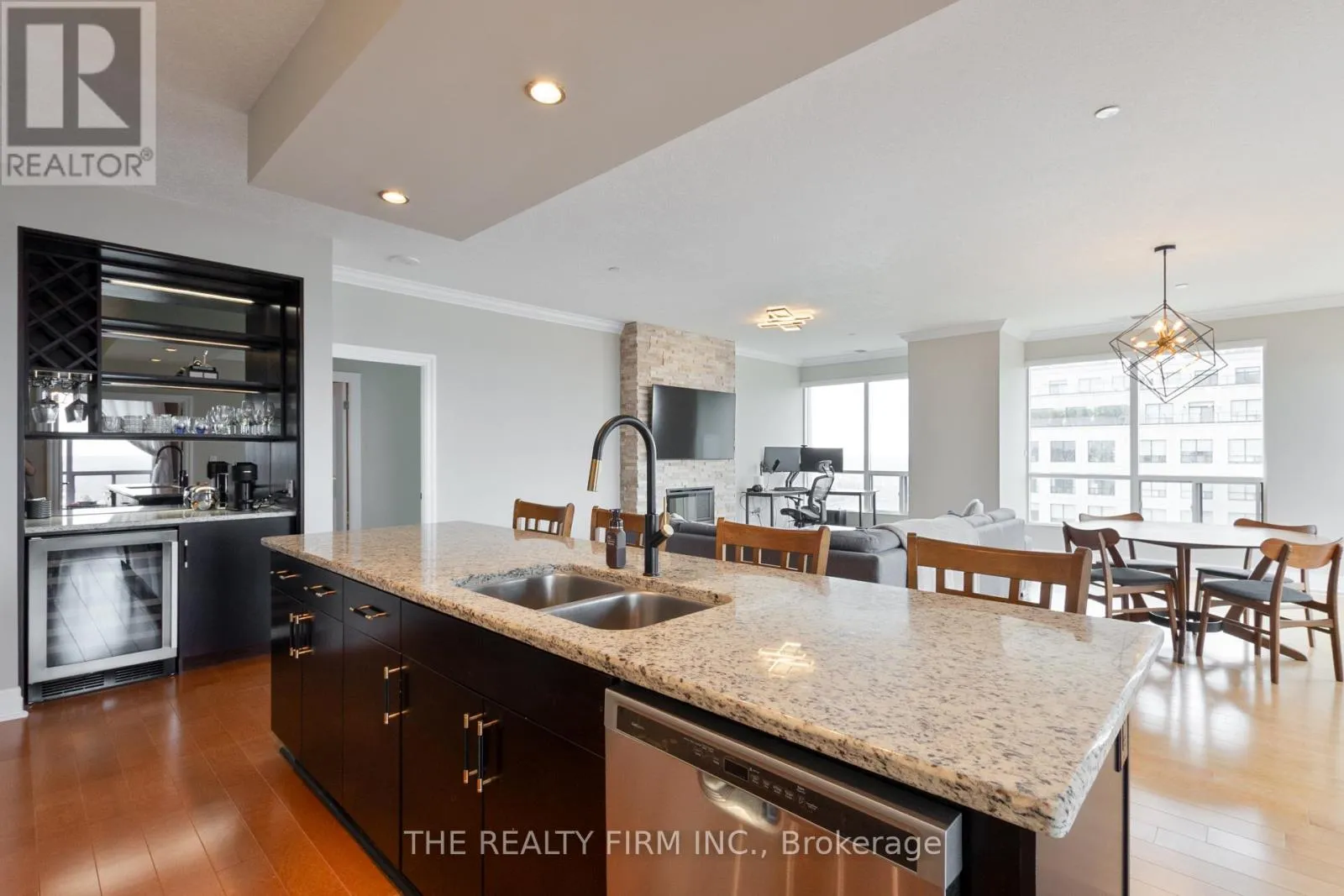 Cross Streets: Sunningdale Rd E & Villagewalk Blvd. ** Directions: Travel north on Richmond Street toward the Masonville area. Turn left (west) onto Fanshawe Park Road West. Elevate your lifestyle in this stunning 10th-floor condo, offering sophisticated design and breathtaking panoramic views to the north and west. This beautifully designed 3 bedroom, 2 bathroom condo offers the perfect blend of low-maintenance living and modern luxury. With high ceilings and an open-concept layout, the space is filled with natural light, creating a bright and inviting atmosphere. The upgraded kitchen is a chef's dream, featuring granite countertops, stainless steel appliances, spacious island, and custom built-in bar with beverage fridge--perfect for entertaining. The bright living and dining area showcases a striking stone fireplace, complemented by sliding patio doors leading to your north-facing balcony. The primary suite is a private oasis with a custom walk-in closet and a spa-inspired ensuite, complete with a glass-enclosed tiled shower and separate air-bubble soaker tub, while two additional bright and spacious bedrooms are complemented by a well-appointed 4-piece main bathroom with a glass-enclosed tub and shower. A spacious second bedroom and a versatile den--perfect for a home office or 3rd bedroom. Enjoy the convenience of an in-suite laundry room with storage, tiled foyer and two underground parking spaces plus an indoor storage locker. Enjoy a truly elevated lifestyle with access to premium amenities, including a golf simulator, fitness centre, indoor pool, and private theatre room--offering the perfect balance of relaxation and recreation. Ideally located just minutes from Masonville Mall, with high-end shopping, dining, and everyday conveniences all within reach. Luxury living in a location that delivers. (id:27476)