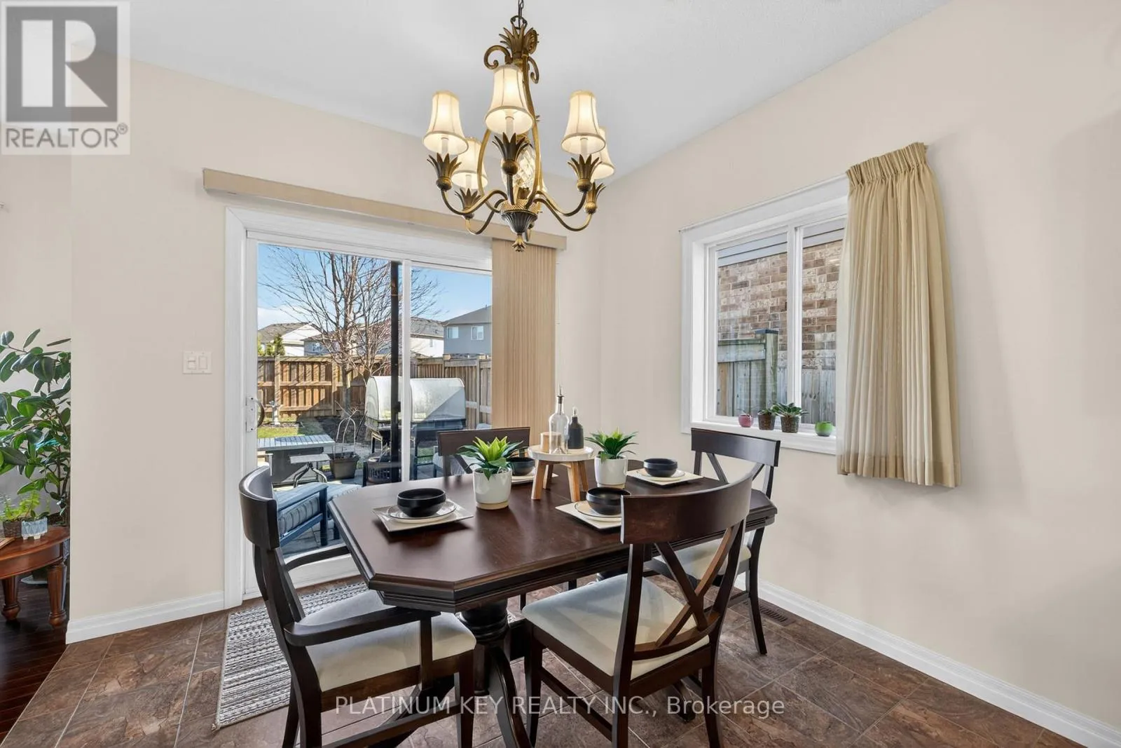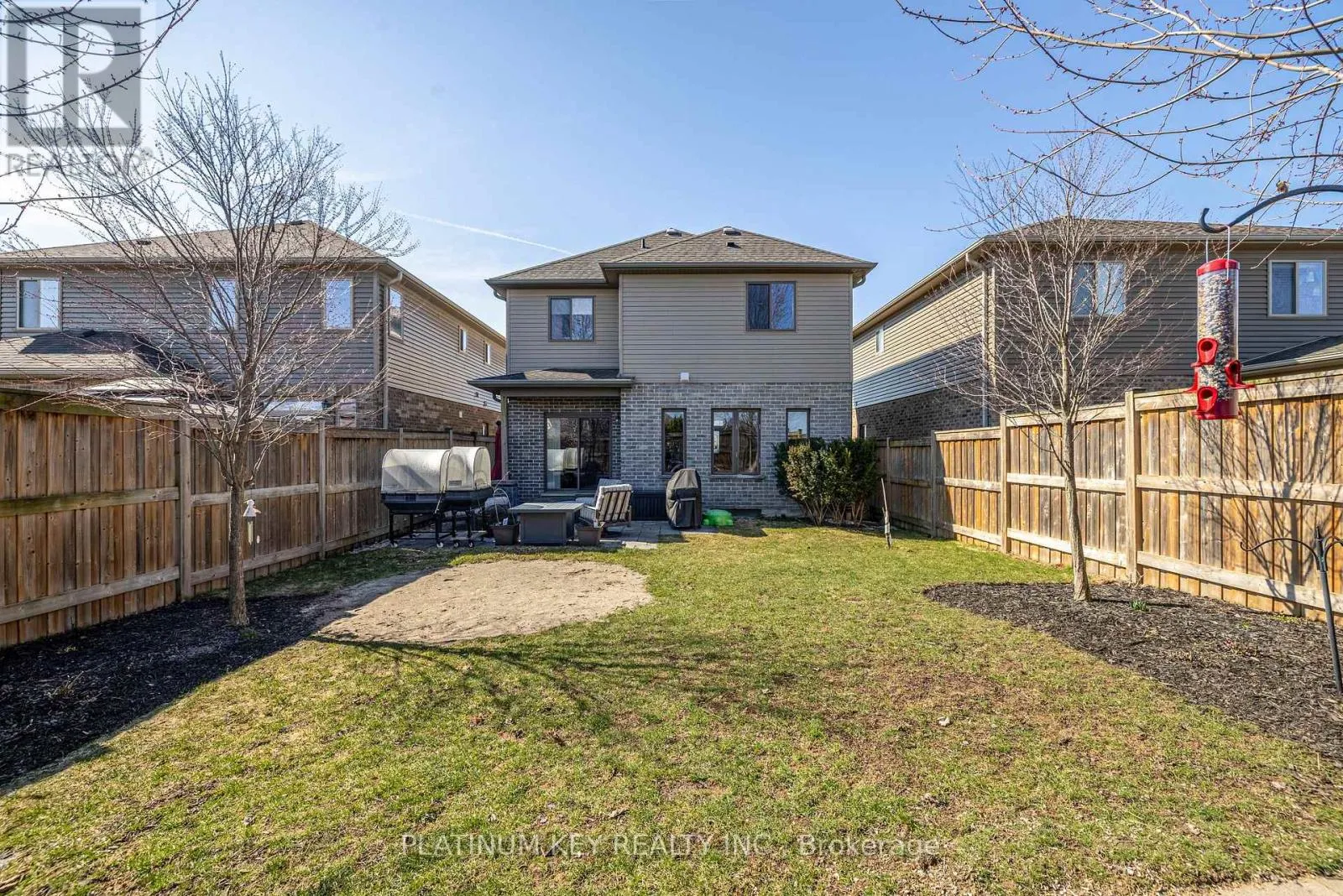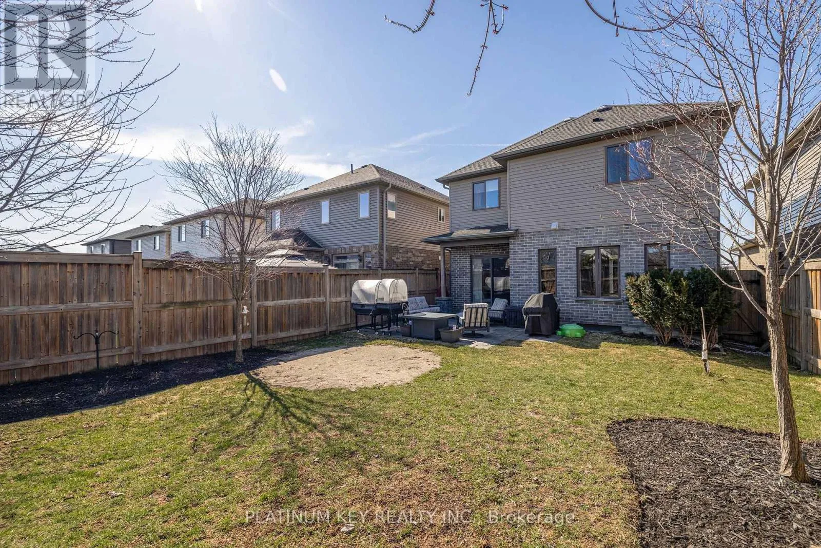 Cross Streets: Dalmagarry Rd/Fanshawe Park Rd W. ** Directions: Tokala Trail is accessed by either Aldersbrook Gate or Dalmagarry Road from Fanshawe Park Road. Welcome to this beautifully maintained two-storey, 3+2 bedroom, 3.5 bath original owner home in desirable North London. Ideally located close to an abundance of amenities - including shopping, restaurants, and St Andre Bessette Catholic SS just steps away - this home is perfect for families and professionals alike. Built in 2013 and lovingly cared for, this home shows pride of ownership throughout. The thoughtfully designed layout features three spacious bedrooms on the upper level, along with a bright and versatile bonus family room at the top of the stairs. Filled with natural light, this inviting space is a fantastic alternative to a traditional basement rec room-ideal as a playroom, lounge, or cozy retreat. The primary bedroom easily accommodates a king-sized bed and includes a private 3-piece ensuite with walk-in shower. The main floor boasts an open-concept design with 9' ceilings and large windows that fill the space with natural light. The kitchen is well-appointed with stainless steel appliances and a generous pantry cabinet, while a convenient 2-piece bathroom & a large walk-in entry hall closet completes the main level. The fully finished basement, (completed with permits in 2022), adds even more living space with a large fourth bedroom, a small fifth bedroom currently used as a walk-in closet but easily converted back if desired, and a 3pc bath with walk-in shower. Additional storage space ensures everything has its place. Outside, enjoy a fully fenced backyard offering good privacy, with no direct neighbouring houses in front or behind. The home also features a 1.5-car garage and a double driveway with parking for two vehicles. Updates within the last 5-6 years include a new front door & both man doors to the garage, A/C unit and dishwasher. This is a great opportunity to own a move-in-ready home in a fantastic location-don't miss it! Sqft & measurements as per floor plans in photos (id:27476)