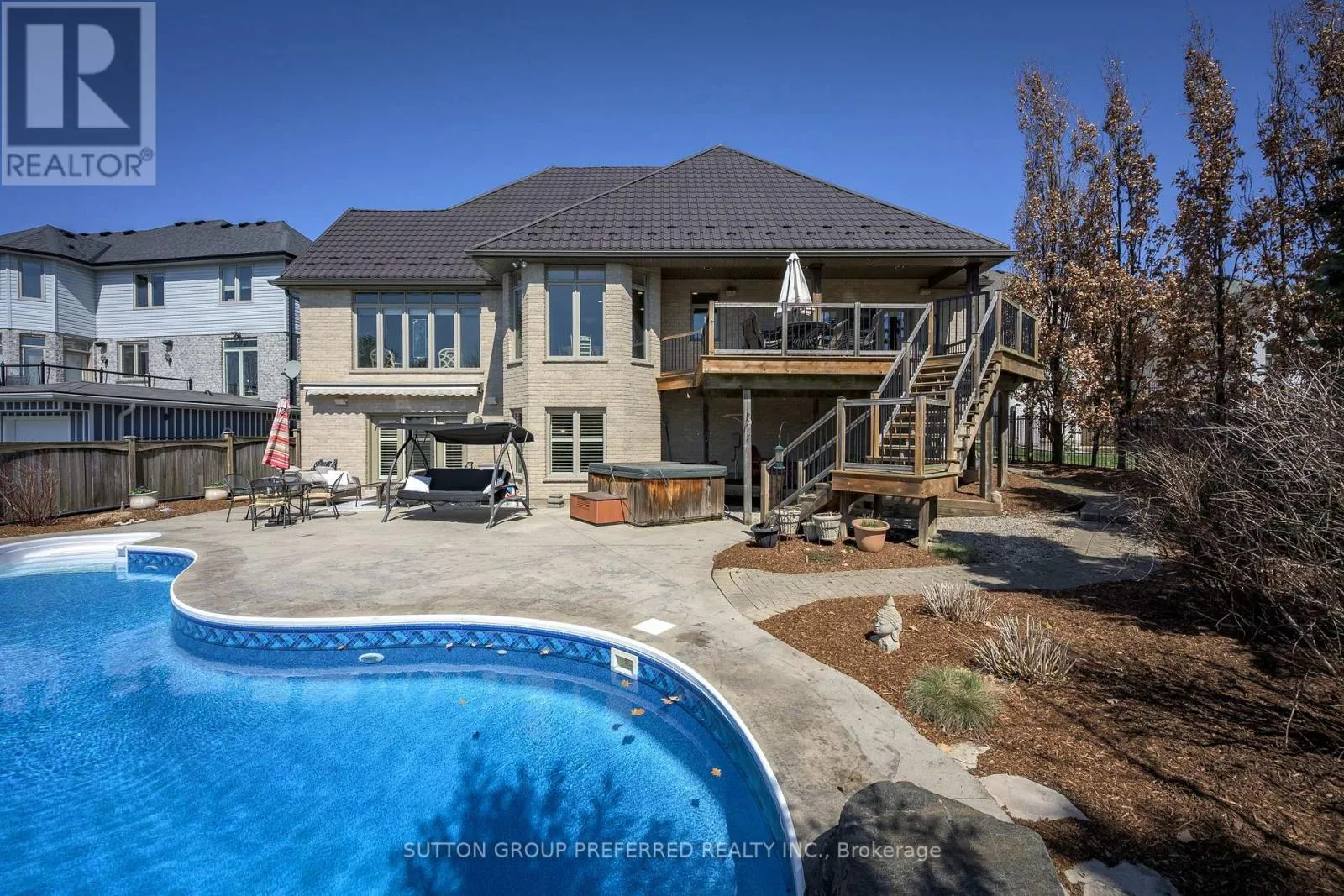 Cross Streets: Pinnacle Parkway to roundabout, west on Plane Tree. ** Directions: VALLEYRUN BLVD. Welcome to this beautiful 'Crown Homes' built walkout ranch in the prestigious Sunningdale Community.Pride of ownership is previlent throughout this orginal owner custom built home!The exterior of this property is 'picture perfect' with extensive gardens and trees, a fabulous private heated pool (new liner 2019), personal putting green (2015), Beachcomber hottub and great outdoor entertaining spaces on the lower patio with a power awning or on the upper deck (rebuild 2019) both with a power awning. The metal roof adds a high end look and was installed in 2018.The interior boasts the perfect floor plan for todays lifestyle whether for a couple or large family! There are two bedrooms on the main floor and three more on the lower level plus four bathrooms! On the main floor leading from the foyer, you have a private den and a formal dining area. Across the rear of the house there is a sunlite Greatroom with catherderal ceiling and gas fireplace open to the gourmet cherry wood kitchen and eating area. The primary suite has a three section French glass door accessing the rear deck, plenty of closet space and a 5 piece ensuite. A peaceful retreat! The lower level maintains the same high trim level as the upper floor. There is huge family room with built-ins and a gas fireplace, wine cellar, gym area with plate glass doors, wet bar and large windows and a triple French glass door to the rear yard. Three more bedrooms, two with a 'Jack and Jill bathroom and another 3 piece bathroom for the third bedroom! This is a home that you have to visit to appreciate all that it has to offer. Check out the Multi Media pictures and video, do a drive-by to appreciate it style and check out the neighbourhood, and then let's book your private showing!' Details of all the upgrades and maintenance can be found in document section of the Realtors listing' (id:27476)
