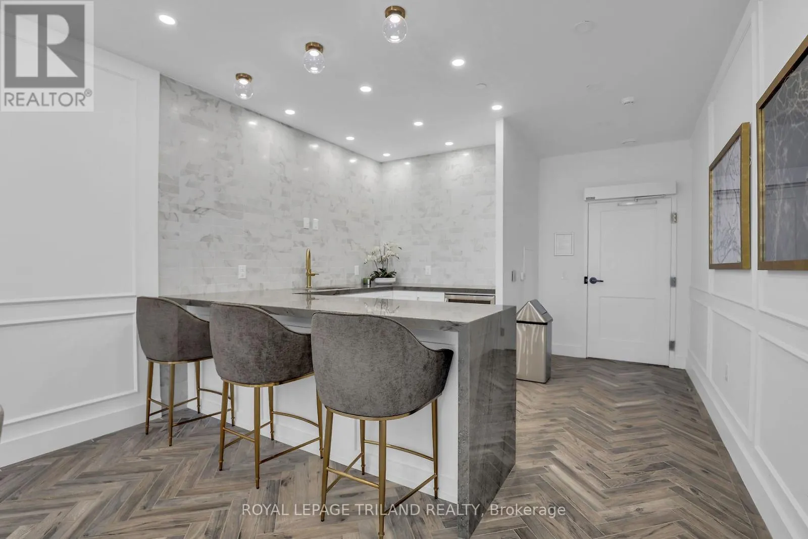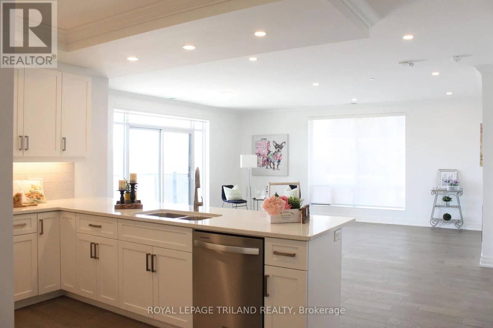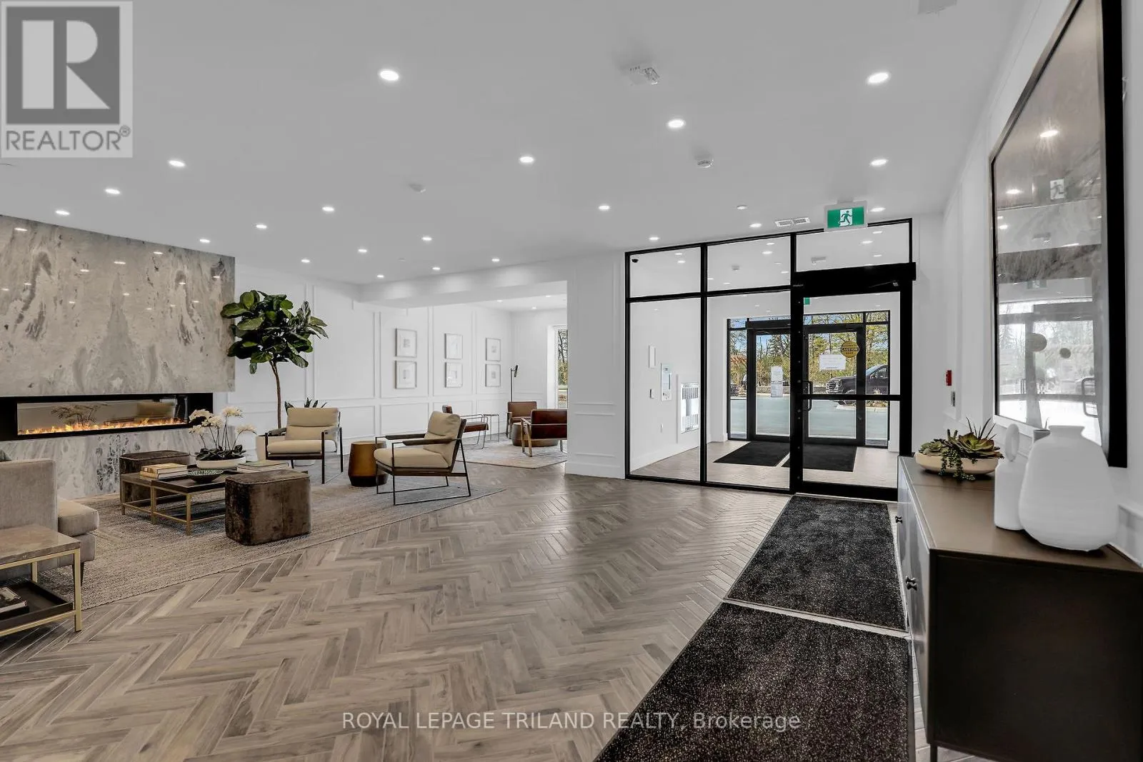 Cross Streets: Sunningdale Road. ** Directions: Sunningdale road west bound, turn right to Callaway Road. Welcome to NorthLink II, located in London's desirable North End. This unit is 1695 sqf with 185 sqf balcony (total 1880sqf). South West exposure. Very bright 2 bedroom with Den and 2 full bathroom. This unit features engineered hardwood flooring throughout the living area, bedrooms, and den and offers electric fireplace, soft Close Cabinetry, backsplash and Quartz counter top in the kitchen, windows from the floor to the ceiling. North Link II has all the amenities you can imagine with a resident Billiards Room, guest suite, virtual golf simulator, and outdoor tennis courts. A prime North London location close to all amenities; including Western University, Sunningdale Golf Course, community walking trails and many top ranked schools. This executive building is awaiting its next owner to enjoy Northlink Living. (id:27476)