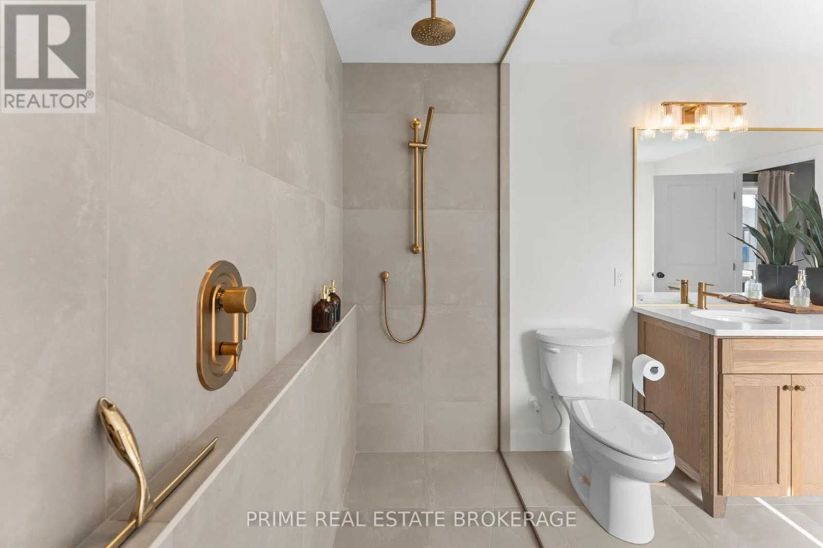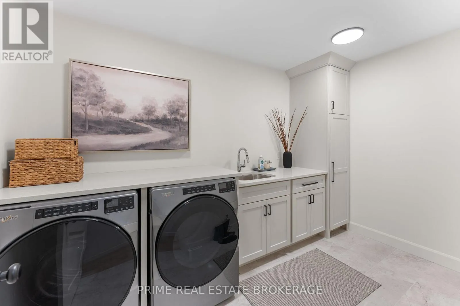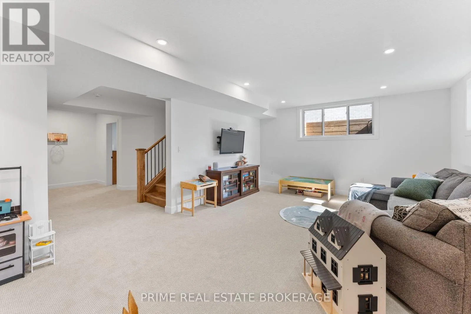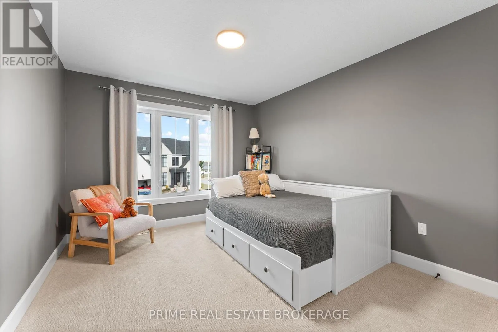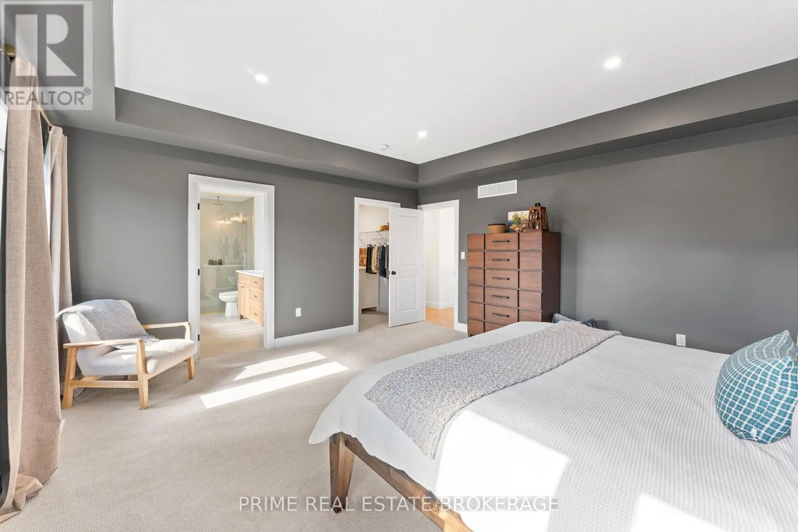 Wonderland and Eagletrace Dr Luxury, scale, and craftsmanship come together on one of Sunningdale Crossing's most desirable streets. Welcome to 1969 Buroak Crescent.Set on a premium oversized lot, this executive home offers over 4,700 sq. ft. of beautifully finished living space. It's the kind of home that feels impressive the moment you pull up, yet incredibly comfortable once you step inside.The exterior combines Arriscraft brick and Hardie board siding for timeless curb appeal.Inside, wide 714-inch engineered hardwood flows throughout the main level. Just off the foyer,French doors open to a private office ideal for working from home while the formal dining room features custom millwork and a built-in beverage fridge by Berry Woodcraft & Design.The main living area is bright and open, with 9-foot ceilings, custom built-ins, and a gas fireplace wrapped in 24x24 tile. A full wall of windows brings in natural light and overlooks the backyard. Eight-foot sliders lead to a covered concrete porch, creating an easy transition between indoor and outdoor living.The kitchen truly anchors the home. Handcrafted solid wood cabinetry by Berry Woodcraft & Design, premium GE Café appliances, and an oversized island make it as functional as it is beautiful. The adjoining dinette offers the perfect spot for everyday meals or morning coffee.Upstairs you'll find four spacious bedrooms and three full bathrooms. The primary suite feels like a retreat, complete with a spa inspired ensuite and a boutique style walk-in closet. One bedroom features its own private ensuite, while the remaining two share a well-designed bathroom with double sinks. A full laundry room with custom built-ins adds everyday practicality.The finished lower level offers even more flexibility with a bright rec room, fifth bedroom, full bath, and flex space that works equally well as a gym, studio, or playroom.1969 Buroak Crescent is a home that balances thoughtful design with real functionality. Built for modern family living. (id:27476)