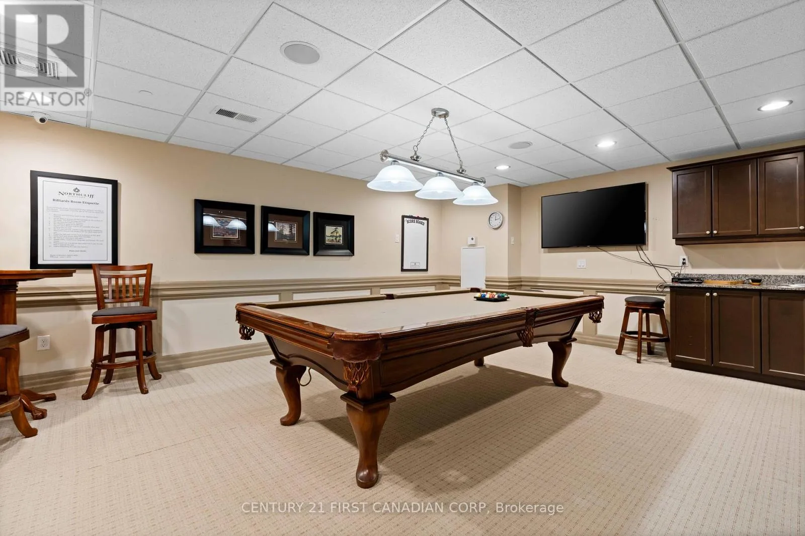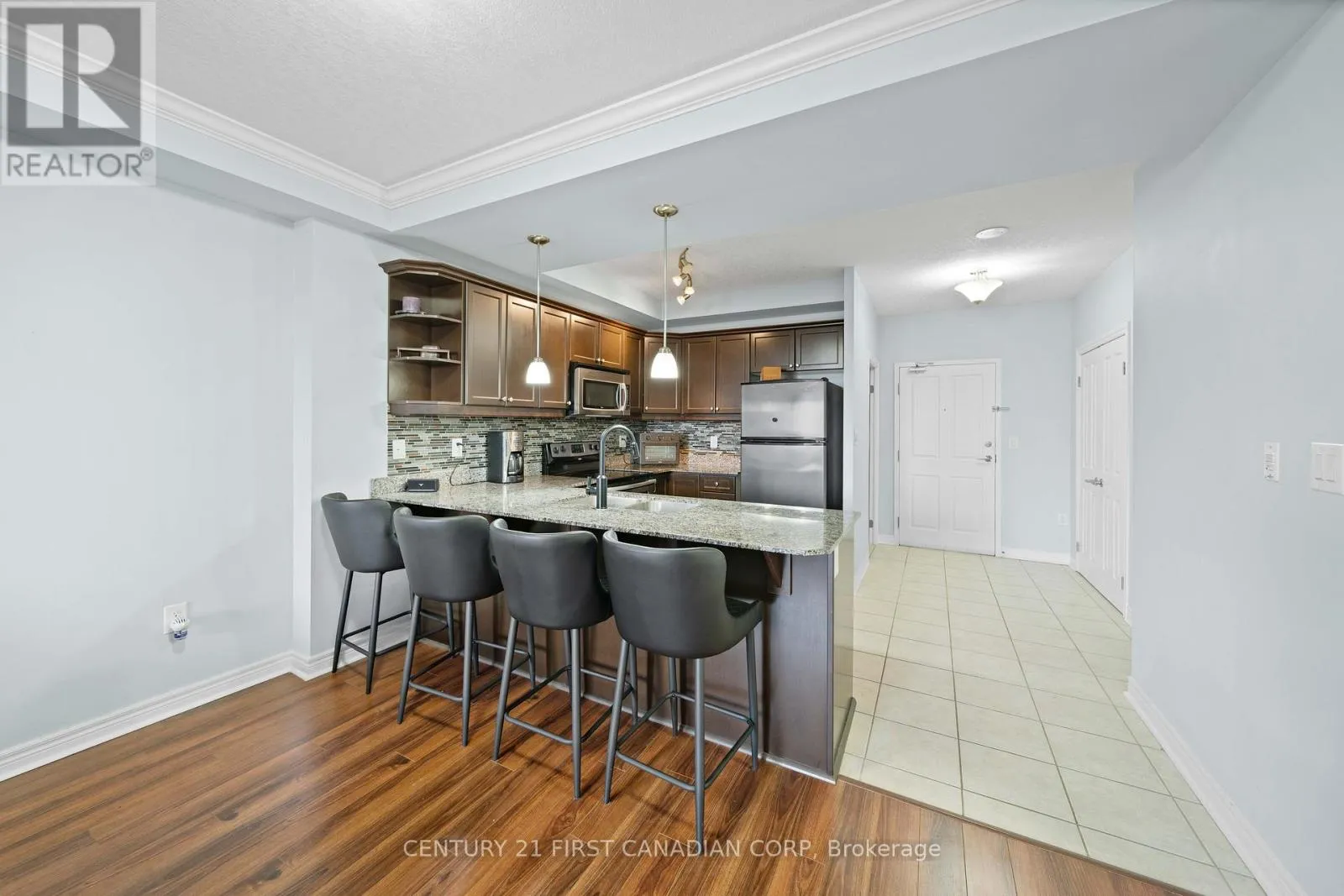 Cross Streets: CORONATION DR & SOUTH CARRIAGE WAY. ** Directions: WONDERLAND ROAD N; RIGHT ONTO GAINSBOROUGH RD; LEFT ON CORONATION DR. Exceptionally well-maintained, move-in-ready 1 bedroom + den condo with one of the largest balconies in the building, perfect for enjoying clear views and stunning sunsets. The bright, carpet-free interior is thoughtfully designed for comfort and functionality, featuring a modern kitchen with granite countertops, stainless steel appliances, and a breakfast bar. The open-concept living and dining area is ideal for both everyday living and entertaining, with direct access to the oversized balcony. A spacious primary bedroom includes a large closet and access to a well-appointed 4-piece bath. The versatile den is perfect for a home office or guest space. Recently upgraded with new washer and dryer, adding convenience and value, along with in-suite laundry and quality finishes throughout. Residents of The Northcliff enjoy premium amenities including controlled entry, underground parking, fitness center, games room, media room, library/lounge, and ample visitor parking. Pet-friendly (with restrictions) and BBQs allowed. Condo fees include heating, cooling, water, parking, and building insurance. Ideally located in North West London, close to parks, schools, shopping, dining, and minutes to Hyde Park amenities. An exceptional opportunity for professionals, downsizers, or investors seeking low-maintenance living in a well-managed building. (id:27476)