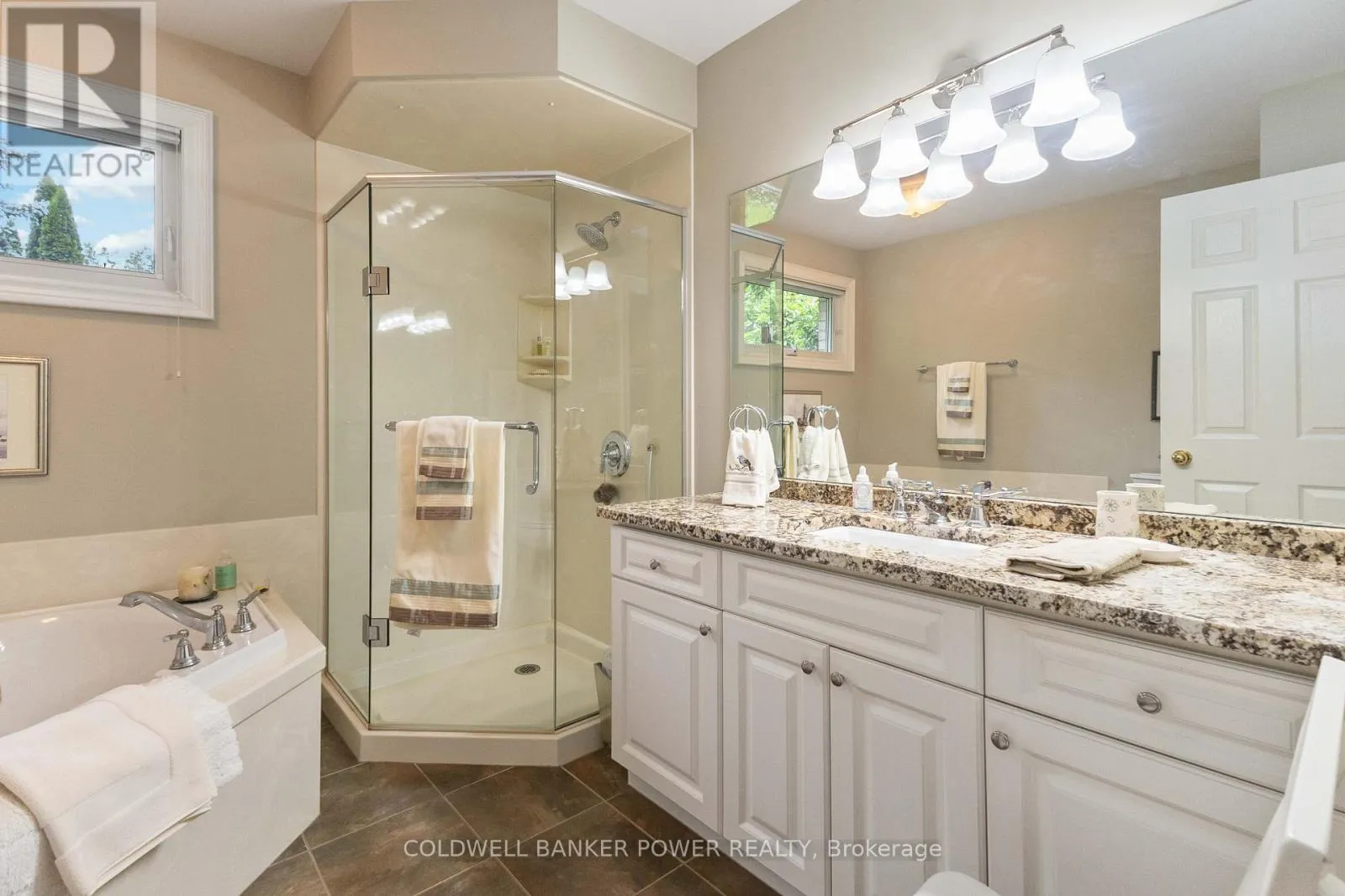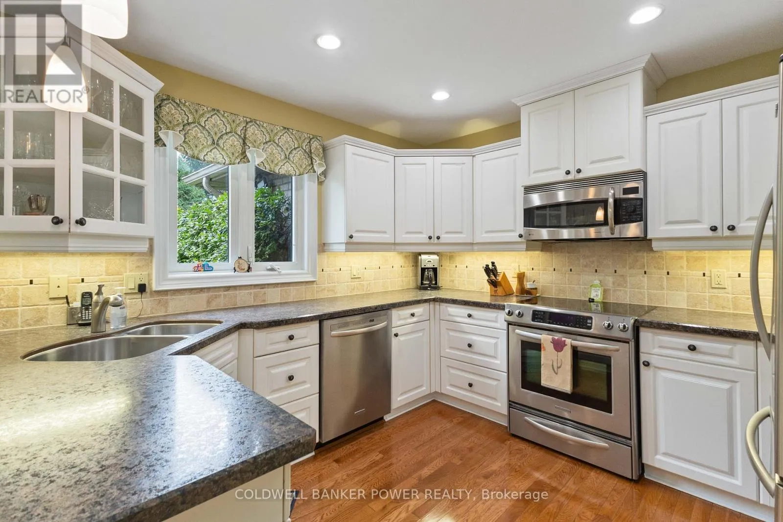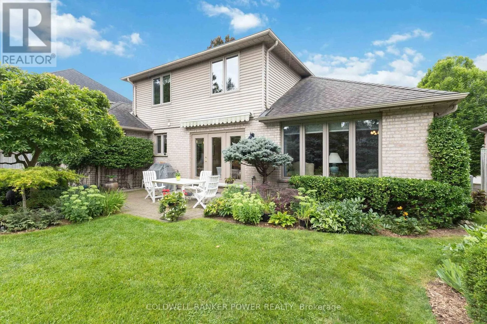 Cross Streets: Hazelden Lane. ** Directions: Riverside Drive to Hartson. Much sought after HAZELDEN NORTH neighbourhood. This 4 bedroom home featuring MAIN FLOOR PRIMARY BEDROOM with full ensuite and walk-in closet is ideal for multi-generational families, teenagers, and a young family with 3 additional bedrooms on second level. Spacious main floor plan with formal living and dining room, main floor laundry, spacious eat-in kitchen at rear overlooking cozy family room with gas fireplace. Beautiful oversized and fully fenced yard with gorgeous landscaping, large patio and sprinkler system front and back. Lower level features huge finished OPEN CONCEPT and modern lower level with full bathroom. Updates include: new central air in 2021, roofing shingles....40 year Timberline shingles in 2010, updated white kitchen in 2008. Hardwood floors, all vinyl windows. Meticulously maintained ORIGINAL OWNER HOME...you won't be disappointed! (id:27476)