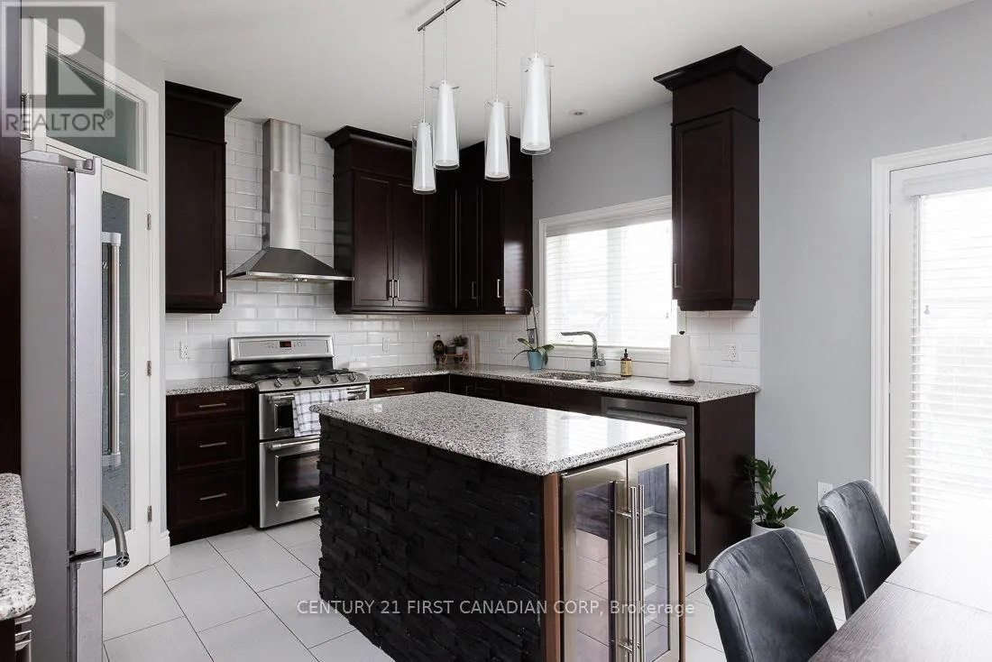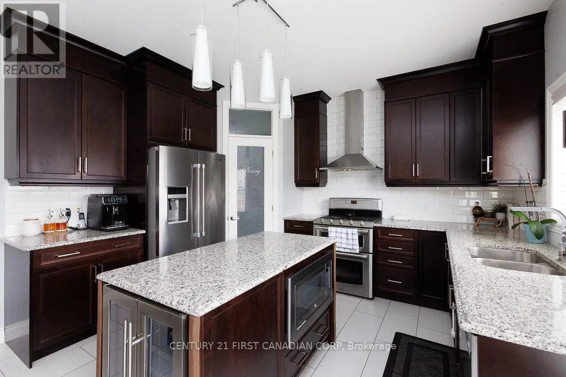 Cross Streets: north wenige and Ballymote ave. ** Directions: north of North Wenige dr. Experience refined living in this exceptional residence showcasing a striking stone and stucco elevation that delivers timeless elegance and outstanding curb appeal. Thoughtfully designed with sophistication and functionality in mind, this impressive home offers over three levels of beautifully finished living space ideal for modern family living and upscale entertaining Inside, the home welcomes you with bright, open-concept principal rooms enhanced by natural light and elegant finishes throughout. A private main floor den provides the perfect executive home office or quiet retreat. At the heart of the home, the gourmet island kitchen is designed to impress, featuring abundant cabinetry, premium workspace, and a convenient bar fridge, creating an ideal setting for entertaining and everyday luxury with 5 spacious bedrooms, the home offers exceptional flexibility for growing families, guests, or multi-generational living. The fully finished lower level expands the living space with a stylish recreation area perfectly suited for movie nights, a games room, fitness space, or private guest accommodations. Step outside to your own backyard oasis - a beautifully designed outdoor retreat featuring a concrete patio, relaxing hot tub, and a large fully fenced yard offering privacy, comfort, and effortless outdoor entertaining. Blending elegant design, generous living space, and resort-style outdoor amenities, this remarkable home presents a rare opportunity to enjoy luxury living in a highly desirable setting. An extraordinary home where comfort, style, and lifestyle come together. (id:27476)