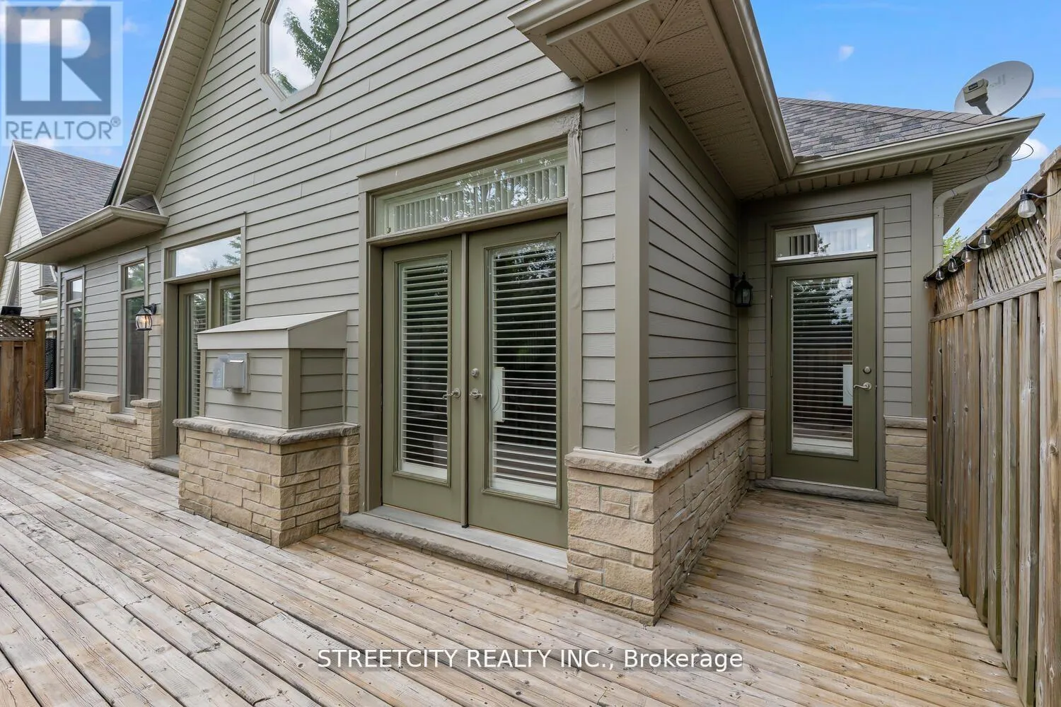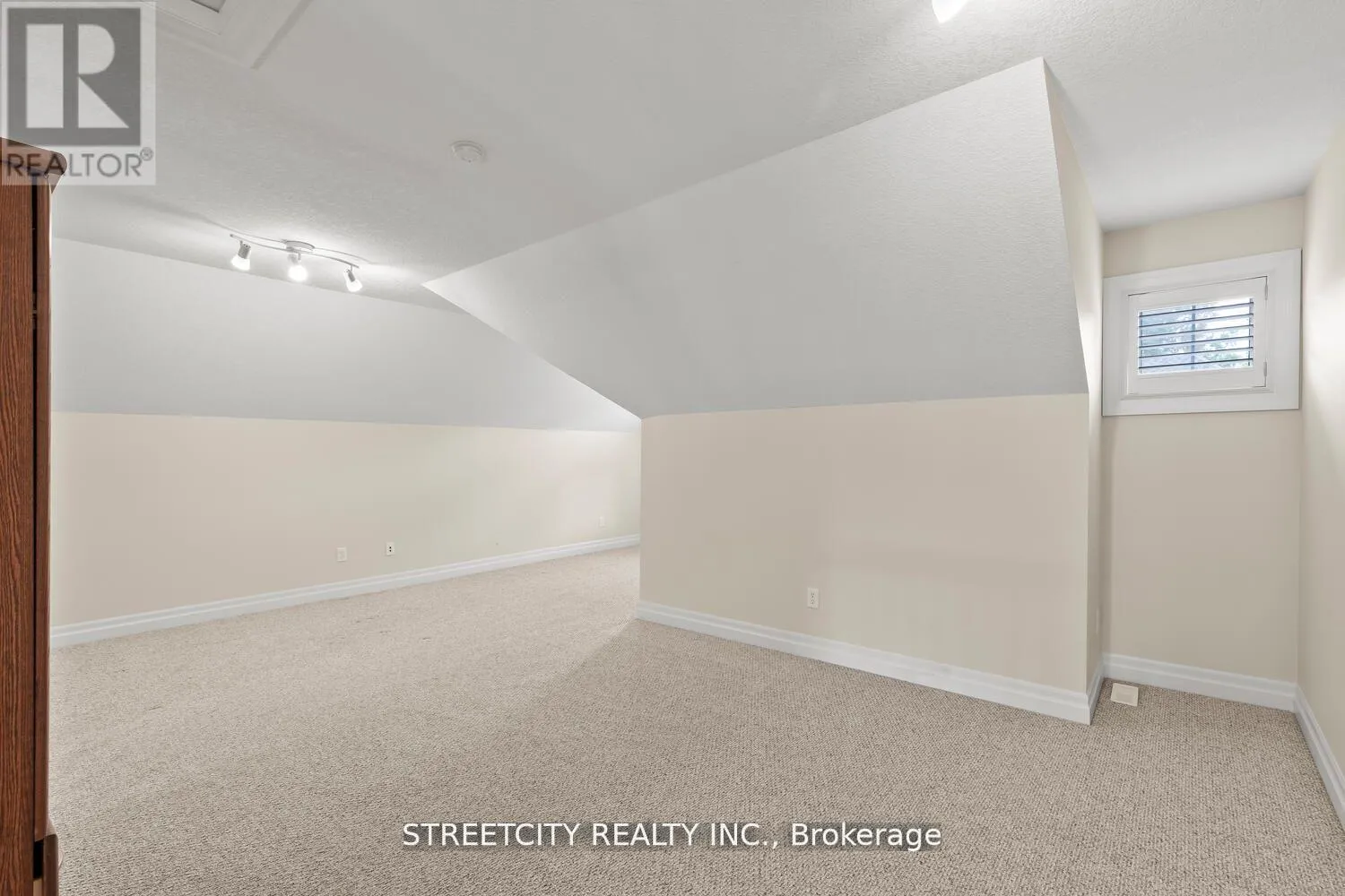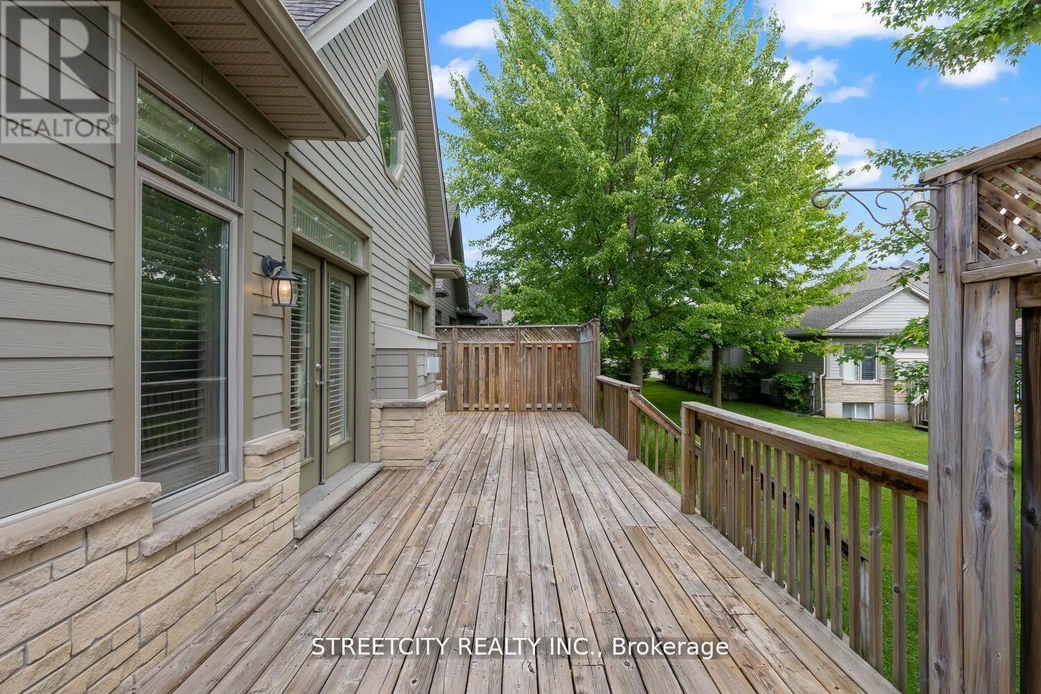 Cross Streets: Fanshawe Park Rd. W. ** Directions: Heading West on Fanshawe Park Rd, Turn Right onto North Centre and keep left & follow around to unit 25 on the right. Welcome to 25-124 North Centre in the private enclave of Woodland Trails in North London! This executive detached 3 bedroom bungaloft unit features a main floor bedroom just off the foyer which could also double as a den/office for people working from home. Stepping into the open concept great room you will be impressed with the large kitchen with maple cabinets, providing plenty of storage & counterspace, under counter valance lighting & pot lights throughout, with brand new kitchen counter top with overhang & new sink & faucet (2026). The Great room includes hardwood flooring, 18 foot vaulted ceilings with gas fireplace and mantle, and a beautiful 4 ft octagonal window over the fireplace, three doors with new large glass panels (2025) let all the sunshine through making this a great room to entertain with easy access to the large deck for having BBQ's with friends & family. The spacious primary room has newer carpet (2025), a large walk-in closet and 4 piece en-suite with brand new glass doors for the shower (2025) and brand new vanity counter top with brand new sink & faucet (2026). The large upper loft area could be used as a TV room, study or even an additional bedroom as it includes a 3 piece en-suite as well! The lower level includes a large 3rd bedroom, huge rec room, & 2 separate storage areas including a 3 piece bathroom. California Shutters throughout main & upper floors on all windows. Great North end location, walking distance to Goodlife Fitness, Masonville Mall, University Hospital, Western University, restaurants, shops and all major amenities nearby. Double car garage with 2 additional parking spaces on the driveway. Worry free maintenance throughout the year as the grass cutting & snow clearing are always taken care of! Hurry, this unit won't last long! (id:27476)