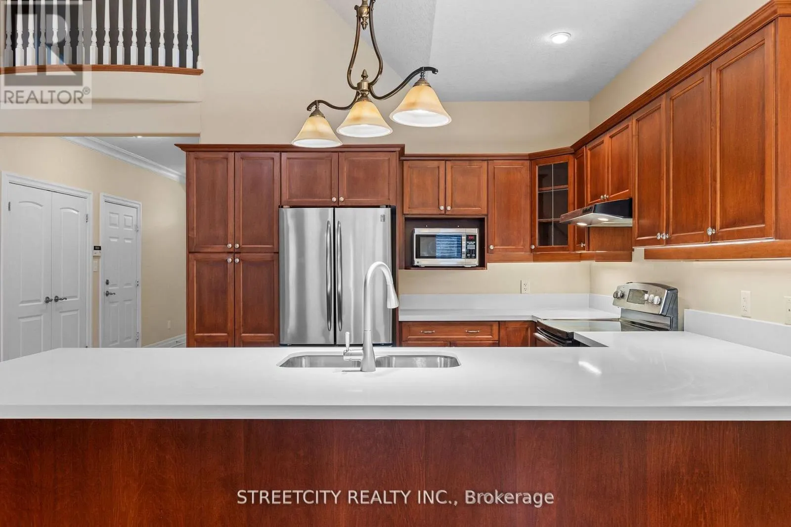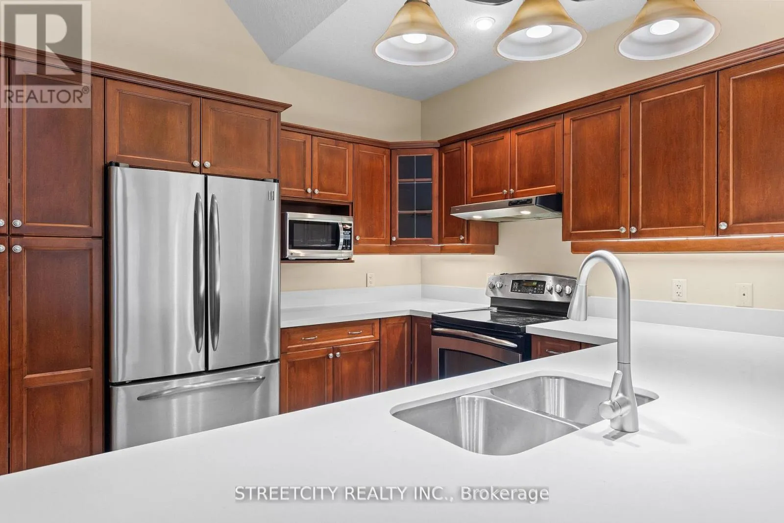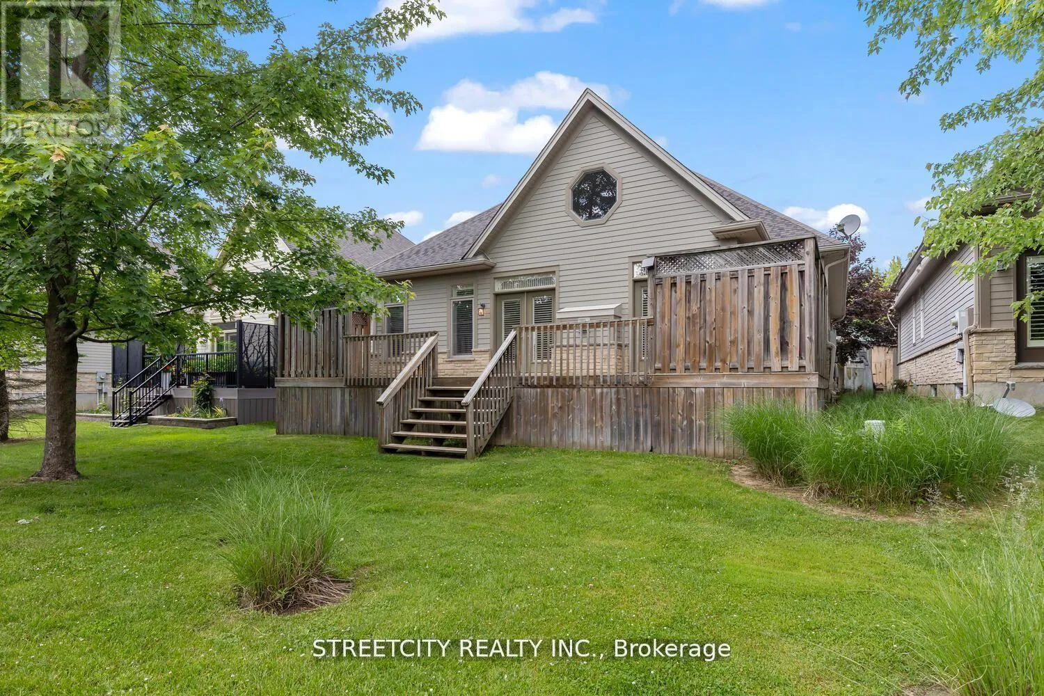 Cross Streets: Fanshawe Park Rd. W. ** Directions: Heading West on Fanshawe Park Rd, Turn Right onto North Centre and keep left & follow around to unit 25 on the right. Welcome to 25-124 North Centre in the private enclave of Woodland Trails in North London! This executive detached 3 bedroom bungaloft unit features a main floor bedroom just off the foyer which could also double as a den/office for people working from home. Stepping into the open concept great room you will be impressed with the large kitchen with maple cabinets, providing plenty of storage & counterspace, under counter valance lighting & pot lights throughout, with brand new kitchen counter top with overhang & new sink & faucet (2026). The Great room includes hardwood flooring, 18 foot vaulted ceilings with gas fireplace and mantle, and a beautiful 4 ft octagonal window over the fireplace, three doors with new large glass panels (2025) let all the sunshine through making this a great room to entertain with easy access to the large deck for having BBQ's with friends & family. The spacious primary room has newer carpet (2025), a large walk-in closet and 4 piece en-suite with brand new glass doors for the shower (2025) and brand new vanity counter top with brand new sink & faucet (2026). The large upper loft area could be used as a TV room, study or even an additional bedroom as it includes a 3 piece en-suite as well! The lower level includes a large 3rd bedroom, huge rec room, & 2 separate storage areas including a 3 piece bathroom. California Shutters throughout main & upper floors on all windows. Great North end location, walking distance to Goodlife Fitness, Masonville Mall, University Hospital, Western University, restaurants, shops and all major amenities nearby. Double car garage with 2 additional parking spaces on the driveway. Worry free maintenance throughout the year as the grass cutting & snow clearing are always taken care of! Hurry, this unit won't last long! (id:27476)