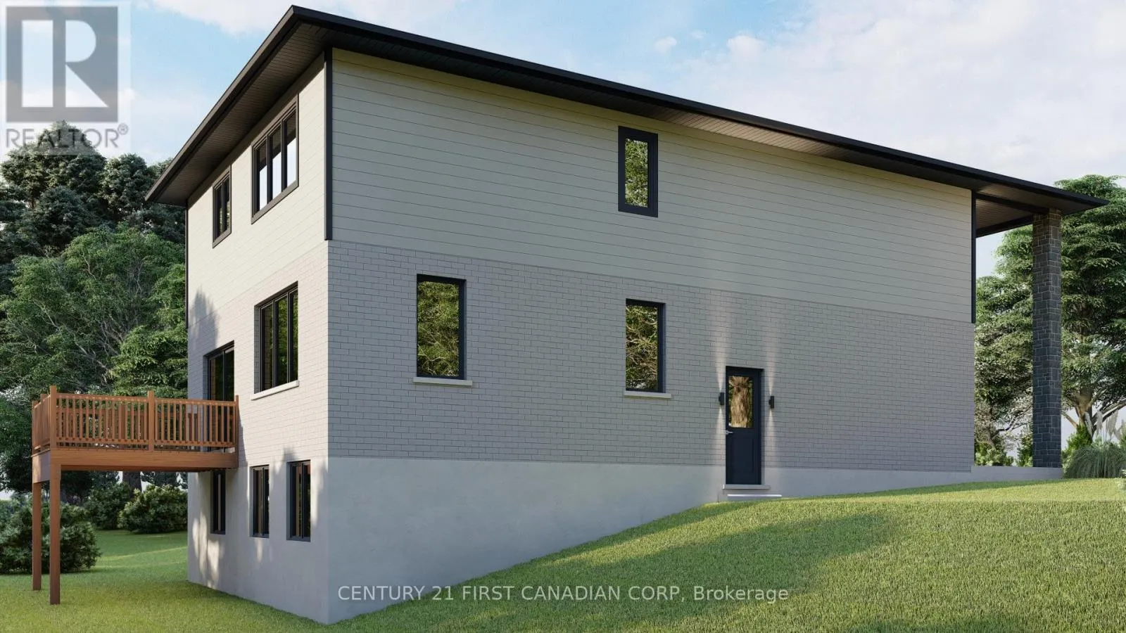 Cross Streets: Bush Hill Link/ Medway Park Drive. ** Directions: Driving west on Fanshawe Park, turn right onto Foxwood Ave, Turn Left onto Medway Park drive, then left on Heardcreek Trail. Property on left side - Corner of Bush Hill Link and Heardcreek. To Be Built, Price includes proposed 2026 HST rebates. Final rebate amount is subject to the passing of Provincial and Federal legislation and purchaser eligibility as per government guidelines, including primary residence or qualifying rental. Creekside Luxury Living - SHBUILDERS Inc is proud to present this stunning two-storey home - fully customizable to your own taste and will be built on a premium lookout lot backing onto the creek, offering the perfect balance of modern design and natural beauty. The exterior showcases timeless curb appeal with a stone and stucco front, complemented by brick and vinyl siding on the sides and back, along with a 10x10 pressure-treated deck to enjoy the peaceful views. Inside, the main floor features 9 ft ceilings with 8 ft doors, hardwood flooring throughout the living areas, and tile in all wet zones and showers. Premium finishes throughout the home further elevate the style and comfort. A welcoming foyer with double doors and open-to-above ceiling leads into the spacious great room, bright dining room with deck access, and a modern kitchen complete with island and walk-in pantry. A mudroom with closet, 2-piece bath, and garage access complete this level. Upstairs, the primary suite impresses with a spa-inspired ensuite offering a tile shower, soaker tub, double vanity, and dual walk-in closets. A second bedroom enjoys its own ensuite, while two additional bedrooms share a Jack & Jill bath. Convenient upstairs laundry adds to the thoughtful layout. The lower level has a separate entrance and provides potential with a large unfinished rec room, rough-ins for a kitchenette and 3-piece bath, a future bedroom, and an additional laundry hook-up Making it perfect for an in-law suite or the potential for renting out for supplemental income. Basement can be finished through the builder for an additional cost. Designed for todays lifestyle, this home offers the perfect combination of comfort, elegance, and creekside living. (id:27476)