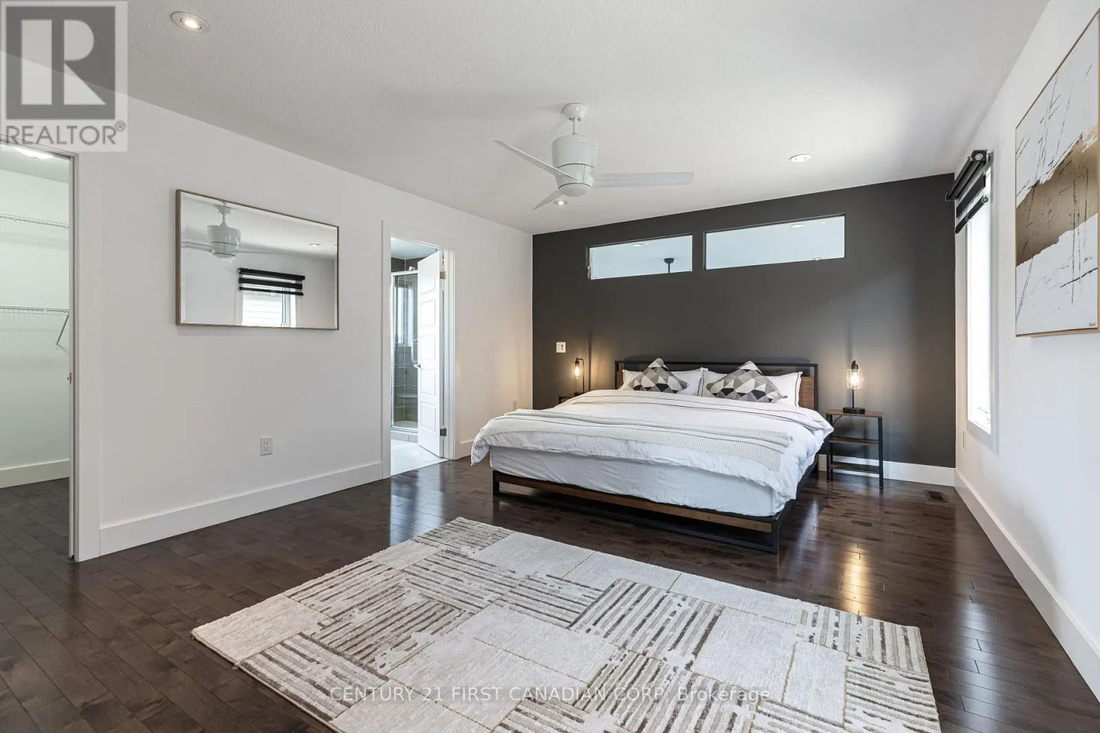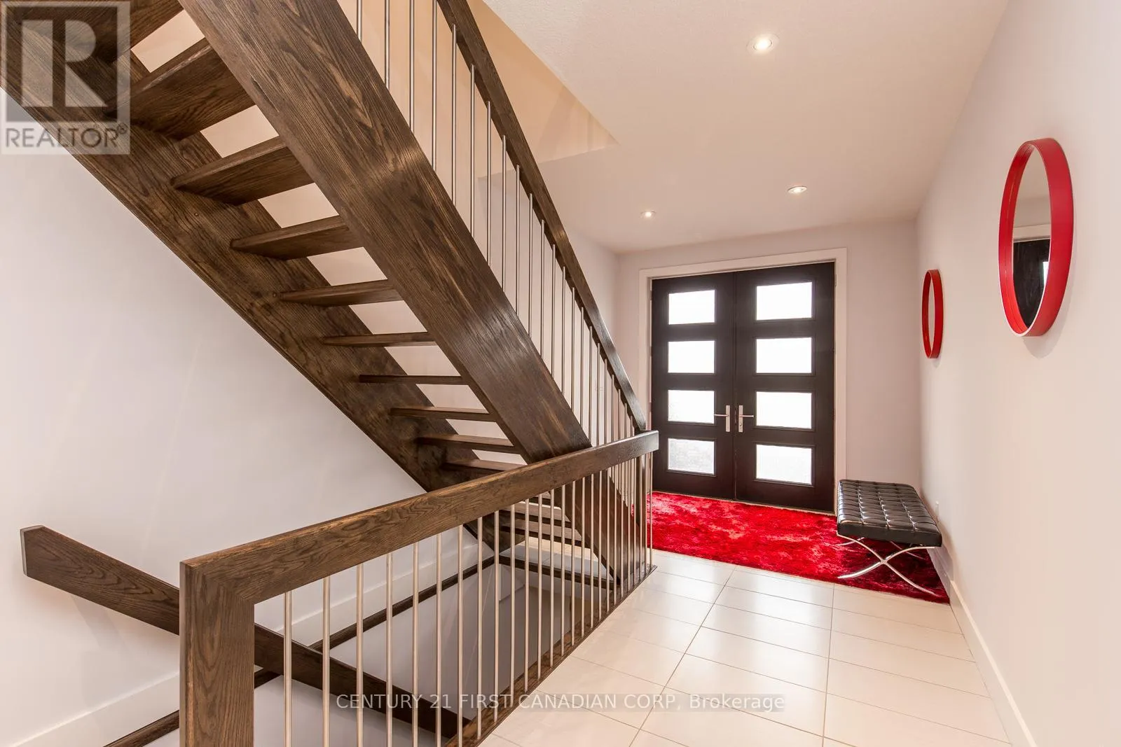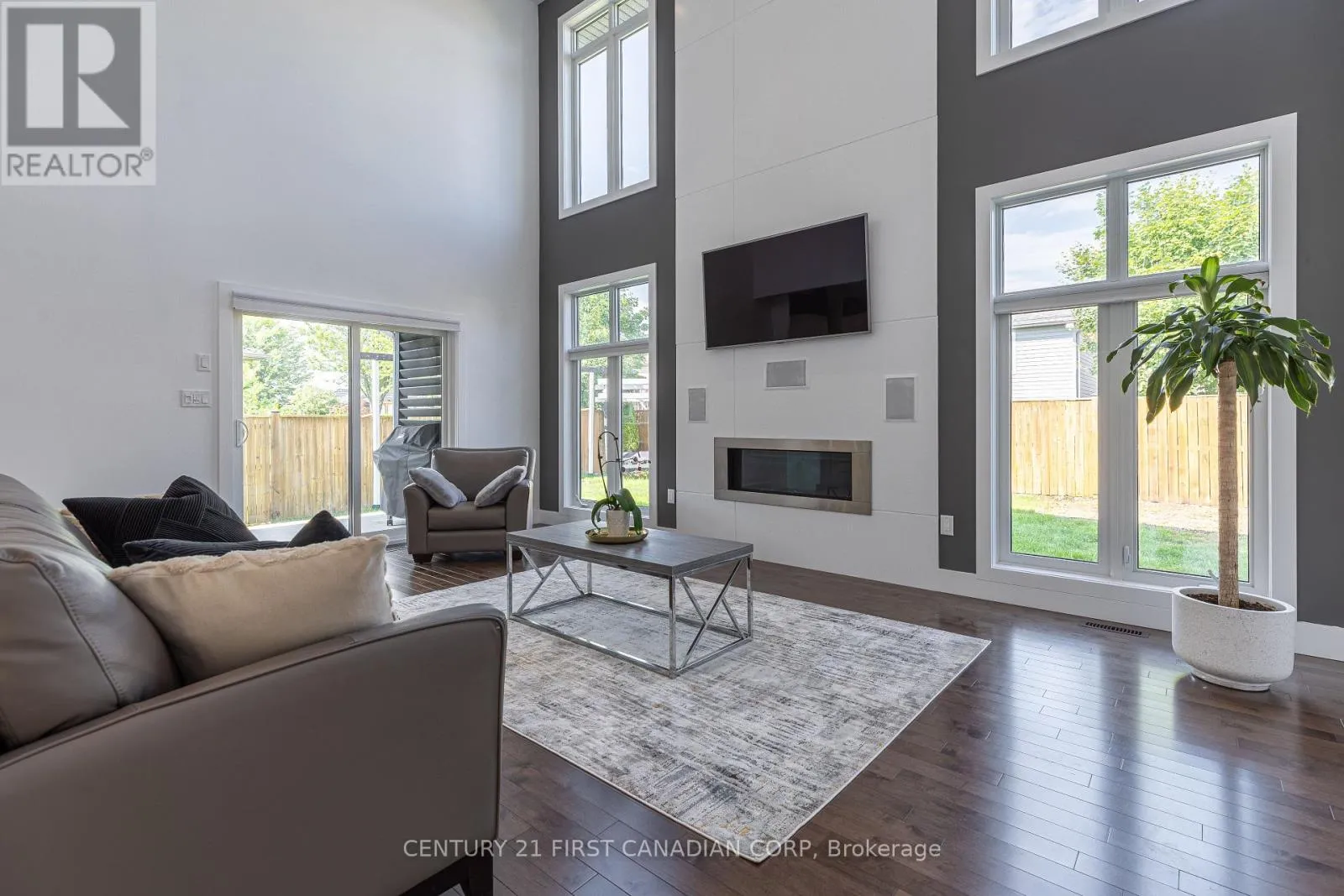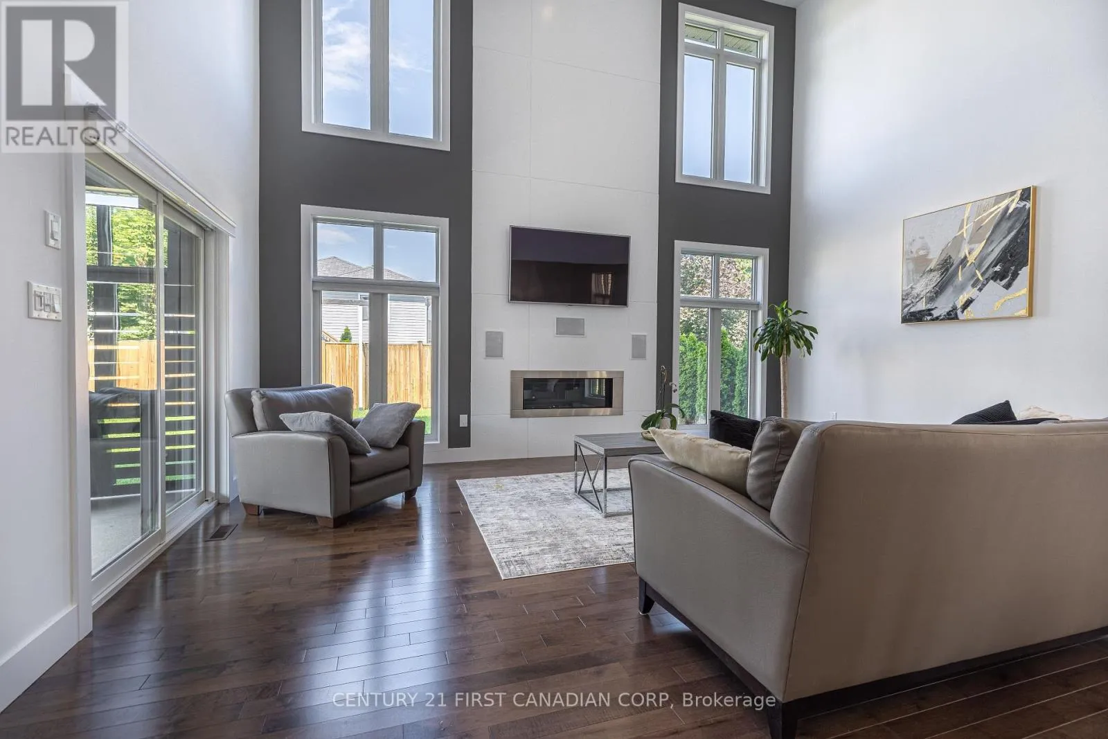 Traveling North on Hyde Park Rd make a right on North Routledge Park take 3rd exit at the round about to get to Moy Crescent. Welcome to the 962 Moy Crescent, a masterpiece of custom craftsmanship and refined design. This impeccable 4-bedroom, 3.5-bathroom home is nestled on a premium pie lot in the highly sought-after Northwest neighborhood of Hyde Park, offering a lifestyle of unparalleled luxury and elegance. Step inside and be greeted by an open-concept living space that effortlessly combines style and functionality. The contemporary kitchen and dining room are a culinary enthusiast's dream, boasting granite countertops, stainless steel appliances, and a central island with a convenient breakfast bar. This culinary haven seamlessly flows into the impressive two-story living room, adorned with large windows that bathe the space in natural light, while a striking floor-to-ceiling fireplace serves as a captivating centerpiece, enhanced by built-in speakers that create a captivating audio experience. The main floor also presents a rear office, with separate access to the backyard, allowing for a tranquil workspace. Additionally, a tastefully appointed 2-piece powder room adds convenience and sophistication. As you ascend the stairs, you'll discover the primary bedroom retreat, an oasis of tranquility and comfort. It features a generously sized walk-in closet, providing ample storage for your wardrobe, while the luxurious 4-piece ensuite bathroom indulges you with double sinks and an atmosphere of relaxation. Two more spacious bedrooms await, offering ample room for personalization and rest. An additional 5-piece main bathroom, boasting double sinks, ensures convenience and comfort for all occupants. As you step into basement, you'll be greeted by a sense of spaciousness and airiness, courtesy of the copious amounts of natural light streaming through the large windows. A beautiful 3 piece bathroom with a gorgeous stand up shower for extra convenience. This extraordinary basement beckons you to create the ultimate entertainment space. Don't miss your opportunity to call this place home! (id:27476)