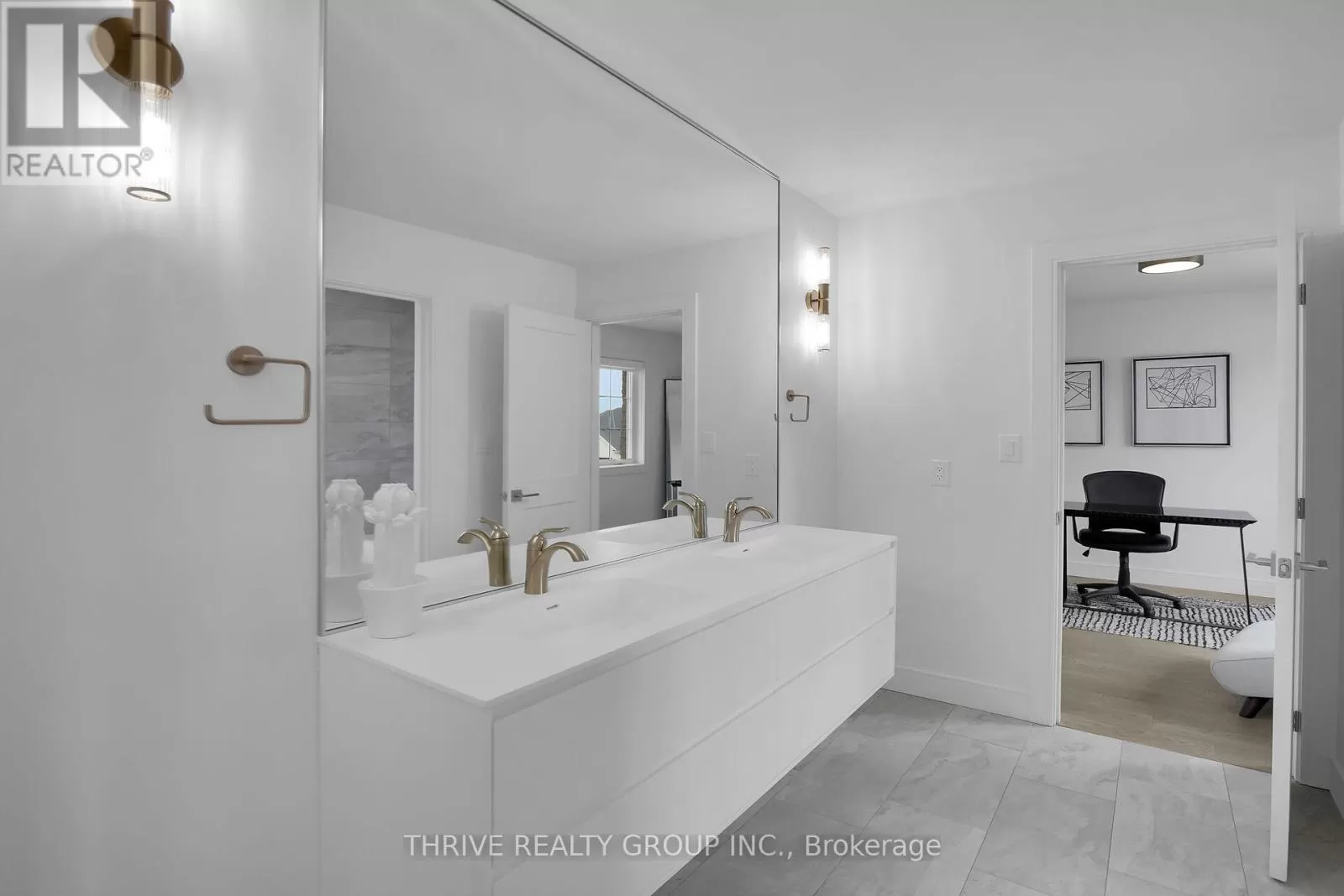 Cross Streets: Ayrshire Ave. ** Directions: Colonial Talbot to Royal Magnolia to Campbell St. N. Welcome to Forest Homes 2,528 sq ft Model Home of premium living space in the sought-after Heathwoods community. Come in and be greeted by a spacious and light-filled foyer that seamlessly flows into the open-concept living area. At the heart of the home is the luxurious kitchen, where custom cabinetry meets premium quartz countertops. The large central island, complete with a breakfast bar, is perfect for both entertaining and casual meals. Adjacent to the kitchen is the expansive family room, bathed in natural light as well as the dining room with a convenient patio slider, leading out to the covered back deck. Upstairs, you'll find four generously sized bedrooms, accompanied by two well-appointed bathrooms. A Jack & Jill style bathroom connects two of the bedrooms, adding a functional and stylish touch. The primary suite is a true sanctuary, featuring a spacious walk-in closet and a luxurious 6-piece ensuite. Here, indulge in a beautifully tiled shower with a glass enclosure, a large bath, double sinks, and elegant quartz countertops.The upper level also includes the added convenience of an in-house laundry room. Outside, the stamped paver stone driveway leads to a double car garage with direct access to the home.This property blends modern design with thoughtful details, creating the perfect space to call home. Make it yours today! (id:27476)
