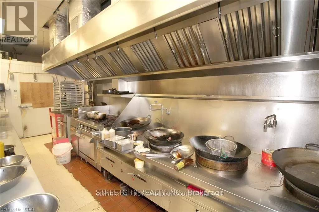 Cross Streets: Highbury Ave S/Commissioners R. ** Directions: Commissions & Meadowgate Blvd. Well-Established Asian Take out Restaurant. Prime Location: Highbury Ave S & Commissioners Rd E, Provide service of take-away, delivery and catering. Including all the kitchen equipment. Key Details: Size: 1,227 sq.ft. Smartly designed for smooth kitchen flow & customer service. Rent: Approx. $4,249/month (TMI Included) Lease Terms: 5-Year Initial Term + 5-YearRenewal Option, Business Highlights: Turnkey Ready Step in and start operating from day one Diverse Revenue Streams Take-out, delivery, and catering capabilities. Established Reputation Long-standing clientele and repeat business. Fully Equipped Includes a high-capacity walk-in cooler, professional prep stations, and premium-grade kitchen appliances. Chefs Dream Kitchen Includes:18-Foot Commercial Hood System Supports high-volume cooking Two Commercial Burners Built for large-scale meal prep and catering10-Foot, 4-Burner Chinese Wok Station Perfect for fast-paced Asian cuisine production Tava Plate & Oven Ideal for grilling and traditional Indian food preparation Spacious Layout Efficiently supports multiple chefs without crowding. Why This Location Works: Excellent Visibility Situated in a bustling commercial zone with high daily traffic. Ample On-Site Parking Hassle-free access for patrons and delivery services Ideal for Cloud Kitchen or Catering Hub fully set up for scale and efficiency whether you're expanding your brand, launching a cloud kitchen, or searching for a catering base, this rare opportunity delivers flexibility, value, and a strategic location that works. Serious inquiries only. Contact us today to schedule a private tour and make this culinary gem yours! (id:27476)