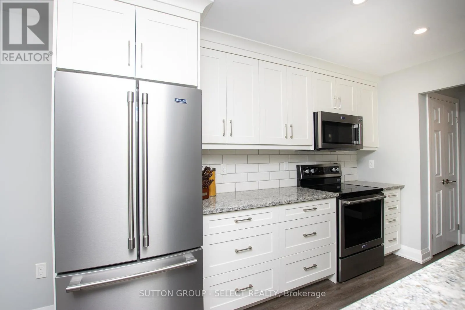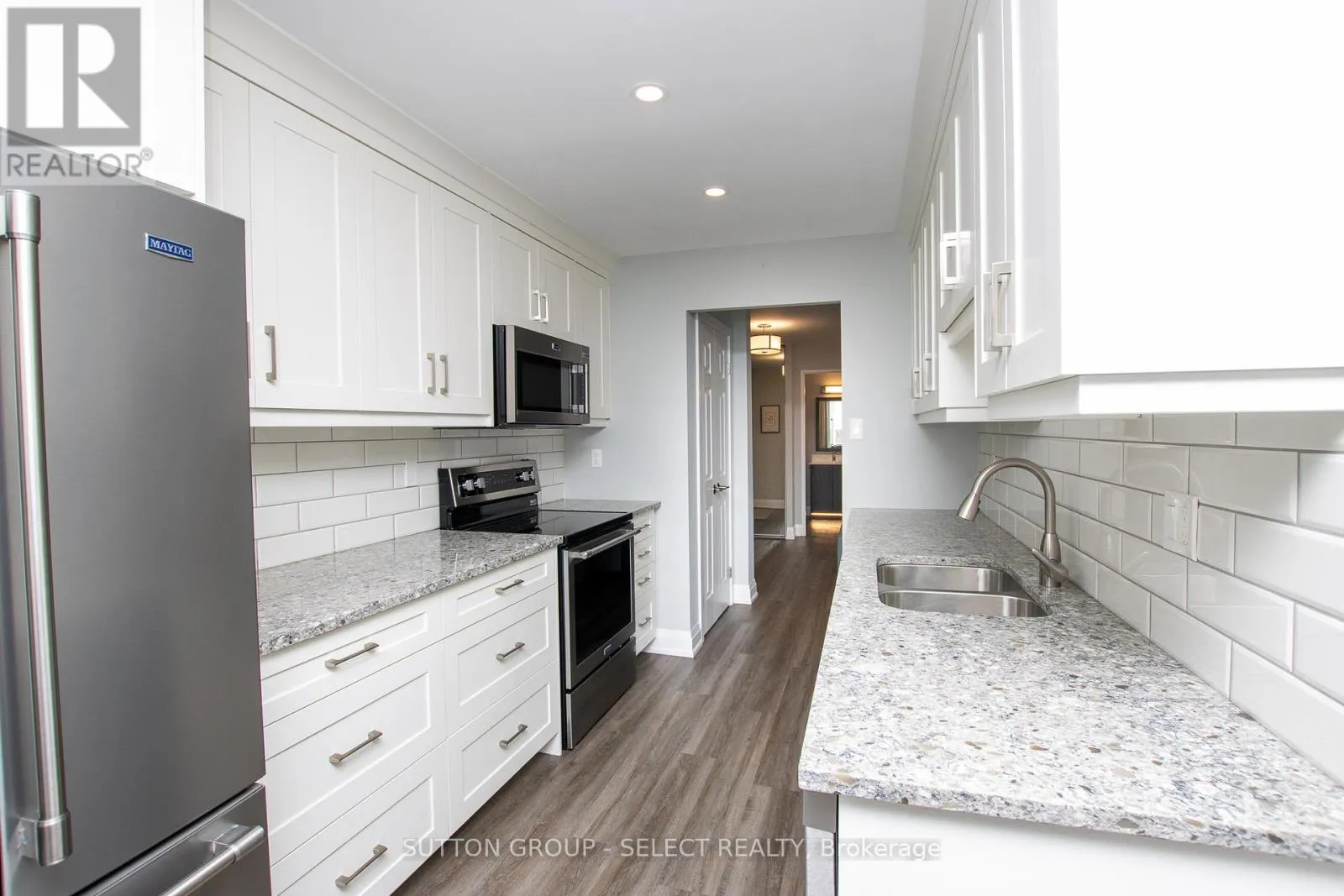 Cross Streets: boler. ** Directions: go east from boler rd right beside st georges church. Welcome to this beautiful fully renovated luxury condo in beautiful Byron overlooking springbank park and in walking distance to all amenities. In-unit Energy efficient Heat pump heating/cooling system. Ac units are the responsibility of the condo corp to repair, maintenance included in condo fees.Corner unit with huge balcony and view of the park.Complete new renovation throughout.Two new bathrooms with kick plate lighting and glass showers New kitchen and all new appliances.Breakfast bar overlooking the park flanked by display cabinets and wine rack. Primary bedroom with en-suite bathroom and shower and balcony entrance.Large Spare bedroom with closet.Utility room with hot water tank and storage.Built in office desk with wall units in spare bedroom.New vinyl plank flooring throughout.New in-unit stacked washer and dryer.Pot lights installed in bedrooms and living room, new light fixtures in dining room and hallways.Popcorn ceiling removed and smooth skim coated ceiling refinished.New hunter Douglas blinds on all windows.Secure underground parking with one parking space and garage remote.Indoor bicycle racks and storage.Secure entrance way with FOB entry and handicapped remote entry.Heated indoor pool and sauna.Outdoor putting green.Newly landscaped grounds and drive pad. (id:27476)