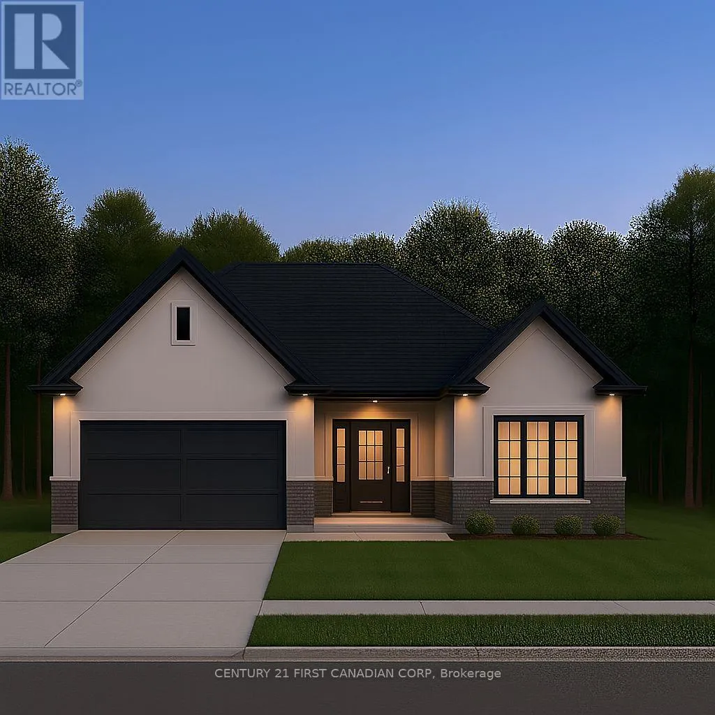 Cross Streets: Hamlyn Street. ** Directions: From Wonderland Road South, turn West on Hamlyn St then South on Green Bend Road. Welcome to effortless living in Liberty Crossing a desirable community nestled just minutes from the charm and convenience of Lambeth. Built by the trusted Castell Homes, this beautifully designed bungalow offers the perfect blend of style, comfort, and functionality, with quick access to the 402 and all nearby amenities.Thoughtfully situated on a premium lot, this home features an elegant open-concept layout, an attached 2 car garage and a finished lower level. The kitchen includes a large central island and seamless flow into the dining area, which opens onto a covered deck, overlooking the yard and adjacent green space, ideal for outdoor entertaining. The great room, anchored by a cozy fireplace and tray ceiling, invites you to relax in style.The main level is anchored by a spacious primary retreat featuring a five-piece ensuite with a luxurious soaker tub, walk-in shower, and generous walk-in closet. A second bedroom, a four-piece main bath, and a convenient mudroom with laundry and garage access complete the main floor. Downstairs, the fully finished lower level is perfect for entertaining and extended family living, boasting a massive rec room with a wet bar, and two additional bedrooms each with ensuite access to a shared three-piece bath. This is your opportunity to enjoy premium bungalow living in one of London's most exciting new neighborhoods where quality craftsmanship meets everyday convenience. (id:27476)